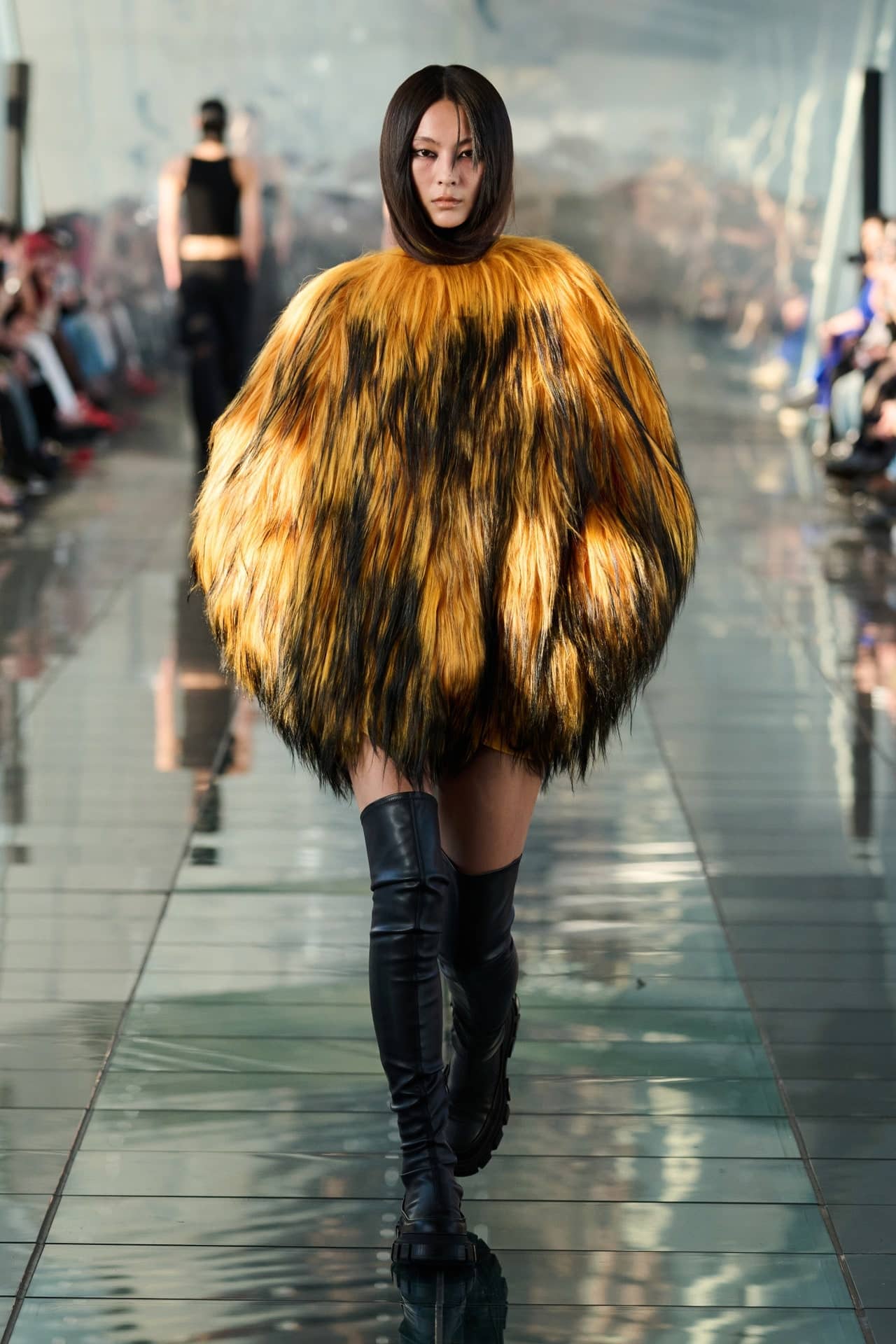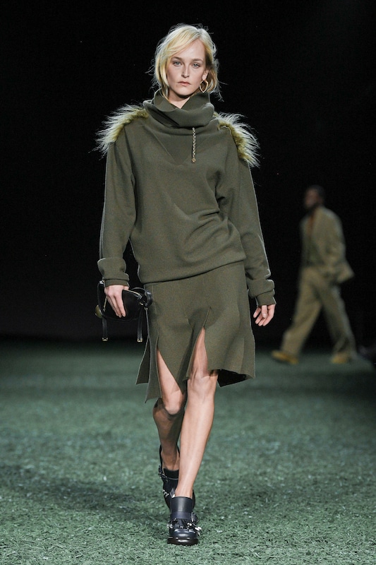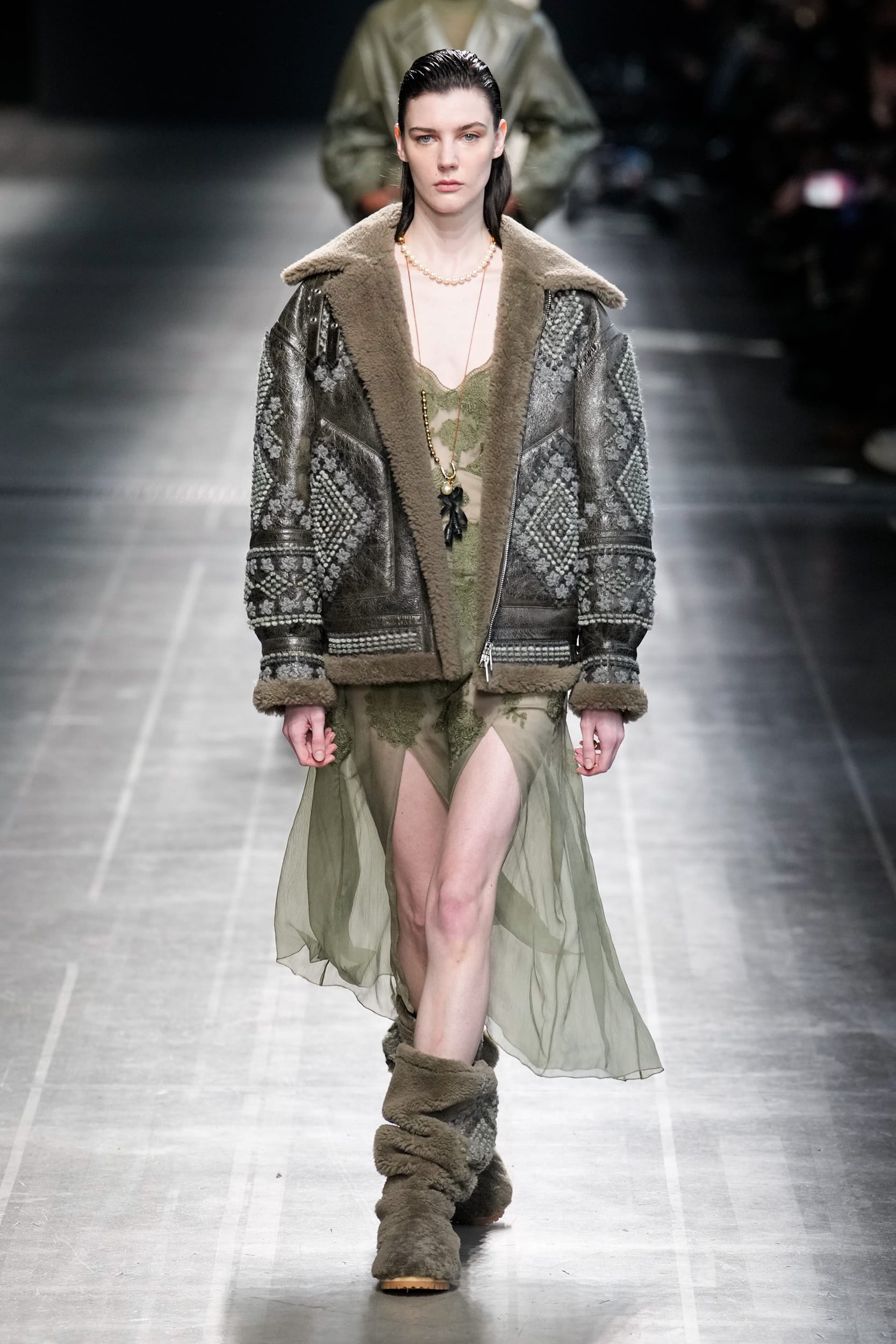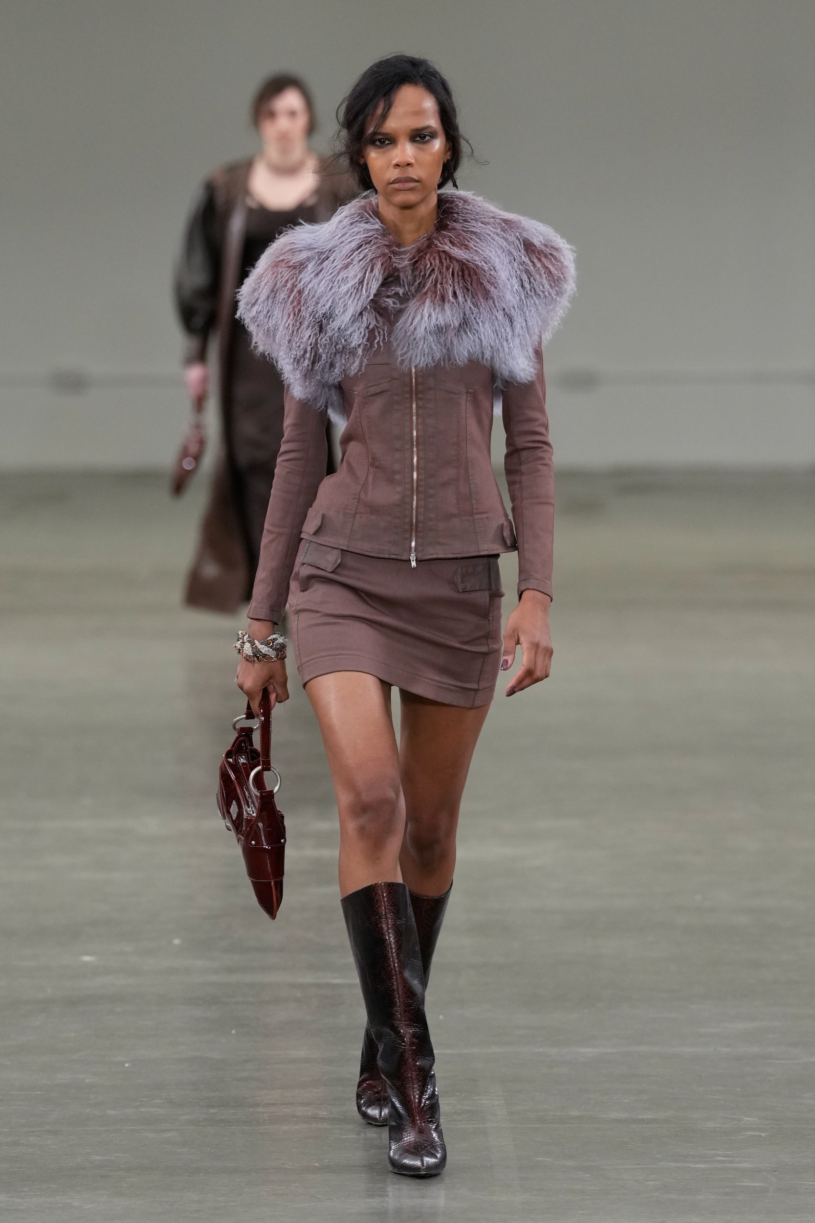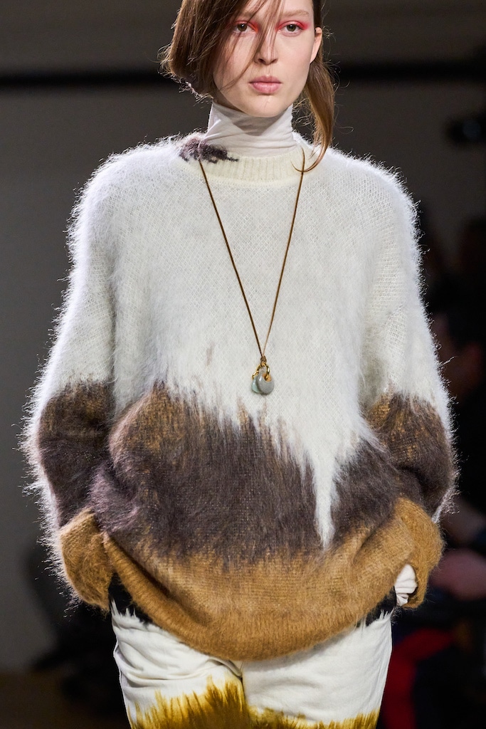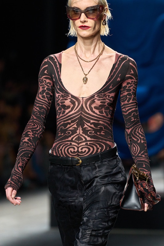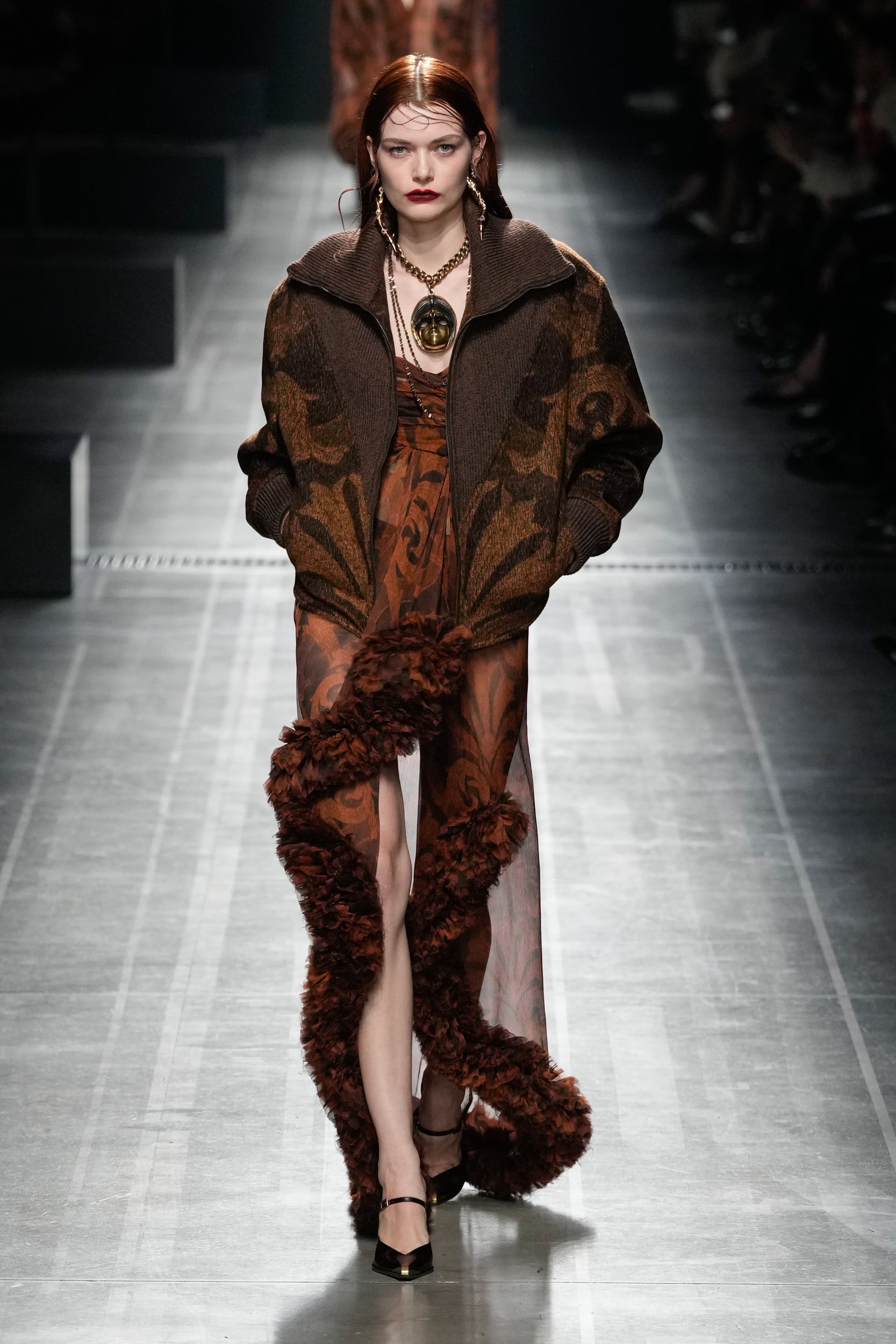 The aesthetic narrative fuses earthy stories and celestial notions, crafting new nomadic silhouettes in maxi length that billow with the whispers of ancient wisdom. Primal bohemian patterns embellish textiles, while layering and drapes create a sense of mystery. Chic silhouettes are juxtaposed with wilderness textiles and color palettes, marrying urban sophistication with the raw beauty of the untamed wilderness.