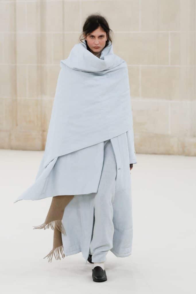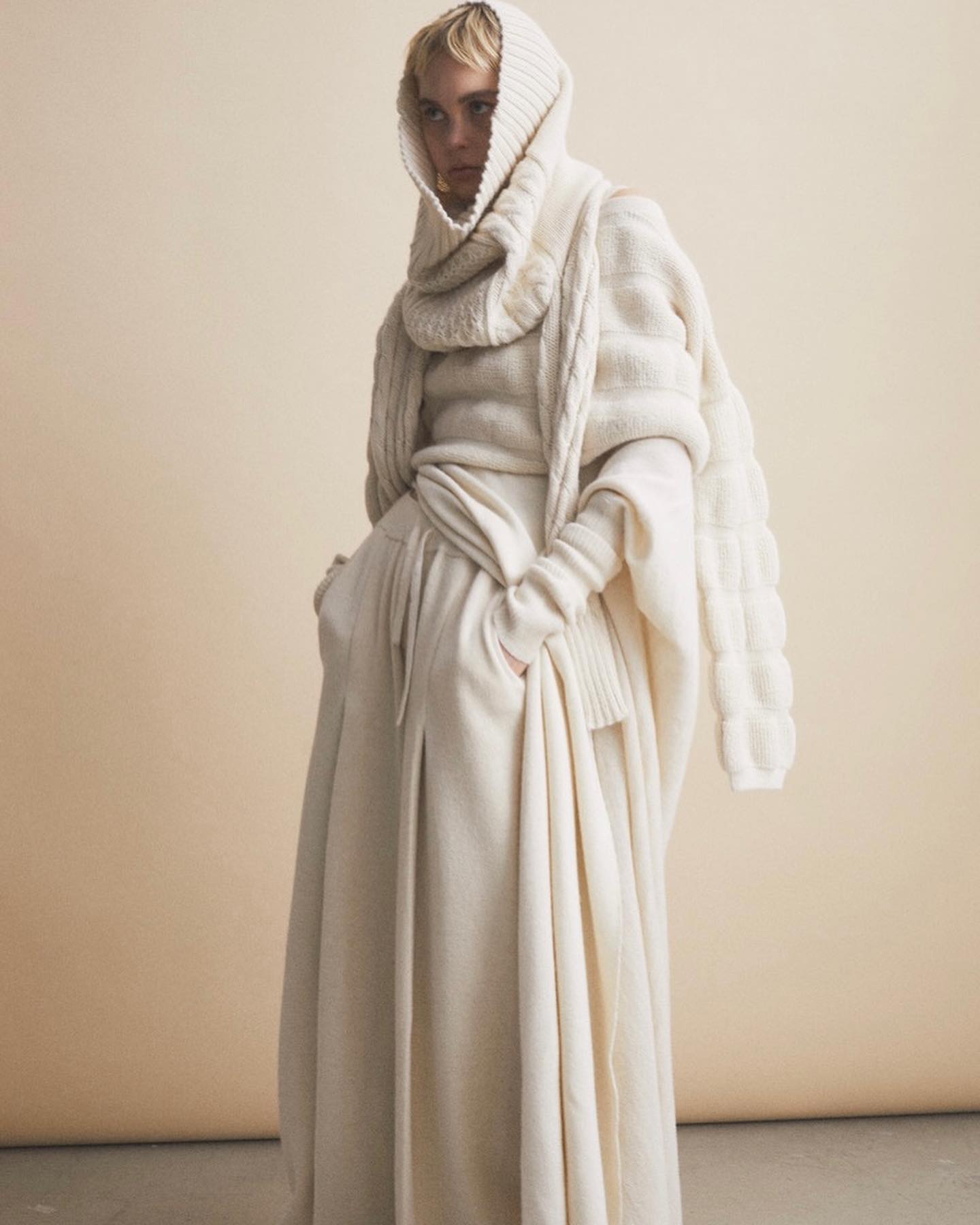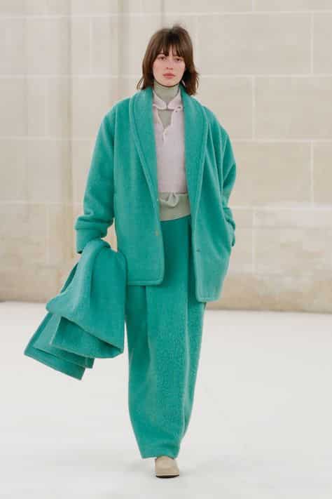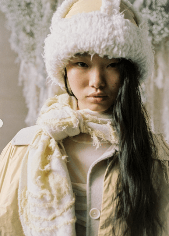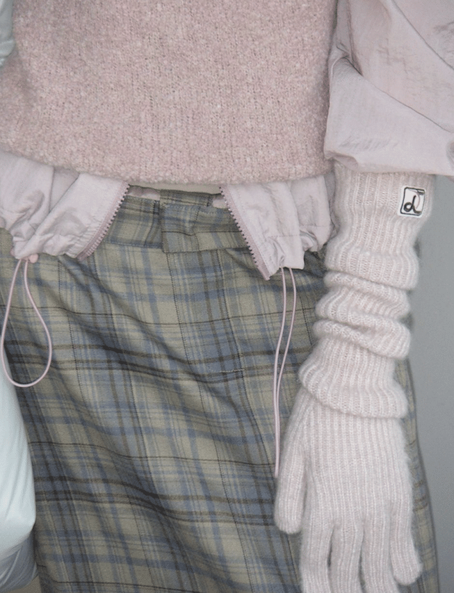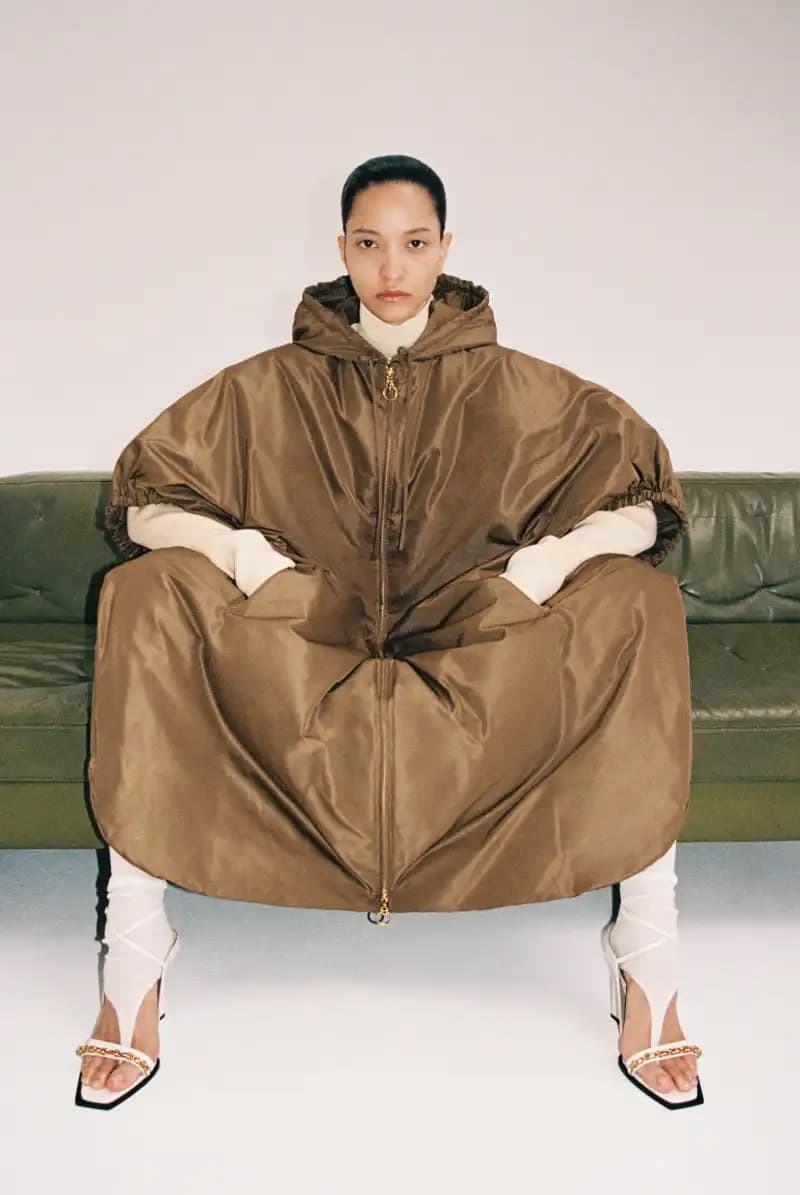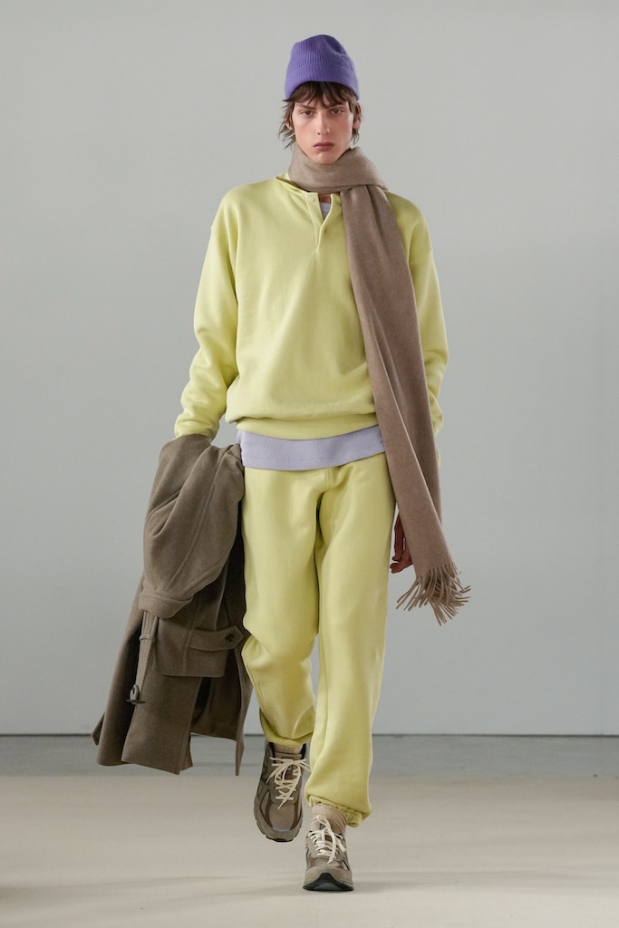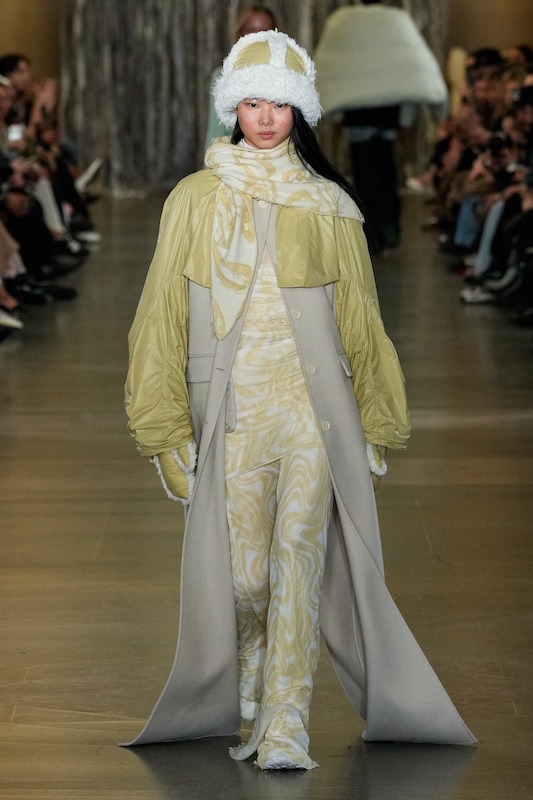 This trend encapsulates a mindset of pragmatism, intellect, and smart solutions. Rooted in a deep appreciation for functionality and efficiency, this trend embraces a poetic interpretation of the outdoors, infusing it with a serene and contemplative essence. The aesthetic reflects quiet utility and soft gorpcore. Subtly tinted pastel hues infuse this trend‘s palette, imbuing it with a tranquil and tender ambiance. Gentle basics with a ratehr genderless appeal form the foundation of this trend, allowing for effortless mix-and-match versatility. Soft knit essentials crafted from gauze and mohair evoke comfort and warmth, while micro-texture materials create an even more poetic, less harsh outdoor look. For the look, all-terrain capabilities ensure adaptability to diverse environments, while maintaining an aura of understated elegance. Understated puffer pieces seamlessly integrate into the silhouettes, offering both warmth and a soft pneumatic look without overwhelming the senses. Workwear takes on a dreamy worn-out appearance, enhancing its functionality with a touch of nostalgia and charm. More sophisticated and understated utility finishings further enhance the aesthetic, marrying form and function with a chic allure. At its core, the FW25/26 macro trend embodies a spirit of serene exploration, inviting to venture into the unknown with looks thar resonate calm confidence and respectful grace towards the outdoors.