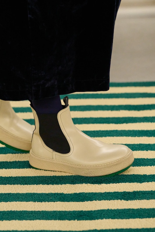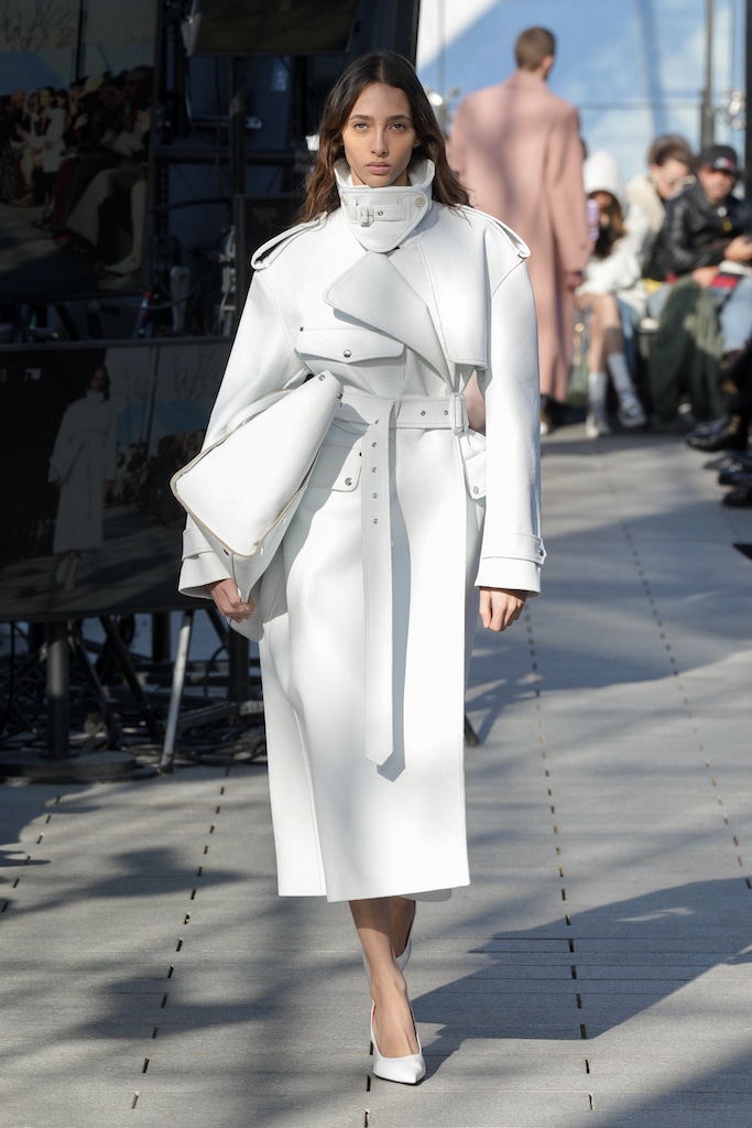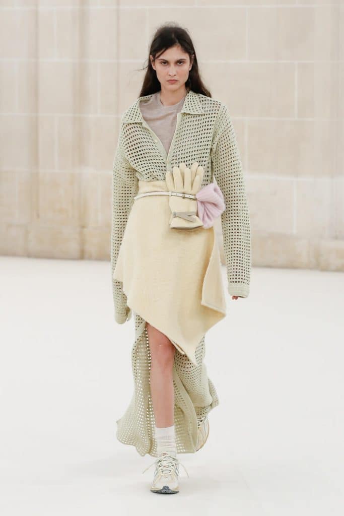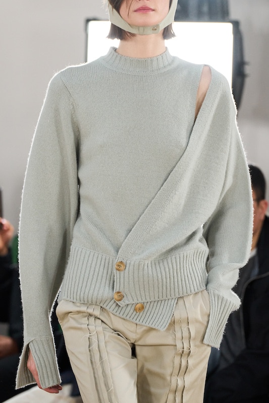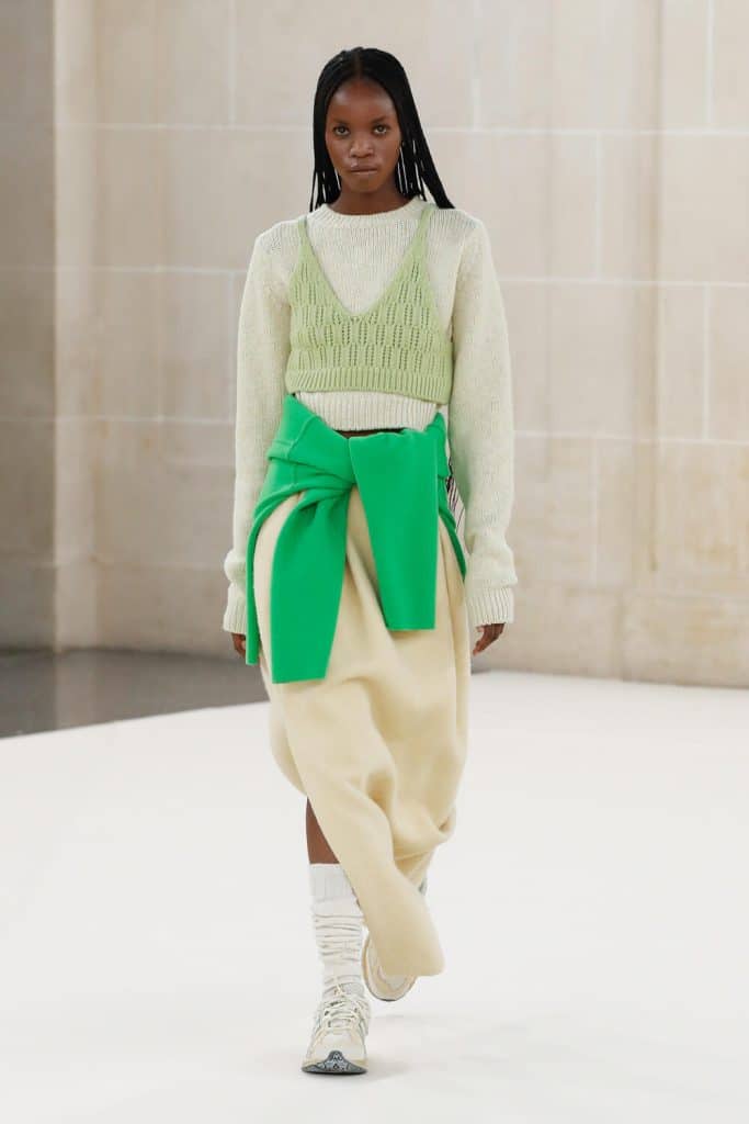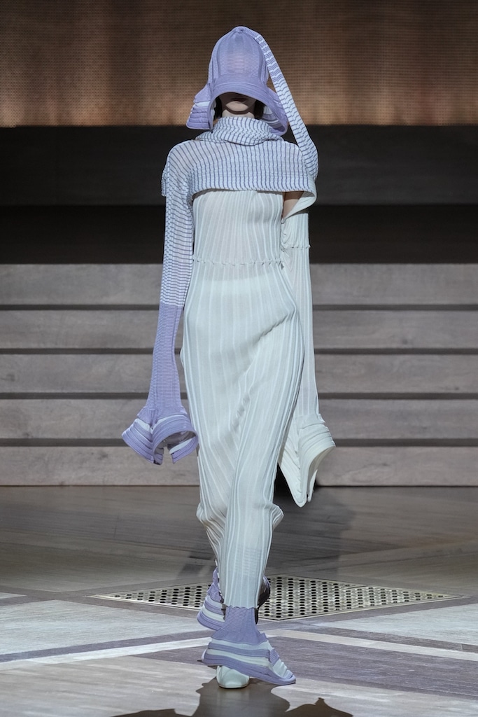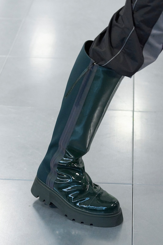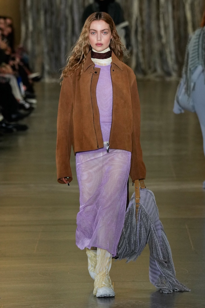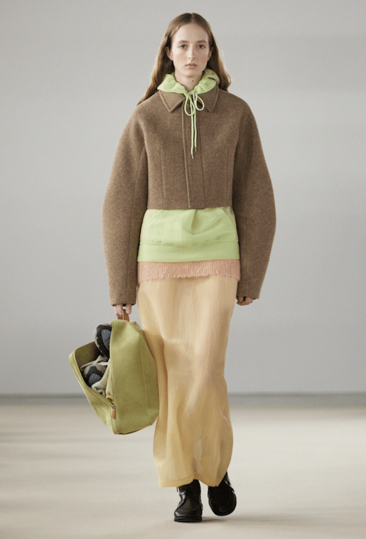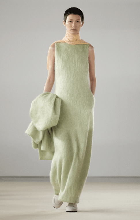 This trend encapsulates a mindset of pragmatism, intellect, and smart solutions. Rooted in a deep appreciation for functionality and efficiency, this trend embraces a poetic interpretation of the outdoors, infusing it with a serene and contemplative essence. The aesthetic reflects quiet utility and soft gorpcore. Subtly tinted pastel hues infuse this trend‘s palette, imbuing it with a tranquil and tender ambiance. Gentle basics with a ratehr genderless appeal form the foundation of this trend, allowing for effortless mix-and-match versatility. Soft knit essentials crafted from gauze and mohair evoke comfort and warmth, while micro-texture materials create an even more poetic, less harsh outdoor look. For the look, all-terrain capabilities ensure adaptability to diverse environments, while maintaining an aura of understated elegance. Understated puffer pieces seamlessly integrate into the silhouettes, offering both warmth and a soft pneumatic look without overwhelming the senses. Workwear takes on a dreamy worn-out appearance, enhancing its functionality with a touch of nostalgia and charm. More sophisticated and understated utility finishings further enhance the aesthetic, marrying form and function with a chic allure. At its core, the FW25/26 macro trend embodies a spirit of serene exploration, inviting to venture into the unknown with looks thar resonate calm confidence and respectful grace towards the outdoors.