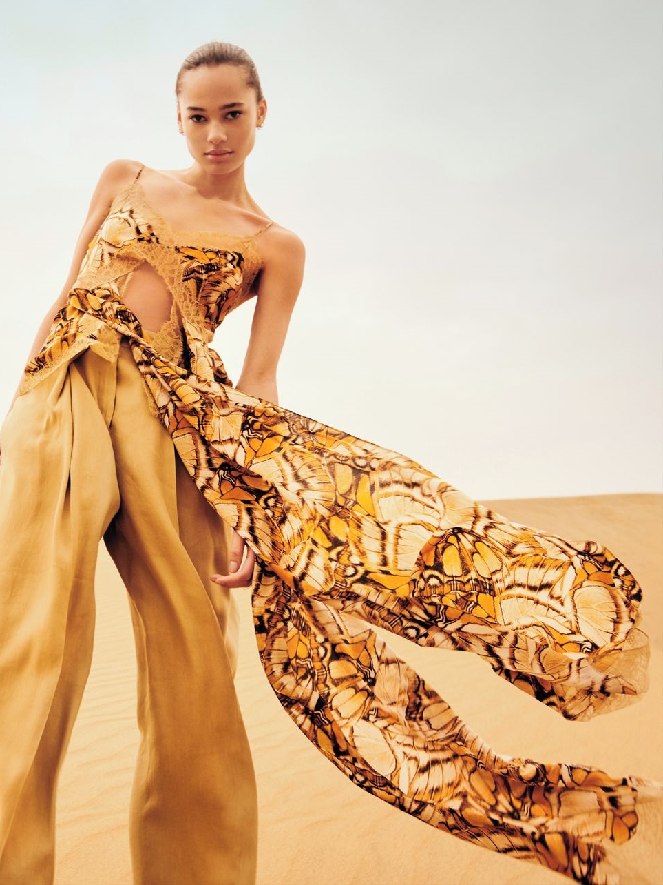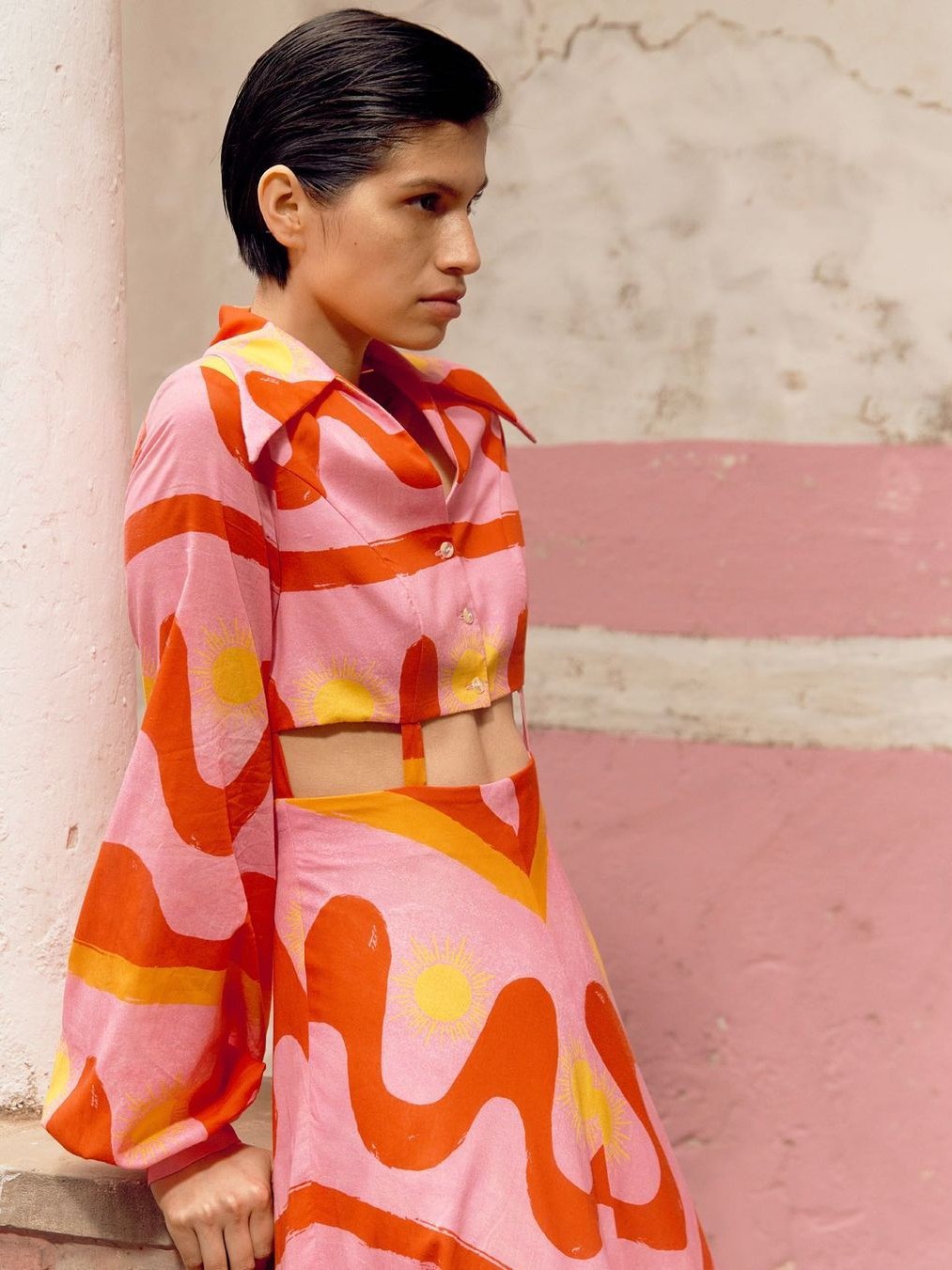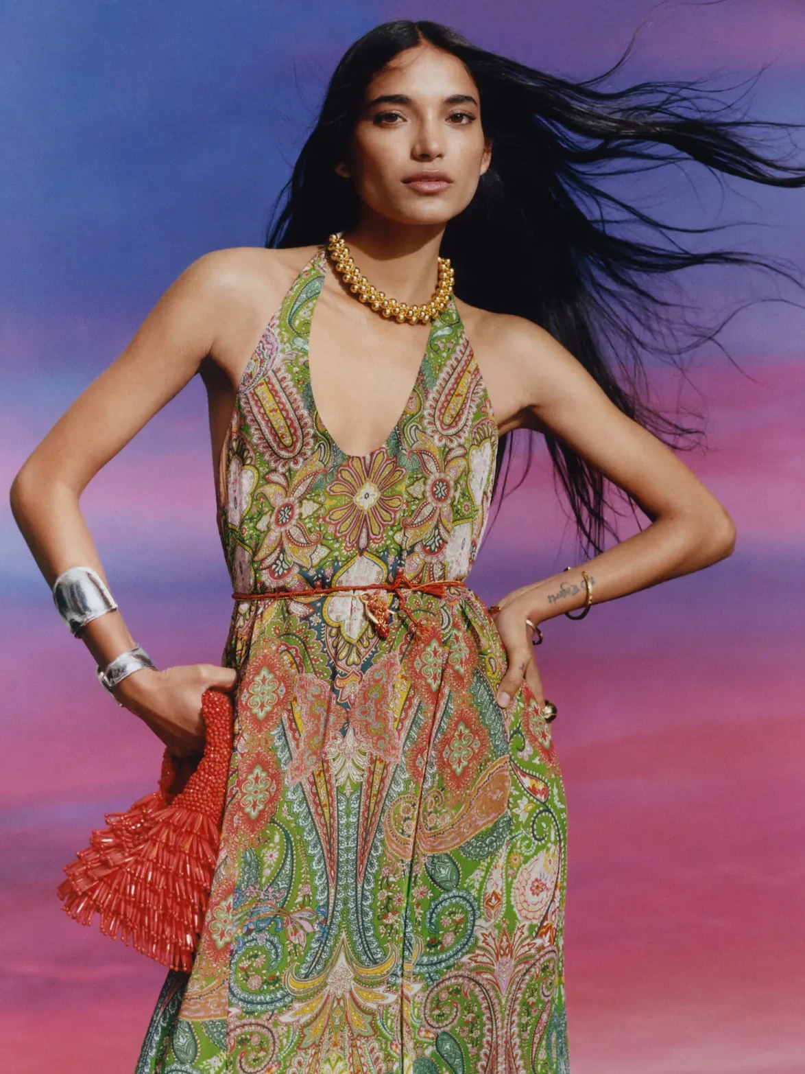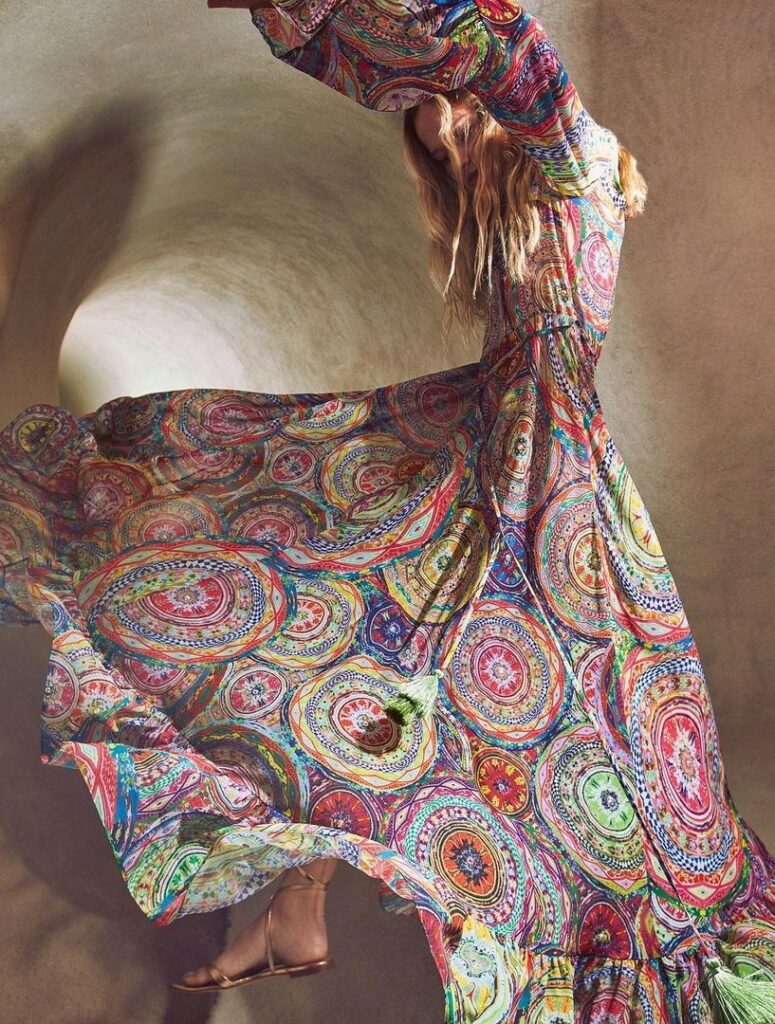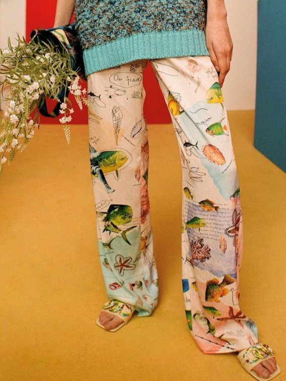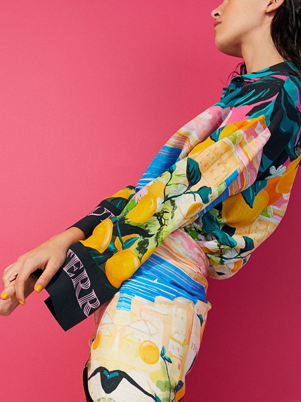 Creative Energies. This summer season provides a prolific moment for brands to restore print creativity and invest in a variety of themes to feed consumers’ appetite for new design. The pandemic showed us how classics prevail as the safer bet during crisis, this liberating moment caused an explosion of innovation on the flip side. While stripes and polka dots conquered the scene for an unexpected revival, other familiar motifs as gingham, paisley and animal prints, were re-invented and spiced up to respond to the zeitgeist. Dopamine dressing remains important , driving bold and more vivid colors to elevate artistic prints into protagonist of the hot season. Even tie dye, infiltrating the scene for a couple of seasons now, has been given a nod: the self-made dye effect gives way to a digital mix of colors now. Augmented colors fuse with blurred and digitally retouched finishings, creating new shadowed auras. While some consumers are seeking for new digital techniques to intrigue their wardrobes, others are chasing the rediscovery of nature: the selection, is wide and diversified, ranging from fruit and horticulture themes, immersive landscapes to beautiful logbooks of nautical elements. As a matter of fact, consumers interest recently diverged into a new intimacy with mother nature, especially as talks on climate changes and the frenzy city life become unbearable after a lockdown lifestyle. Therefore, a recollection to primal knowledge surfaces new subtler aesthetics of simple and primitive symbols. New prints are based on cave art and ancestral motifs to perceive the world through powerful signs that trace back to our roots.