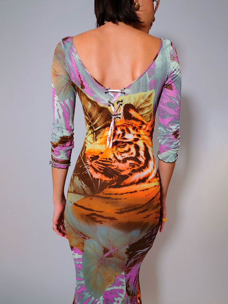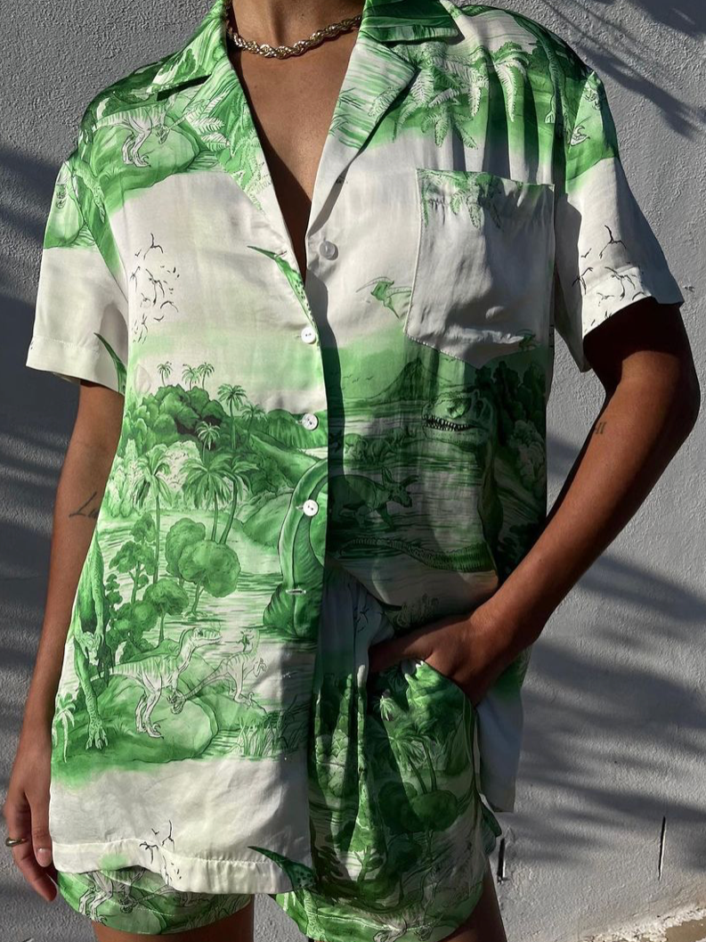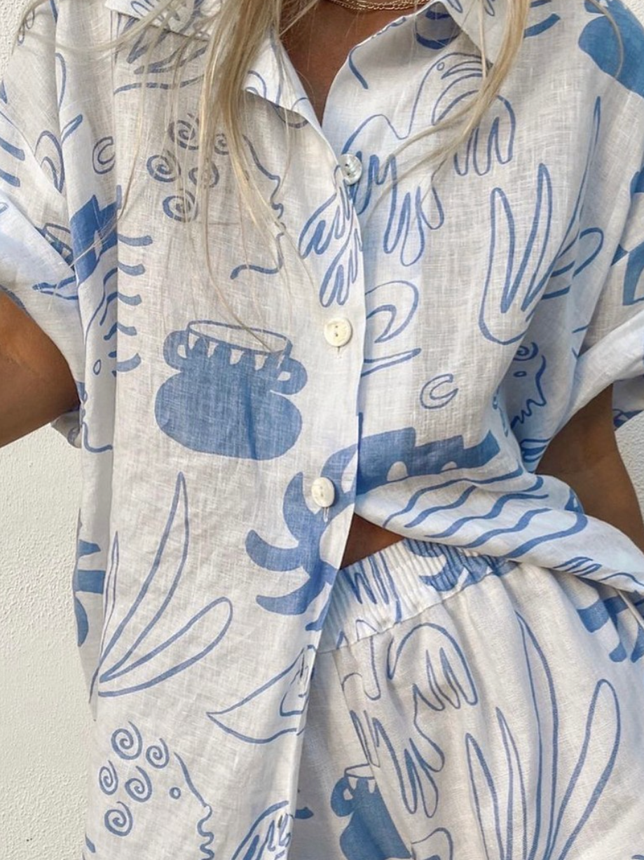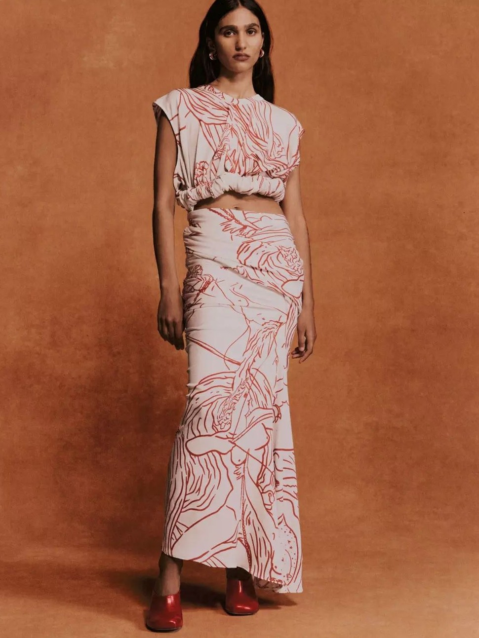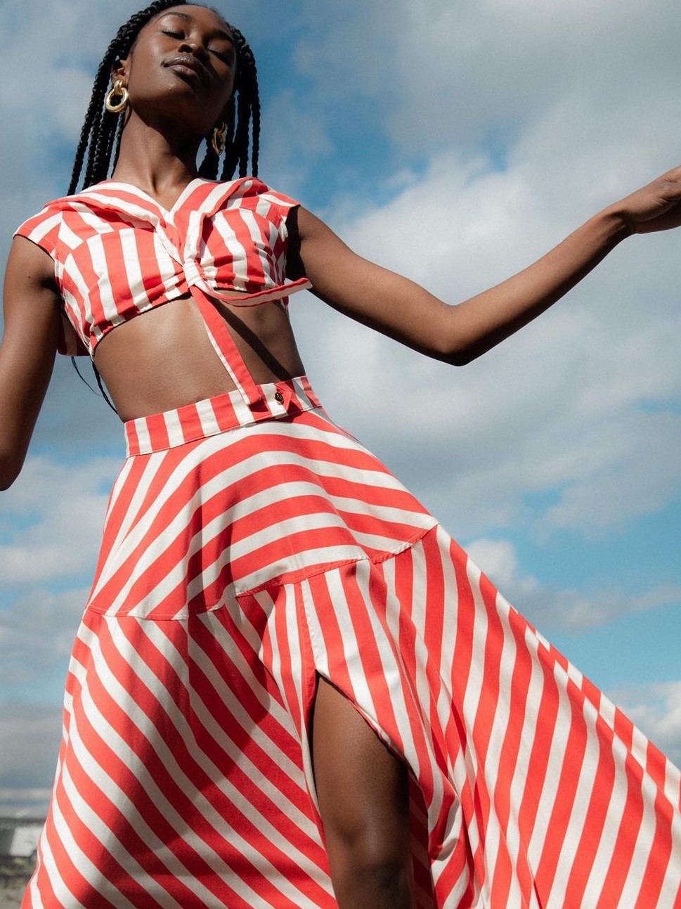 Creative Energies. This summer season provides a prolific moment for brands to restore print creativity and invest in a variety of themes to feed consumers’ appetite for new design. The pandemic showed us how classics prevail as the safer bet during crisis, this liberating moment caused an explosion of innovation on the flip side. While stripes and polka dots conquered the scene for an unexpected revival, other familiar motifs as gingham, paisley and animal prints, were re-invented and spiced up to respond to the zeitgeist. Dopamine dressing remains important , driving bold and more vivid colors to elevate artistic prints into protagonist of the hot season. Even tie dye, infiltrating the scene for a couple of seasons now, has been given a nod: the self-made dye effect gives way to a digital mix of colors now. Augmented colors fuse with blurred and digitally retouched finishings, creating new shadowed auras. While some consumers are seeking for new digital techniques to intrigue their wardrobes, others are chasing the rediscovery of nature: the selection, is wide and diversified, ranging from fruit and horticulture themes, immersive landscapes to beautiful logbooks of nautical elements. As a matter of fact, consumers interest recently diverged into a new intimacy with mother nature, especially as talks on climate changes and the frenzy city life become unbearable after a lockdown lifestyle. Therefore, a recollection to primal knowledge surfaces new subtler aesthetics of simple and primitive symbols. New prints are based on cave art and ancestral motifs to perceive the world through powerful signs that trace back to our roots.