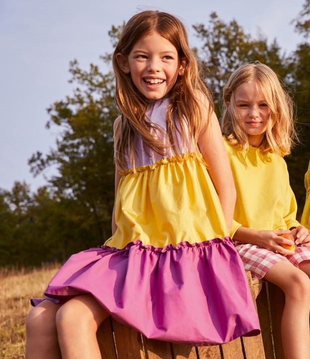 Over the last year, fashion was strongly influenced by dopamine dressing: a psychological approach to colors whose aim is to mood-boost and generate joy and serenity. Cultural shifts in society generated universal anxiety, which is why even perception became so important when considering emotions. Kidswear is set to experiment with colors and provide children with a joyful momentum to bring back fun, identity exploration and a sense of community. Rainbow spectrums will serve kids to enhance their most joyful moments with different techniques from colorful tie-dye prints to stripes and color blocks. This burst of energy builds on enhanced tones and juicy pastels to suit a more grounded optimism of the moment. Those rainbow hues do not only represent an occasion to enhance and liberate emotions on a daily canvas, but represent peace and inclusivity in a multicolored world.