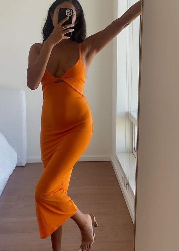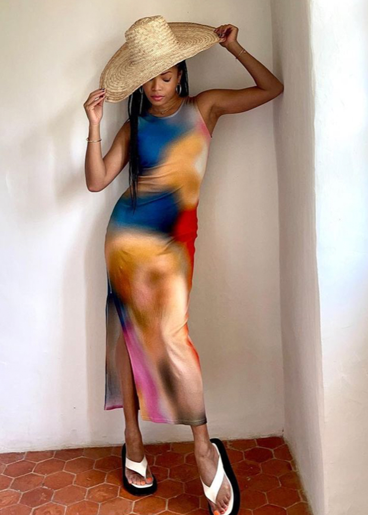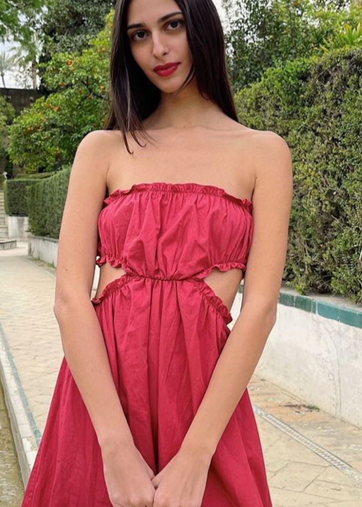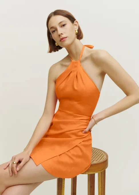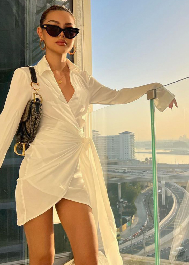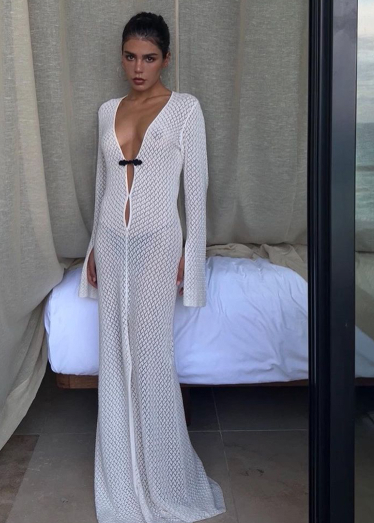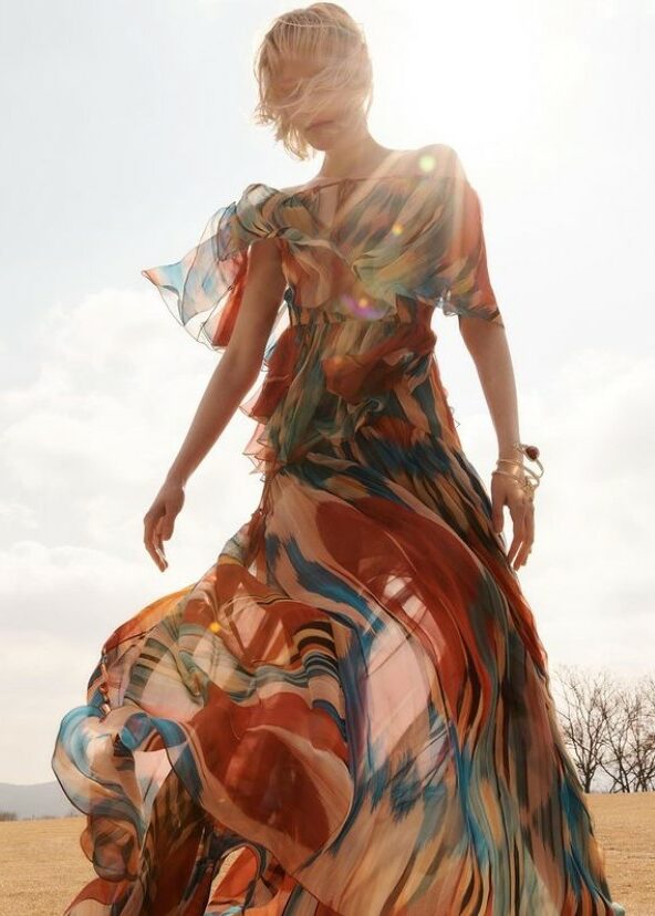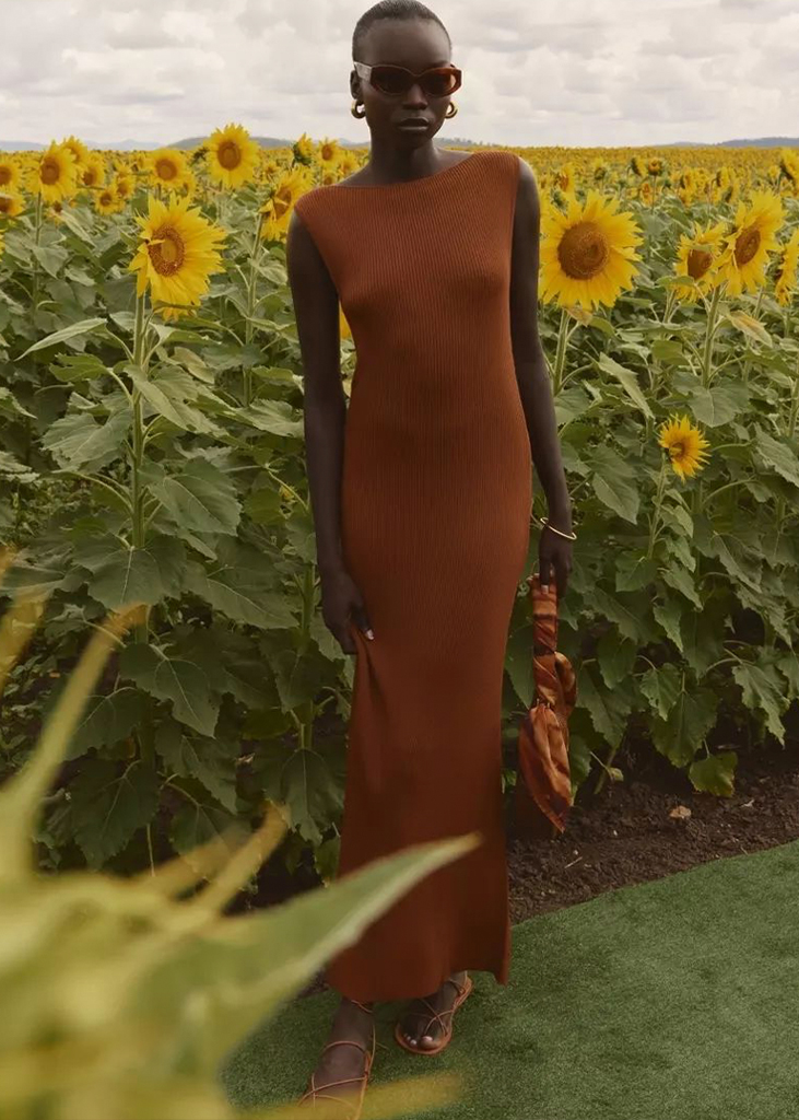 Gorgeous forms for female empowerment. Seductive and gentle dress styles are referential for anything feminine and are pulsating across the feeds of influencers to enhance their womanhood. Body-hugging fits and nostalgic mini-styles openly emphasize the female form, while romanticized bohemian dresses and flowing volumes resonate femininity in a more delicate look. The latest highlights include longer halter dress, ever-more Y2K minis, creative kaftans and gentle knitted throw-ons. Similarly, Jacquemus-inspired wrapped shirt-dresses, explore their commercial potential.