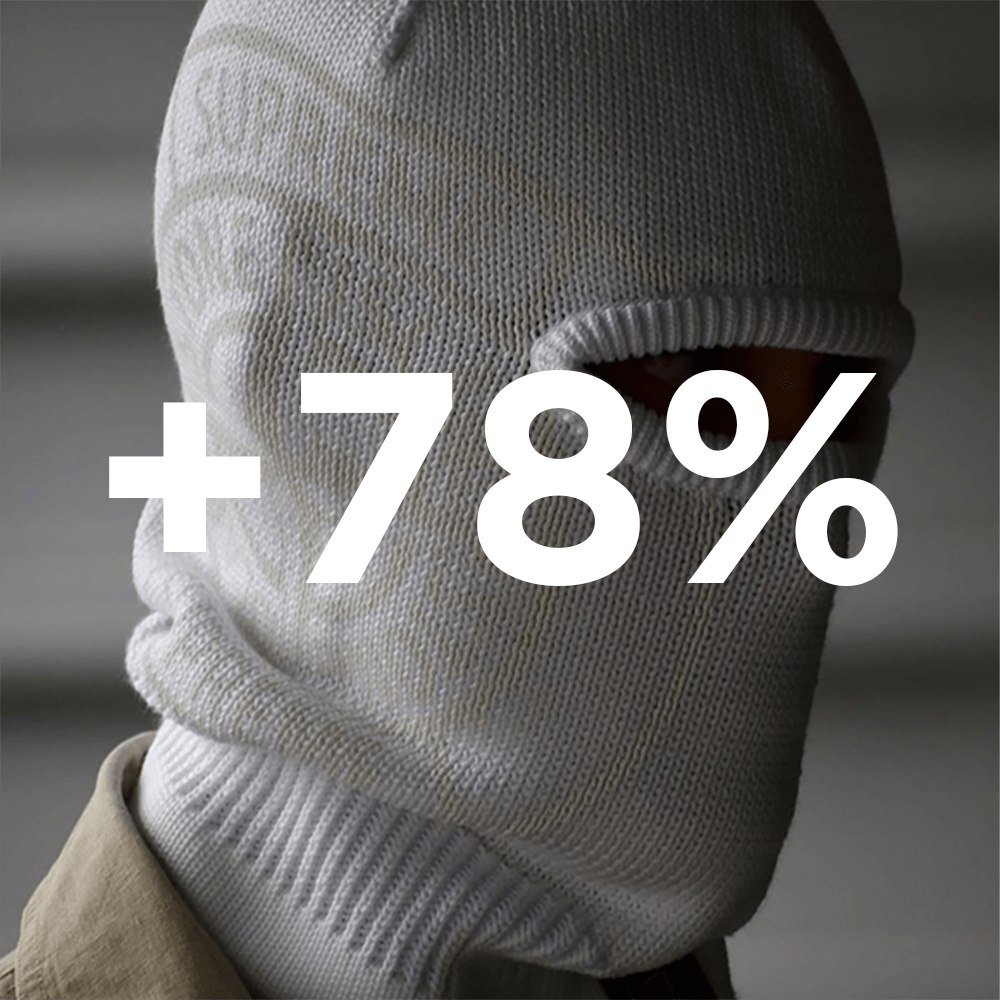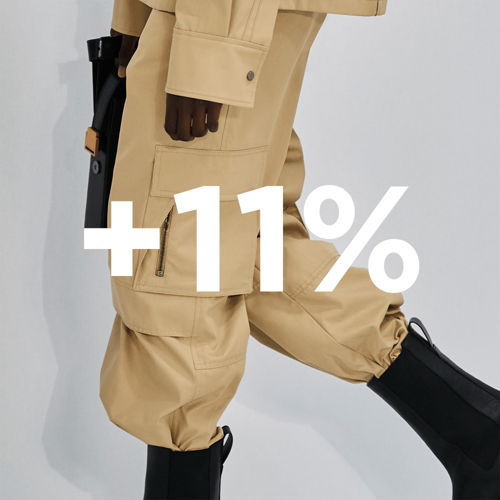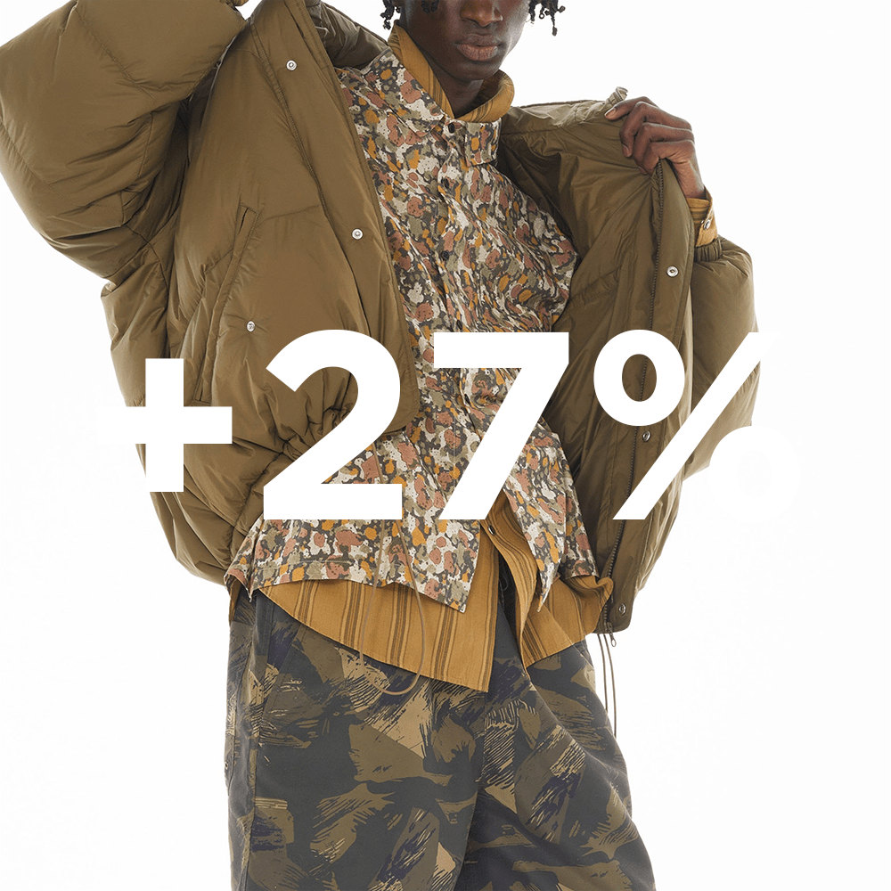 For A/W 22 outdoor themes define menswear collections. With quilting growing by +27% and knits remaining a stable but big trend (+1%), crucial components of outdoor style are demonstrating their impact on the fashion market. Layered looks are growing by +27% from A/W21 and show how a need for more versatile and functional products matches with current changes in the seasonality of fashion and the planet. Cargos and Balaclavas are celebrating growing interpretations and their solid growth indexes of +11% and +78% manifest that these trendy pieces will remain important for the next season.
