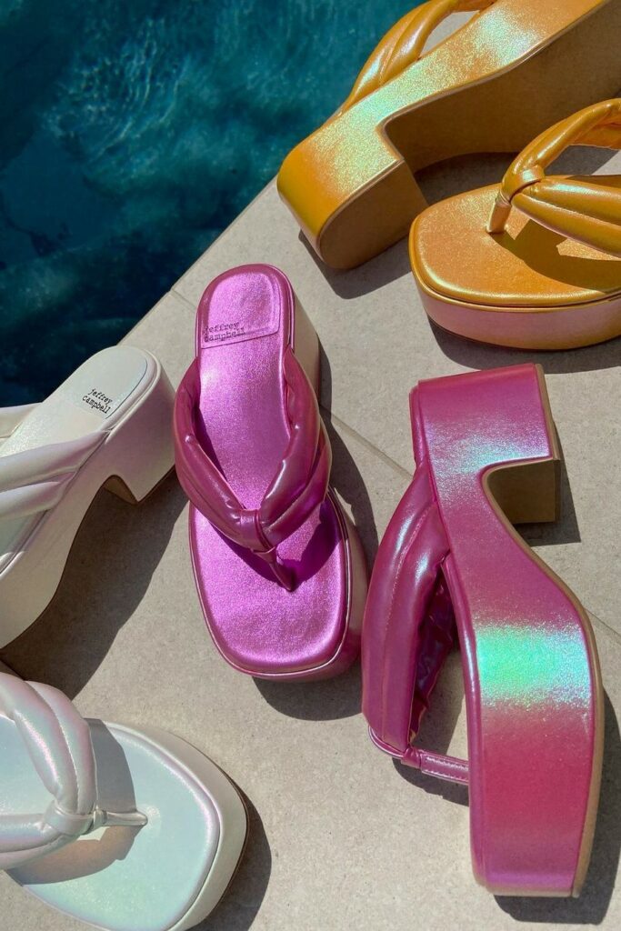Bold Beachin’ Over the pandemic, the slide has become a staple footwear style. From the most fashionable to the most homey clients, the piece was not to be missed in a home-based wardrobe and became more sophisticated and opened up to experimentation. Now, slides and sandals are returning to their usual territory: the beach. With a need for water-resistance and sturdiness, jelly and rubber slides become essential for a successful assortments again. Preparing us for an enchanting season, beach sandals are opting for exciting details and more fashionable features. References range from the 70s to the 2000s and even spark a futuristic vibe, find out more below. – The data in this report shows the evolution of searches year on year on summer season.