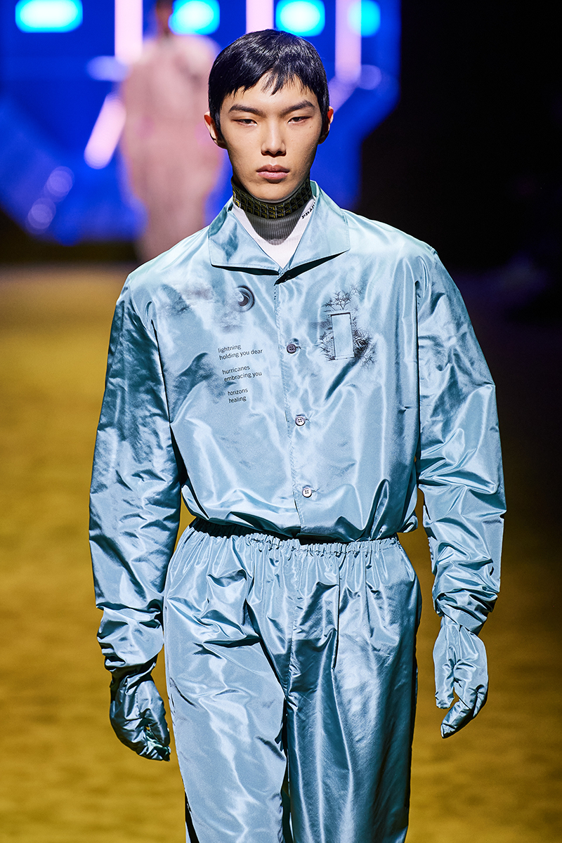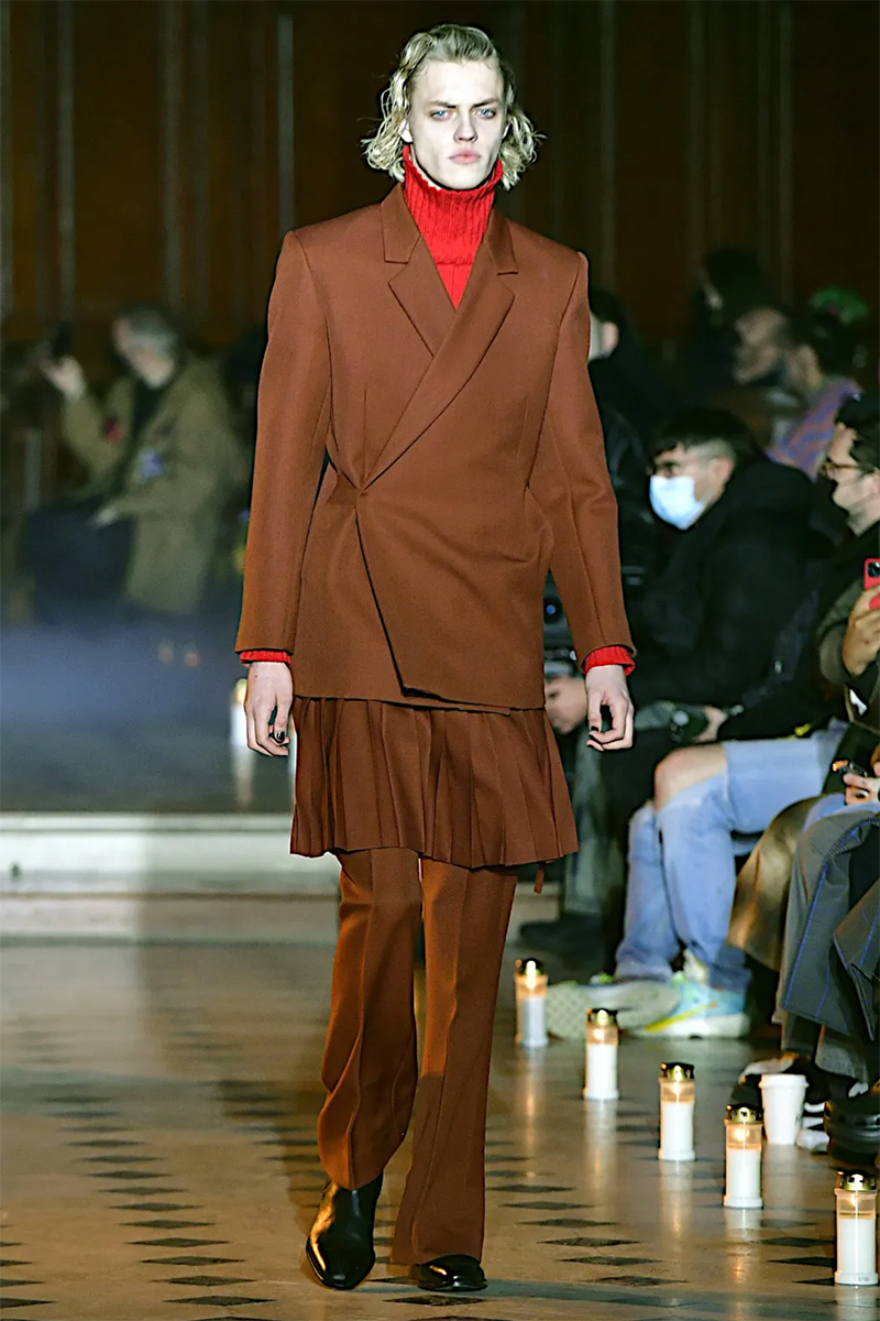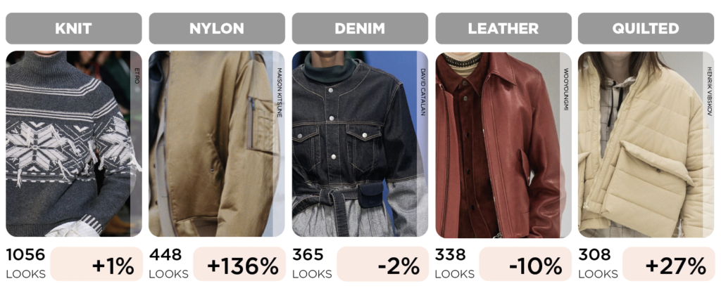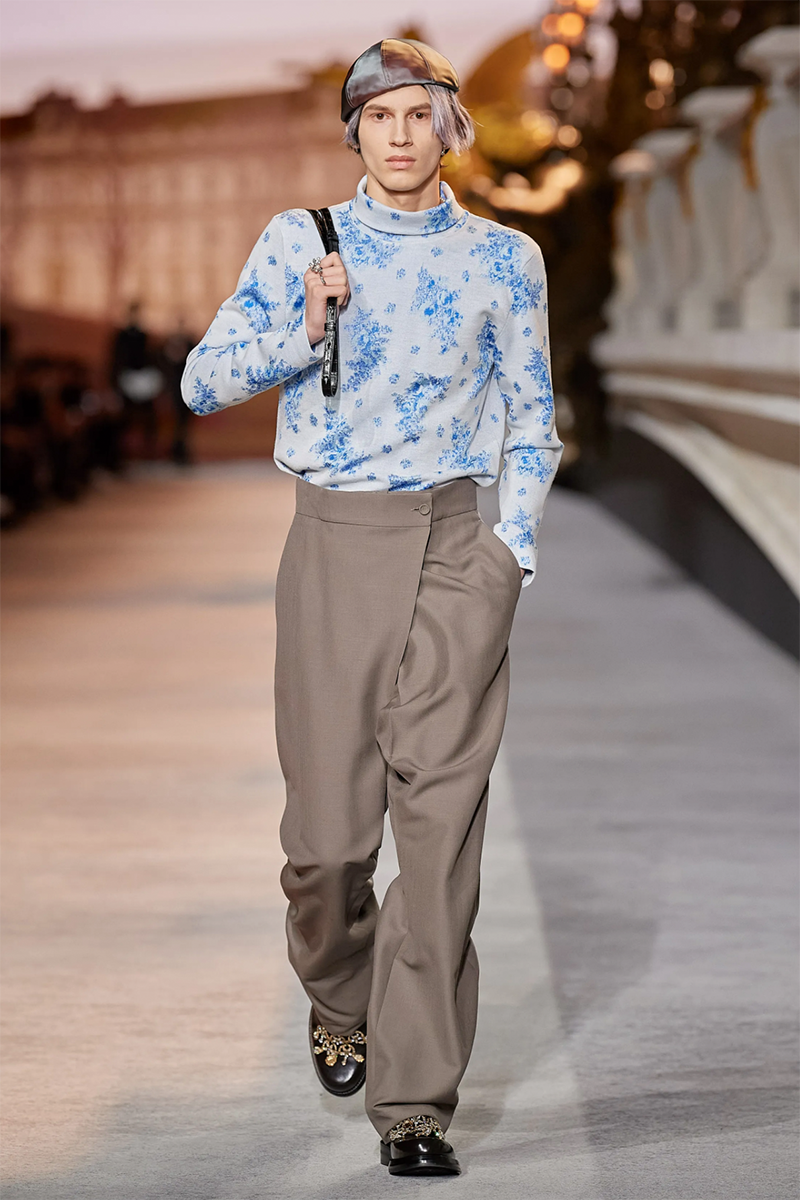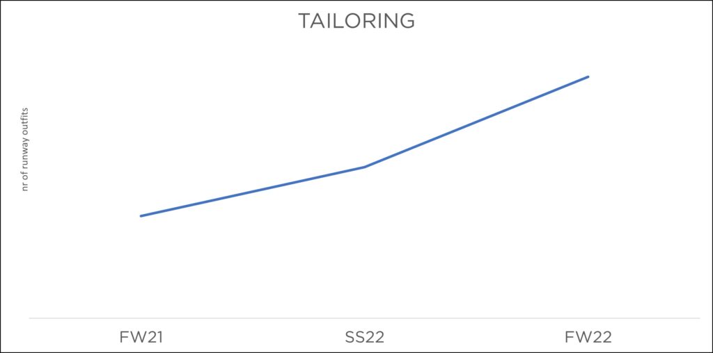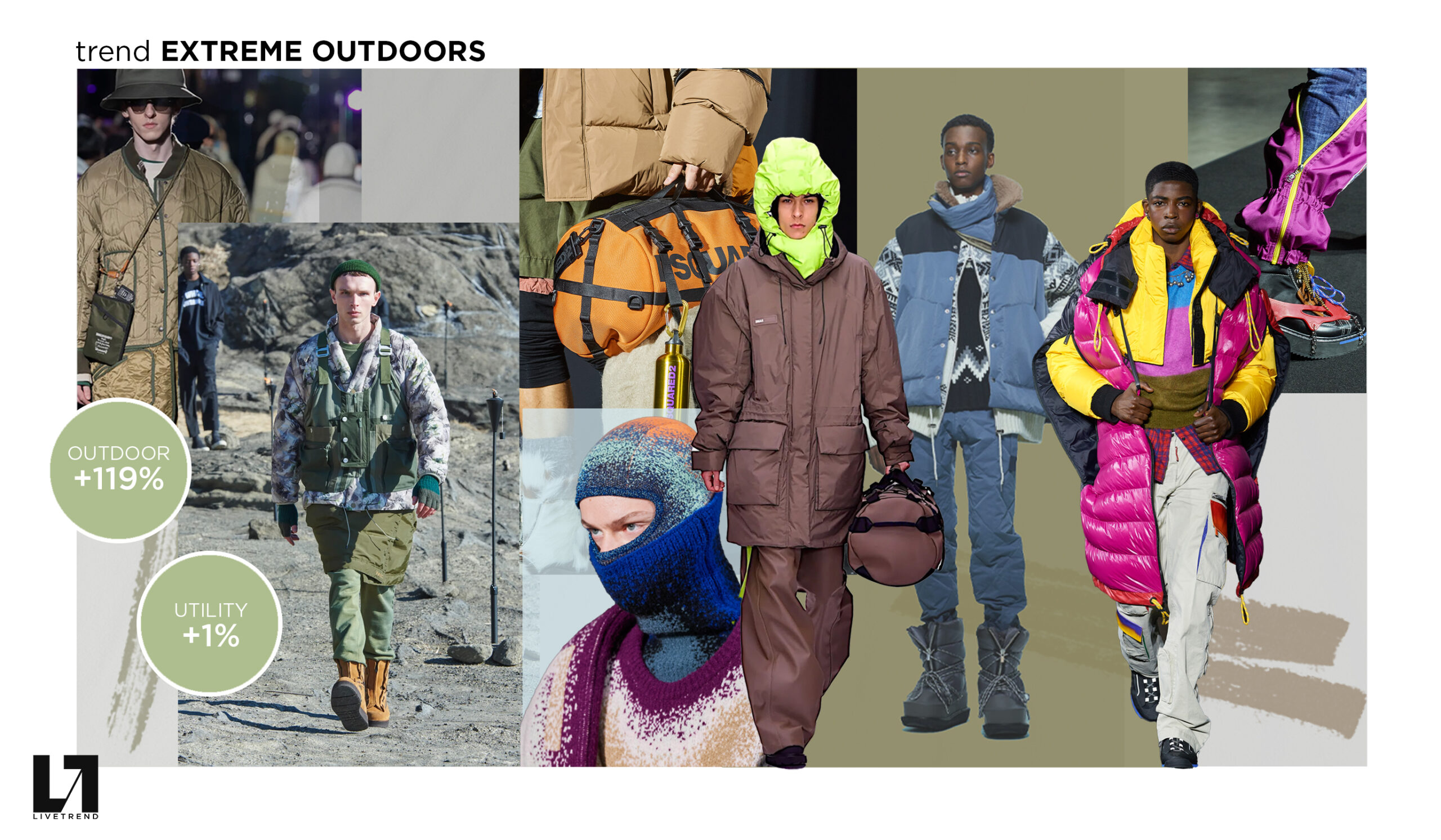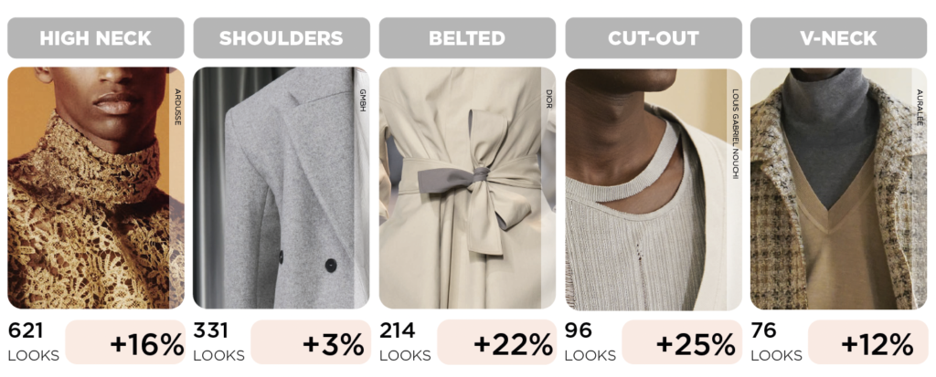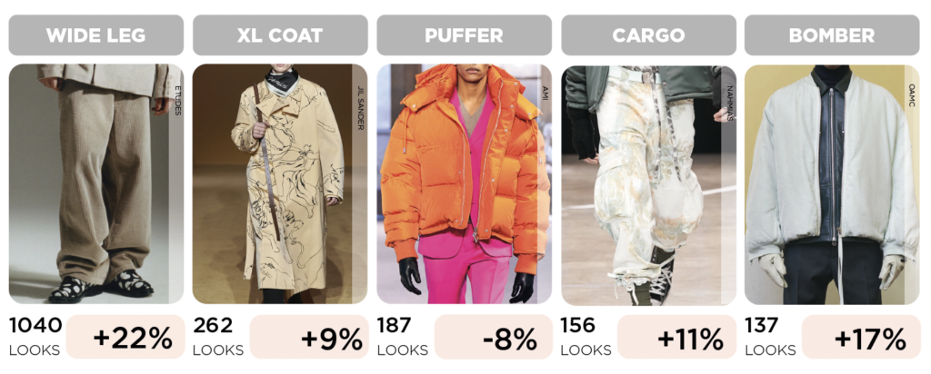 This menswear season displayed a lot of liberation. While designers began to liberate men from their masculine codes with bold feminine influences, they offered liberation from the pandemic with great outdoors themes and a liberation of the soul through new meaning via mythic narratives. Looking at one of the latest highlights, the hourglass silhouette, the shows have shown a significant +26% increase, which is strongly related to the new concepts of masculinity. As tailoring resurfaced, adding structure to the silhouettes, a new uniform for post-covid times emerged. Find the Top 5 must-haves, colors, details etc below and further dive into some of the dominating narratives that were mentioned before.