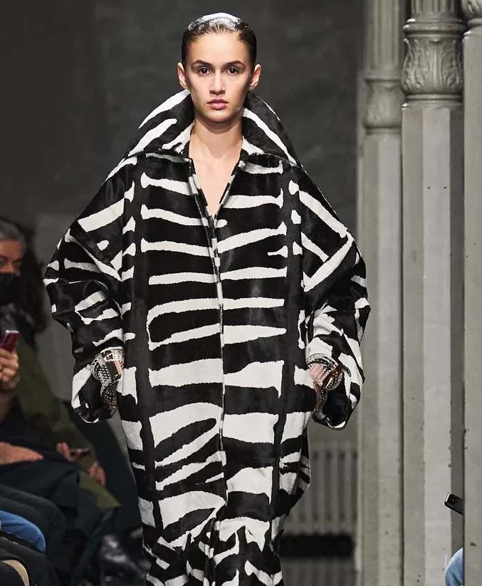 Psychedelia made a huge comeback across prints over the past few seasons and certainly encouraged new experiments in graphic design. With suppressed senses, visuals were the one left to play with and encouraged bolder stories. With the Y2K mania of this year, animal prints were set to make a comeback. Zebra patterns have emerged to be the favorite, not at last due to their modern and more abstract language. What is emerging from recent designs experiments is a curious and innovative combination between optical patterns and zebra stripes. The two prints merge together into abstract artworks with a somewhat dualistic appearance. This transformative approach, moving from one to the other, is looking towards the interlocking of techniques and aesthetic styles for true innovation. Updating those two classics into a new mood is becoming a way for fashion brands to show how new aesthetics can still form despite the oversaturated market and its diverse offer. The style meets the needs of both, traditional consumers and curios ones, and promises best-selling potential on larger magnitudes.