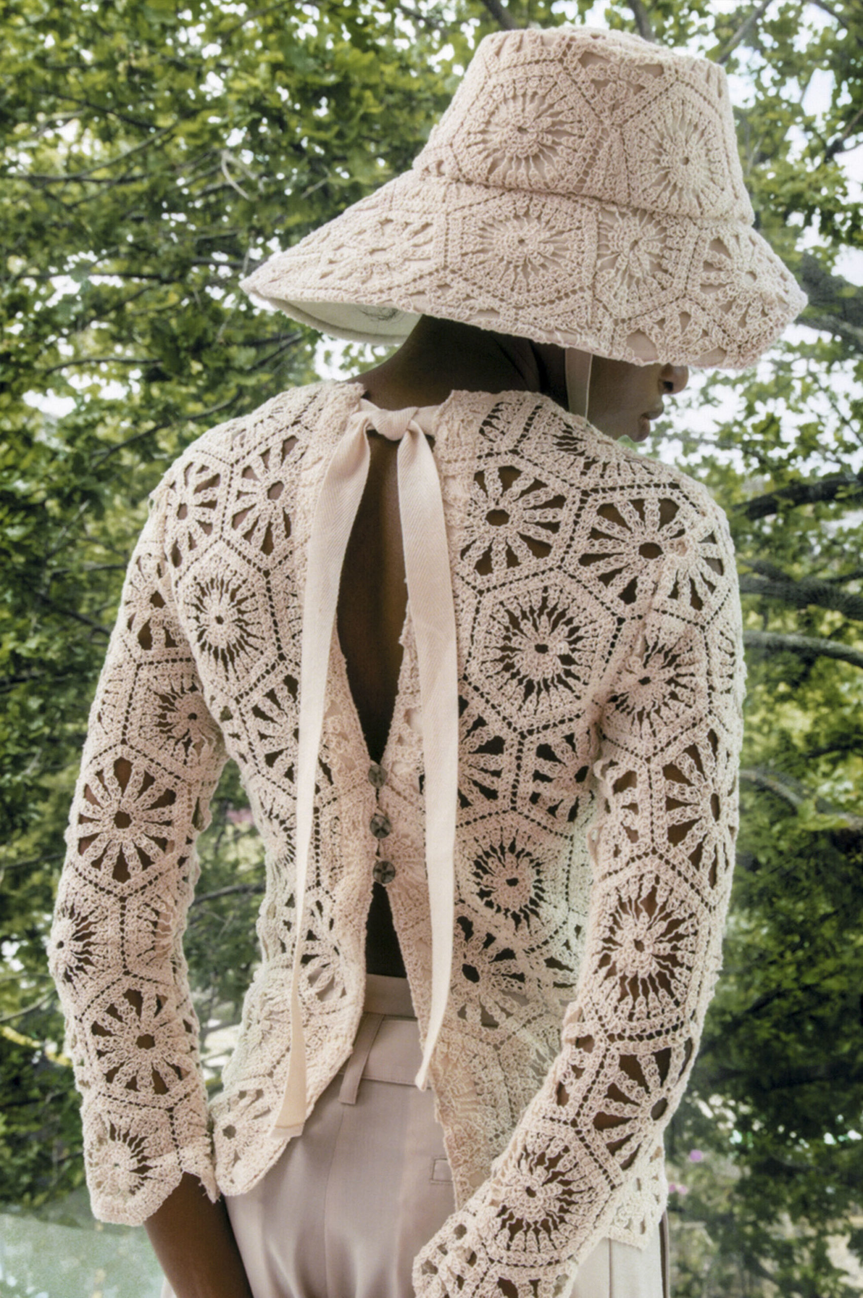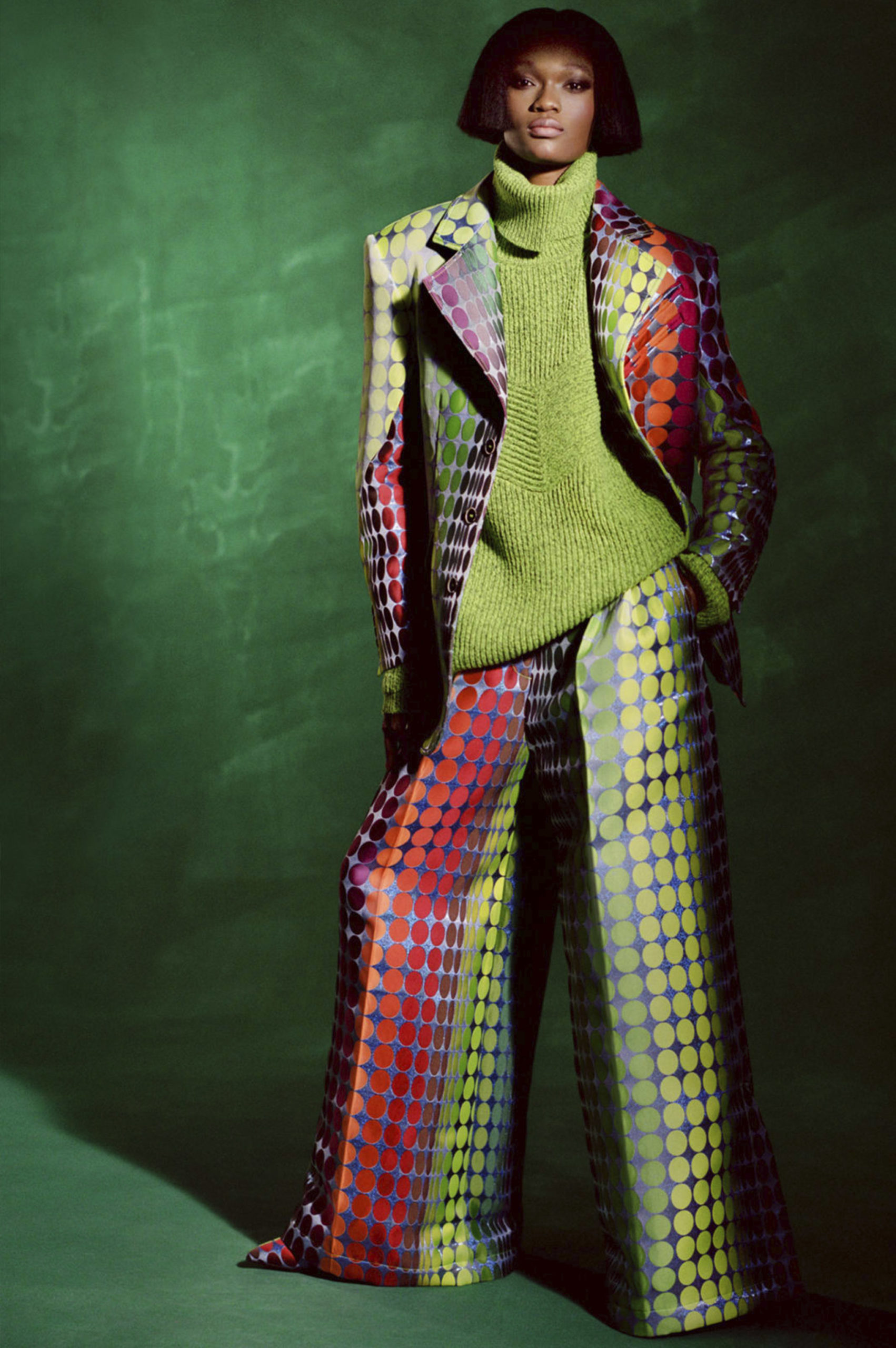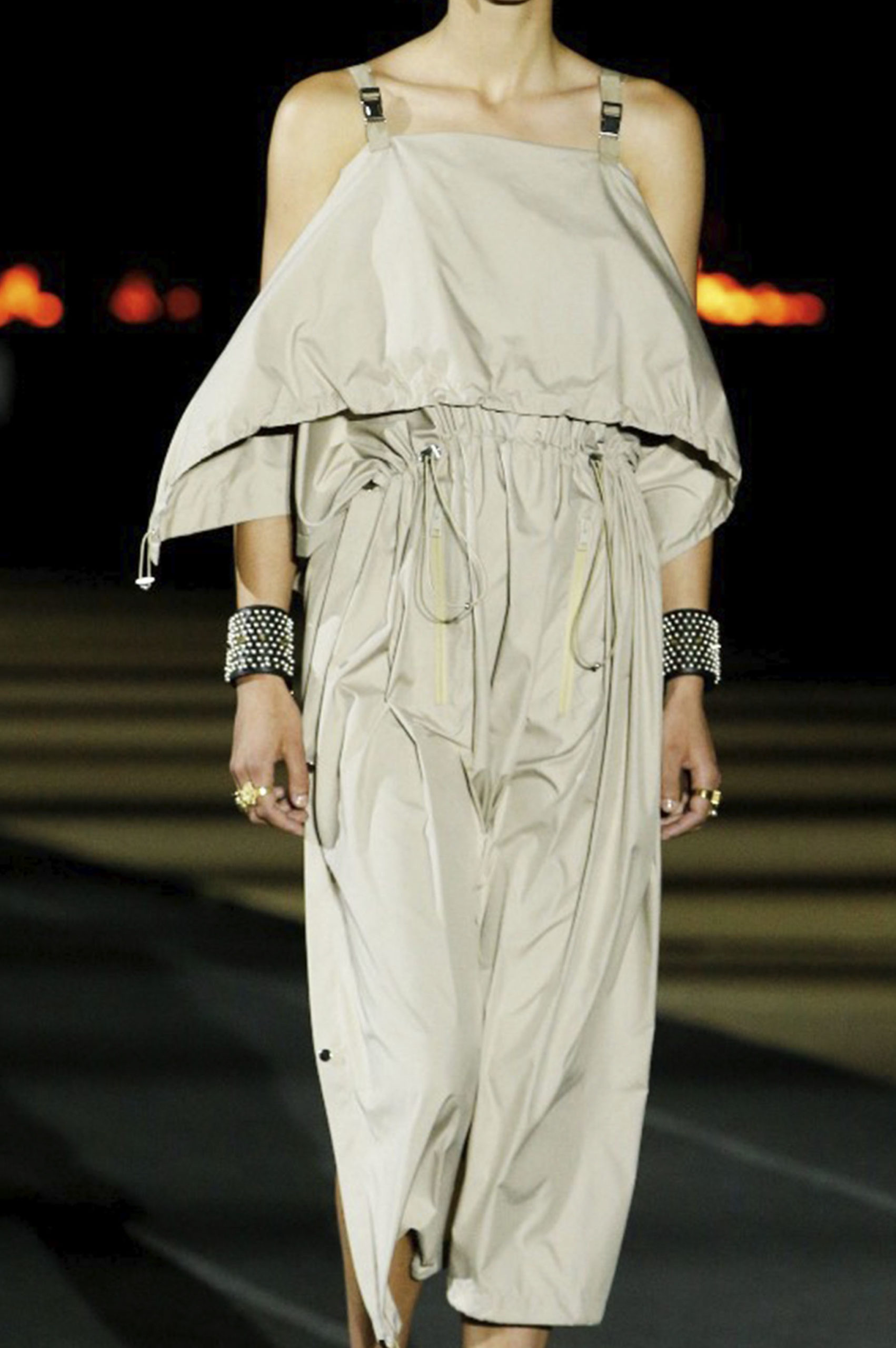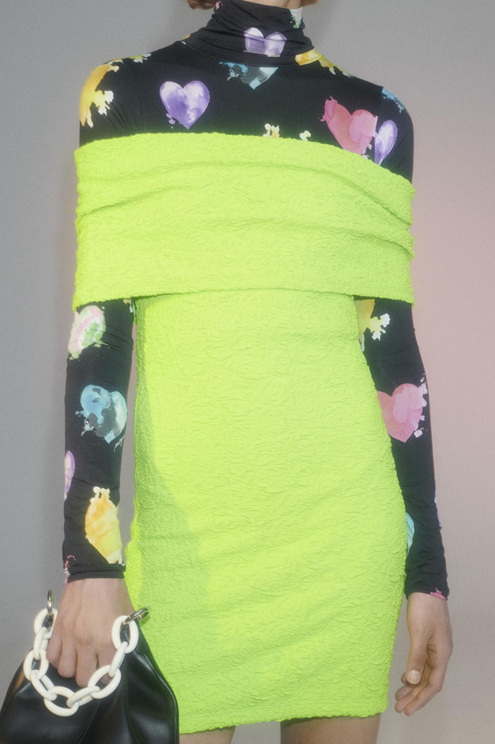 Another big trend, which embraces the versatility and trans-seasonal qualities of the season, is the layering of dresses on long-sleeves. This layered styling was favored by numerous designers and alludes to the returning rhythms of daily life, which demand seamless transitions from day to night, again. Looking towards the evening, summery sparkles, including sequins and holographic styles, as well as glossy vinyls and opulent chains, are introducing a joyful party spirit. The current obsession with the early 2000s, combined with the mood for dancing, has also surfaced the raver pant. Such cargo styles not only feed the nostalgic craze, but offer comfort and function at the same time. Lastly, Tweed has been updated in new, slightly rebellious ways. If used in flashy colors, printed or combined with denim or on generally more contemporary silhouettes, the classic material feels surprisingly new on the Resort Runways.