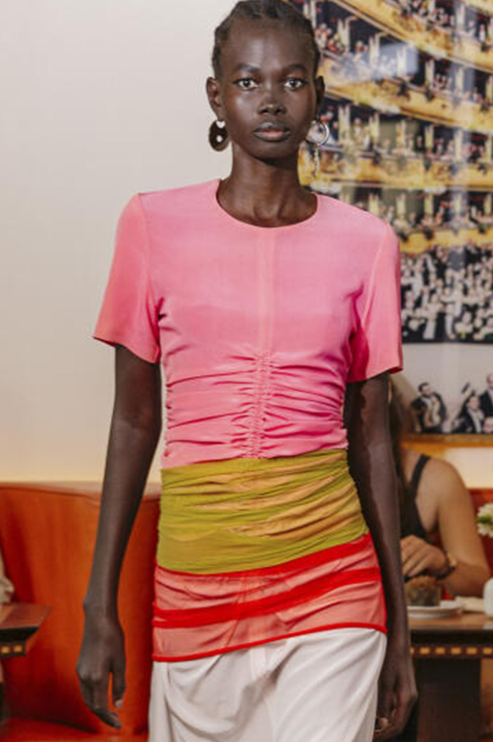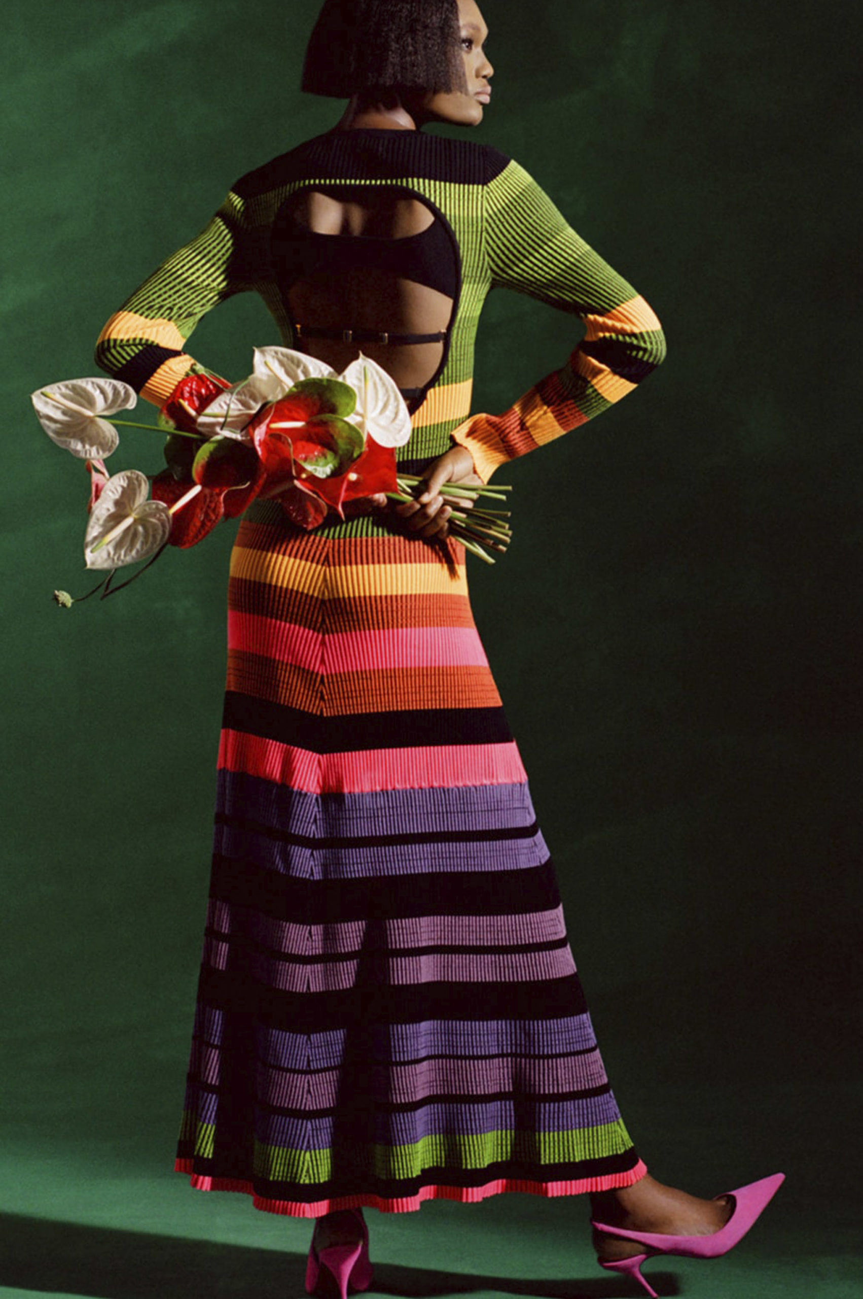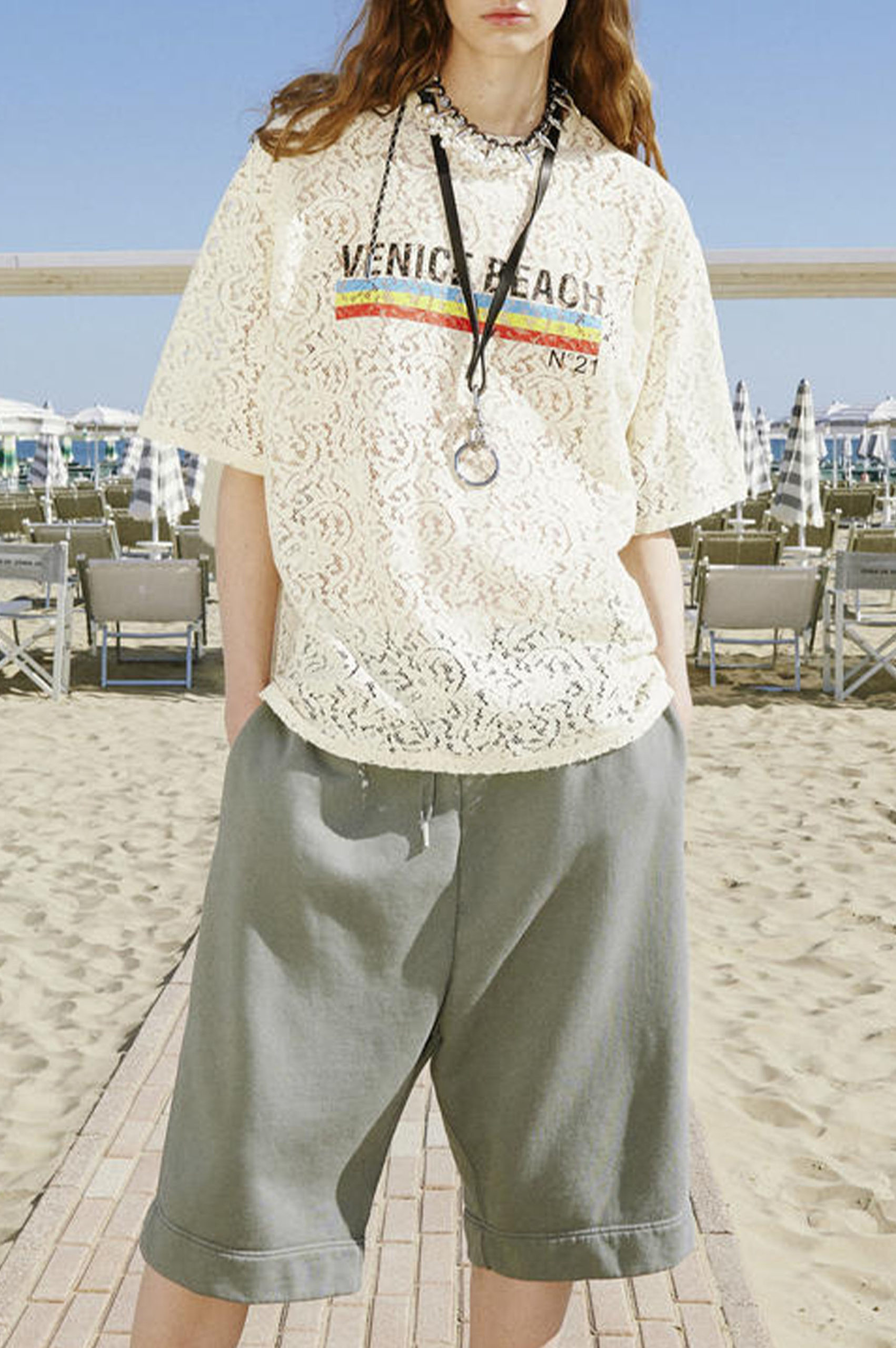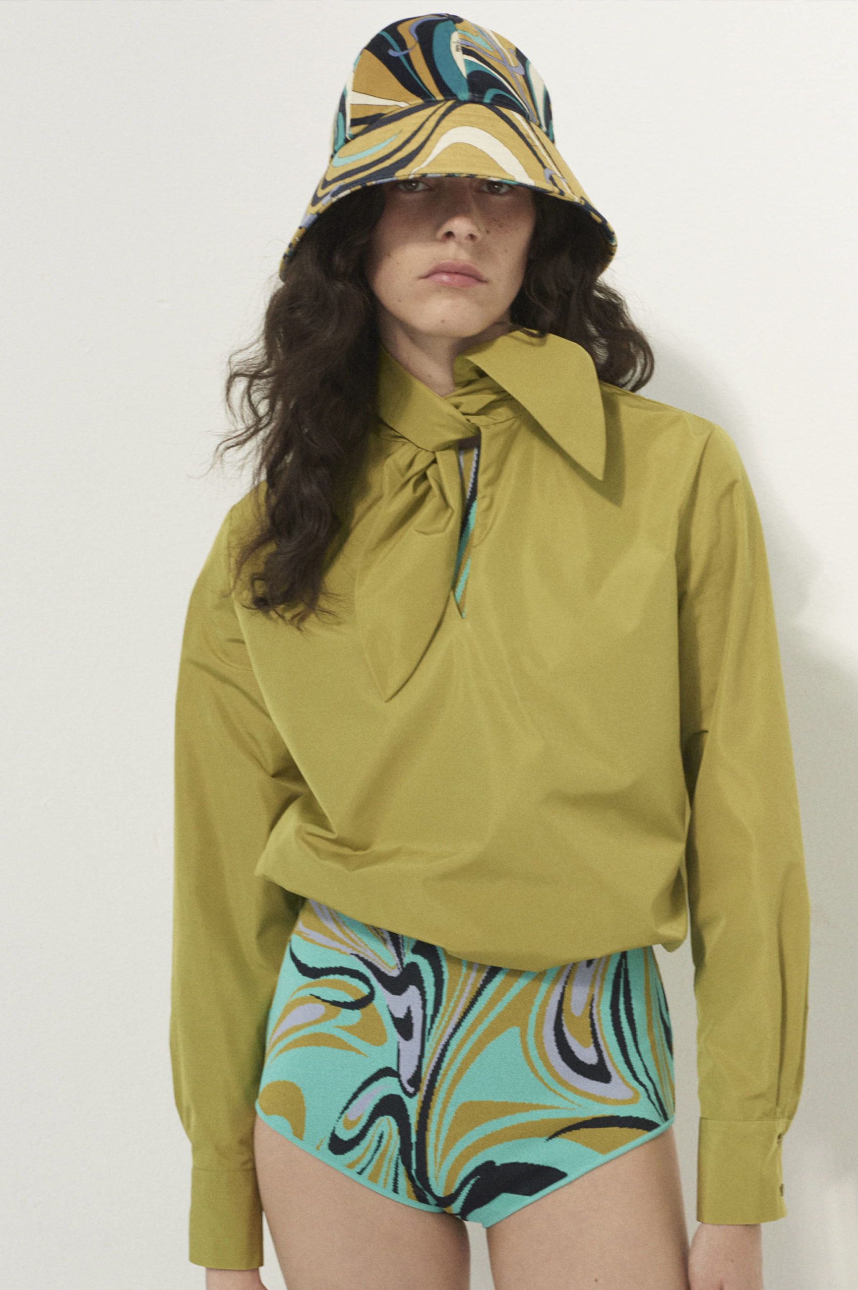 The 2022 Resort Shows have shown to embrace the current transition into a post-pandemic period. The mood-enchanting and positive spirits, which were essential to FW22 runways, have been maintained within those Pre-Summer collections. There is an omnipresent nod to holiday themes, including new must-haves like the bucket hat, off-the shoulder styles, xl-bermudas and sporty drawstring styles. Matching this eclectic mood, rainbow stripes, favored in knits, and lime-green color highlights are sustaining the statement character of Resort presentations.