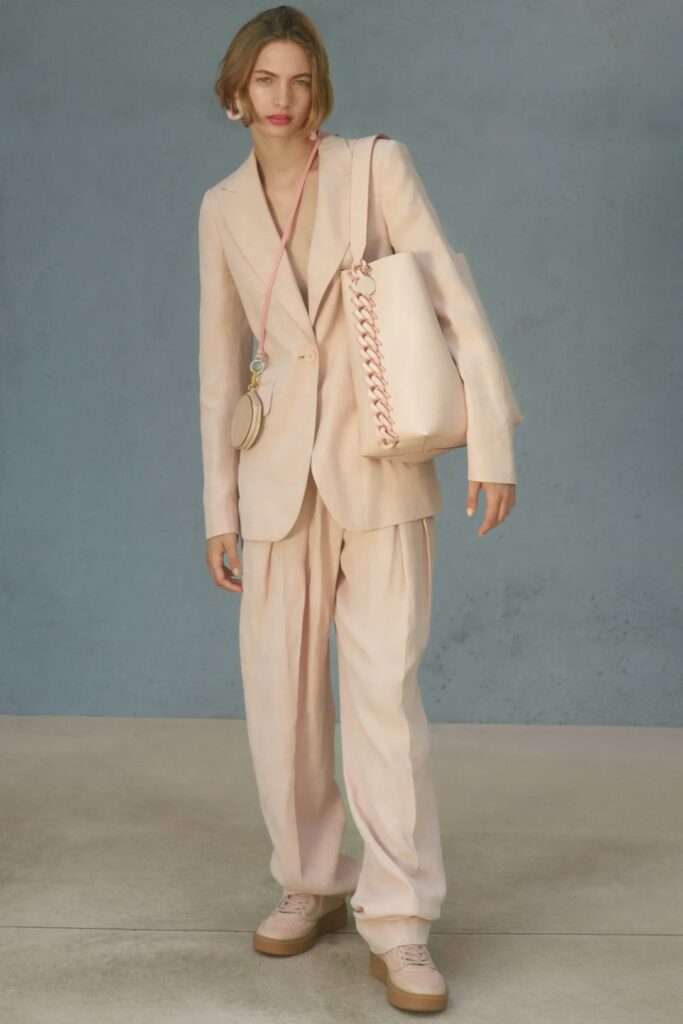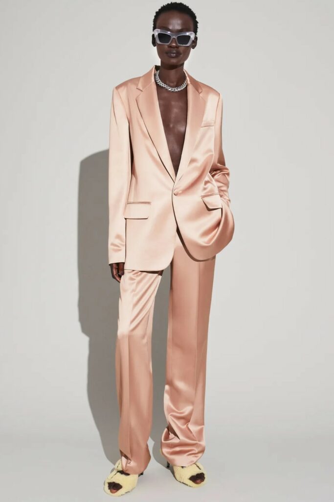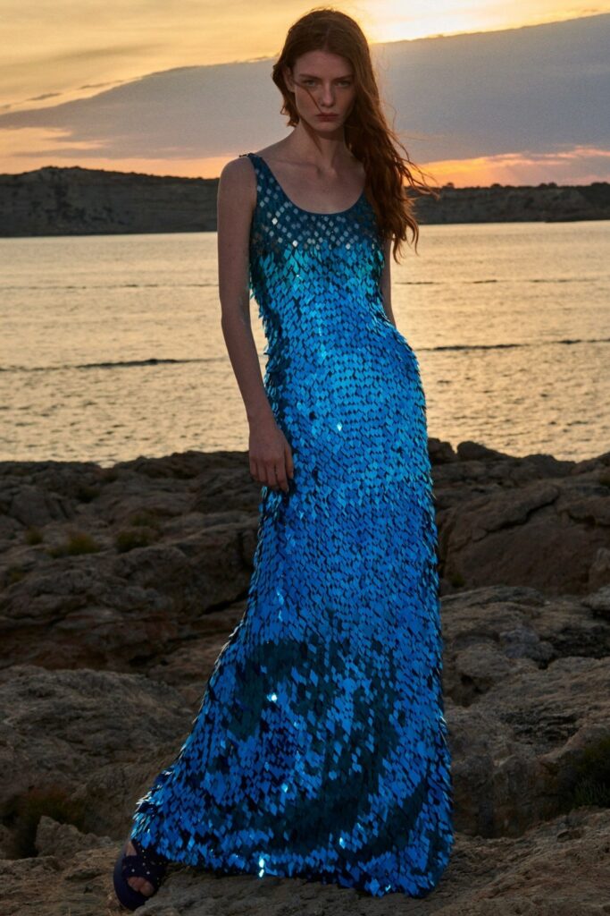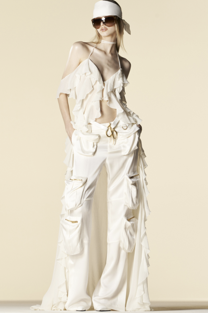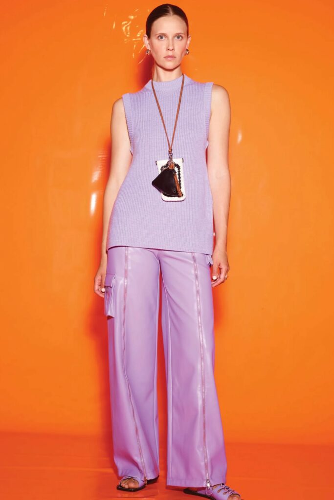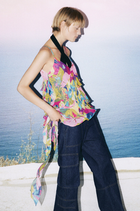 Full of new energies. Resort 23 defined a blending of vacation and holiday themes with overarching macro trends. As consumers look for energizing and mood boosting pieces, they also desire a sense of deeper meaning and connection. The key pieces of the season are drawing on reworked 2000s styles, such as baggy pants, frivolous hems, halter necks and low-waist flare pants. The fun and spontaneity of the Y2K period is appealing to consumers who want to experience