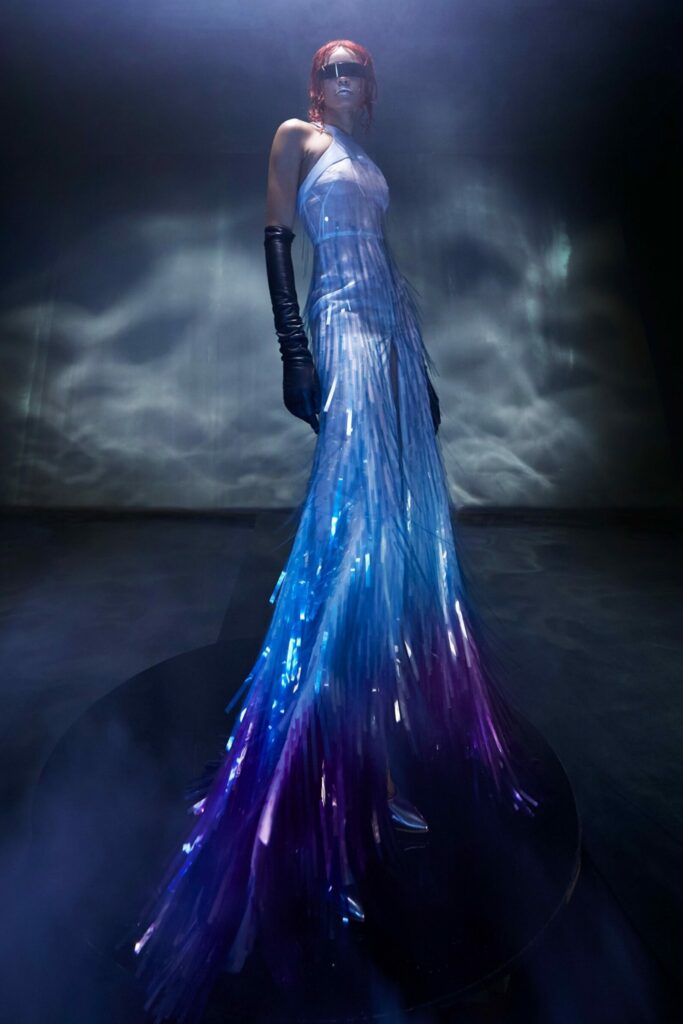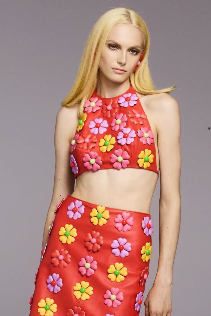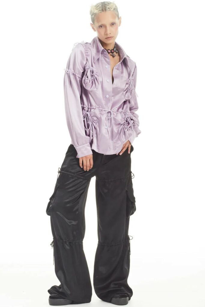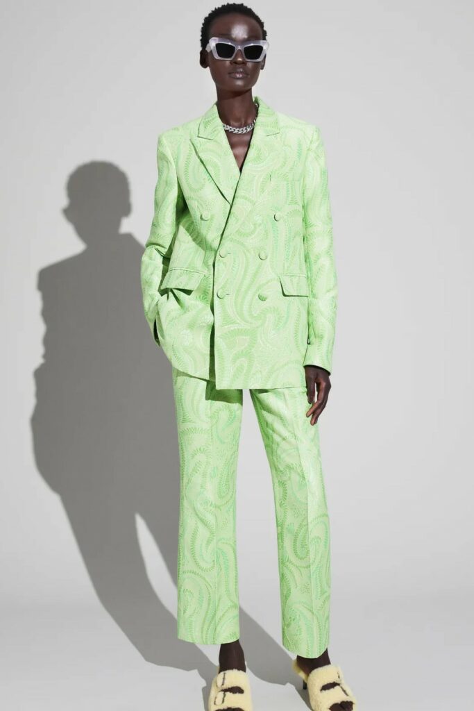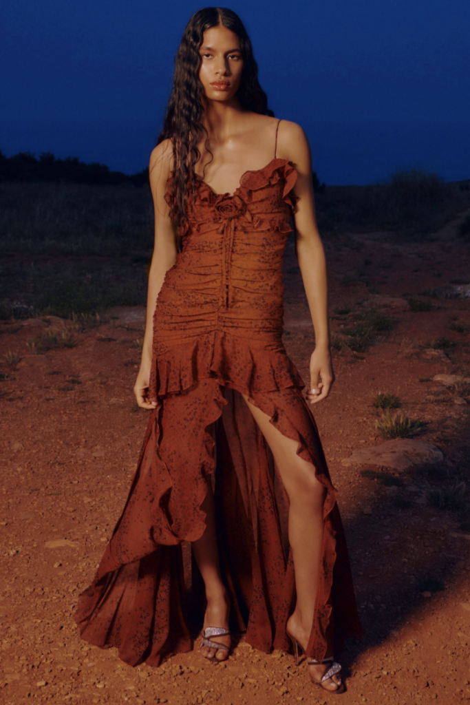 Full of new energies. Resort 23 defined a blending of vacation and holiday themes with overarching macro trends. As consumers look for energizing and mood boosting pieces, they also desire a sense of deeper meaning and connection. The key pieces of the season are drawing on reworked 2000s styles, such as baggy pants, frivolous hems, halter necks and low-waist flare pants. The fun and spontaneity of the Y2K period is appealing to consumers who want to experience