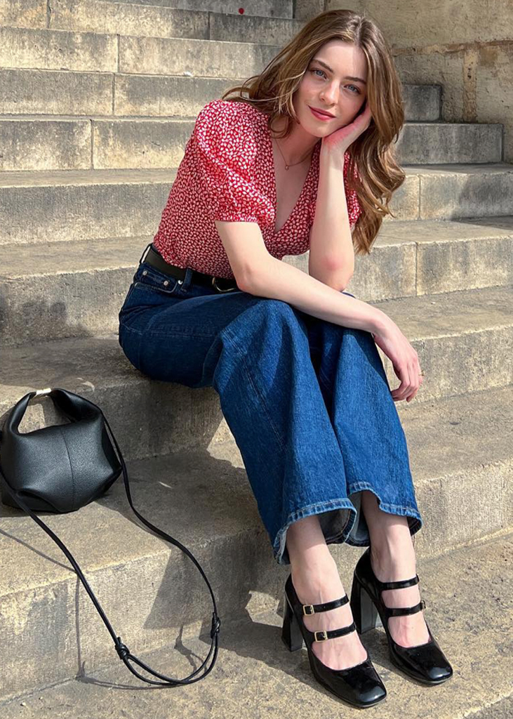 « Perfectly Preppy » Next to the ballet flat, Mary Jane shoes are the perfect shoe for the chic French look. While they are comfortable, in both low or block heel variations, they add an elegant nuance to any outfit. Their bon ton appeal is currently resonating well with consumers, as an astonishing +233% growth of the style across Instagram is indicating. Prep is back and the Mary Jane is here for it!