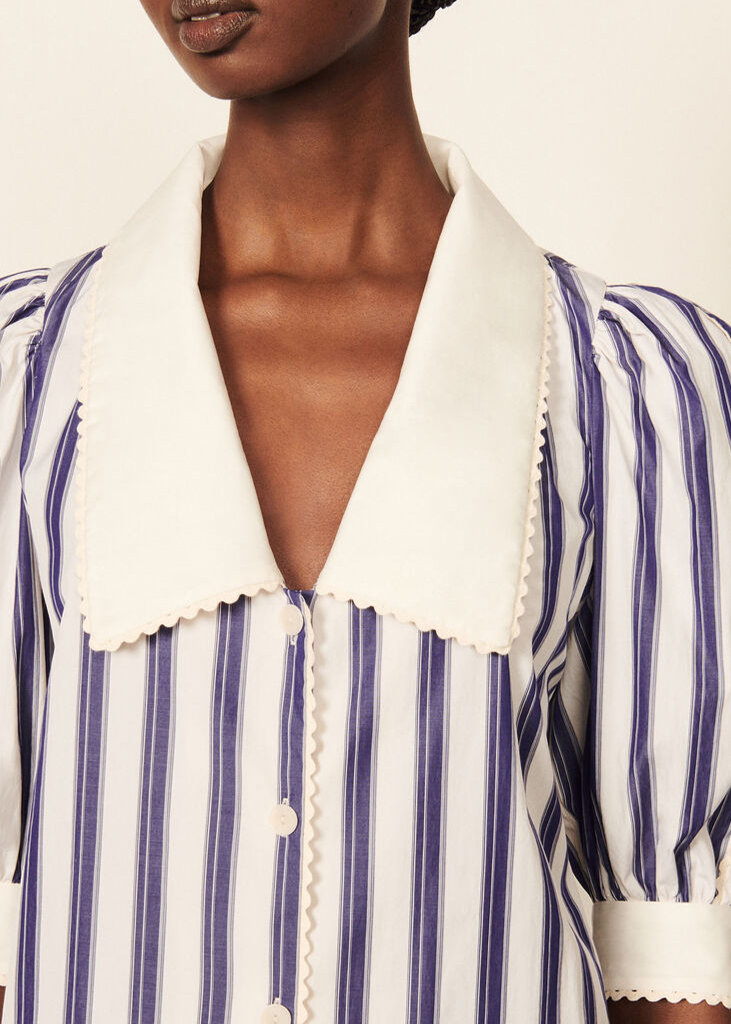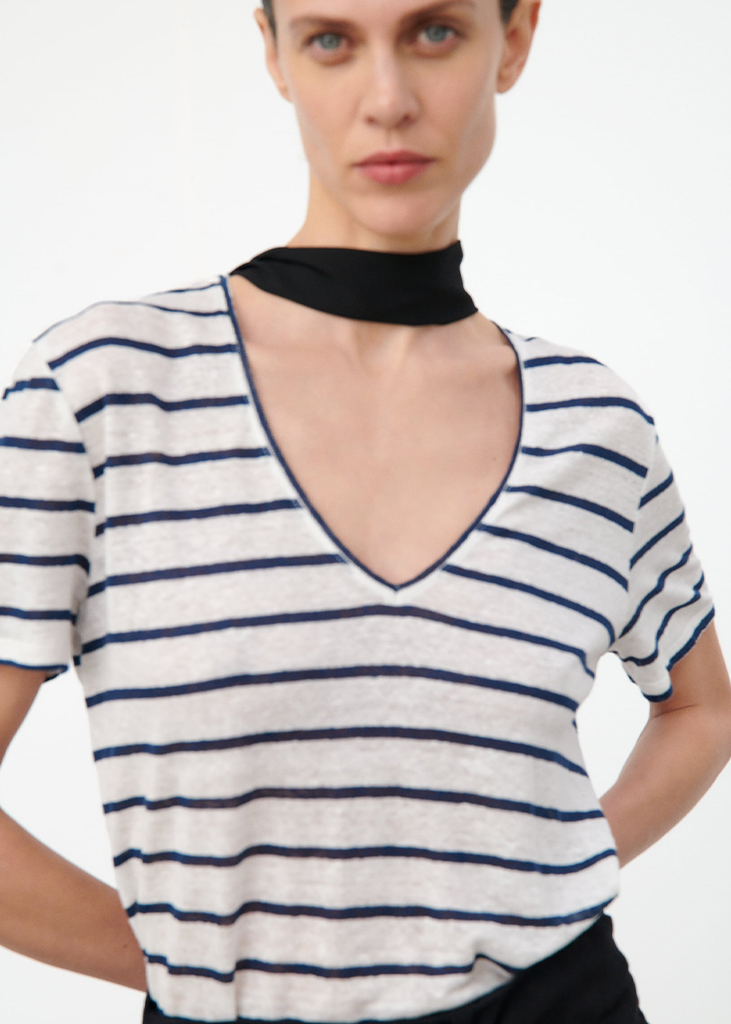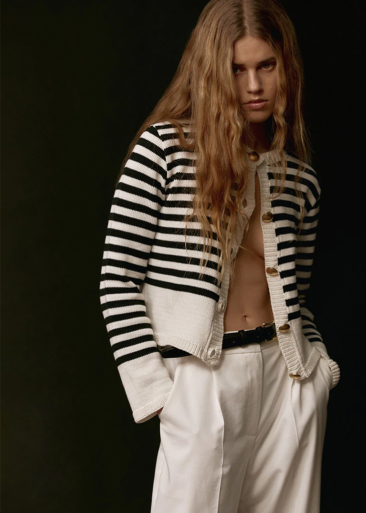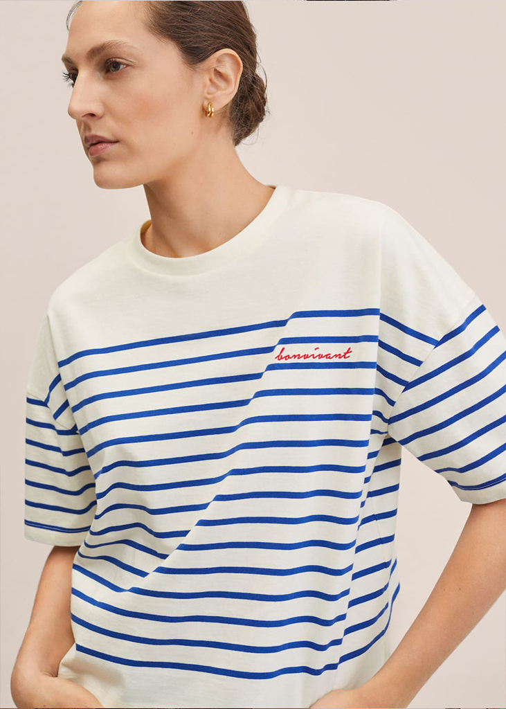 « A mariner’s dream » Blue and white horizontal stripes date back to French soldiers in 1858 and were reinterpreted by Chanel in 1913 and Jean Paul Gaultier in the 60s and 80s. As a result, the Breton stripe has become an integral element of iconic French wardrobes. Its distinctly clean look creates a modernist aesthetic that embeds a genderless and versatile character.