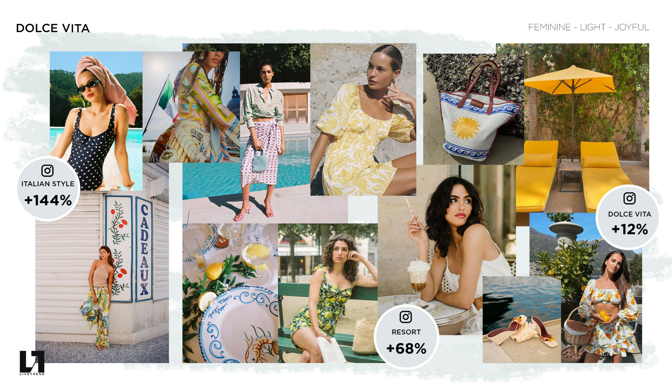 « An Ode to Life » The idea of la dolce vita, the sweet life, seems more relevant than ever in a world that is embracing the joys of life and the freedom of summer again. Sun, celebration and vacation are just around the corner. Diving into the archives of summery Italian fashion is enhancing a more vibrant femininity. Elegant styles are now dominated by a set of enchanting colors on flattering and fluid silhouettes. Inspired by traditional ceramics and juicy fruits that take us from Capri to the heart of Tuscany, refreshing prints are sending us on daydream holidays right away.