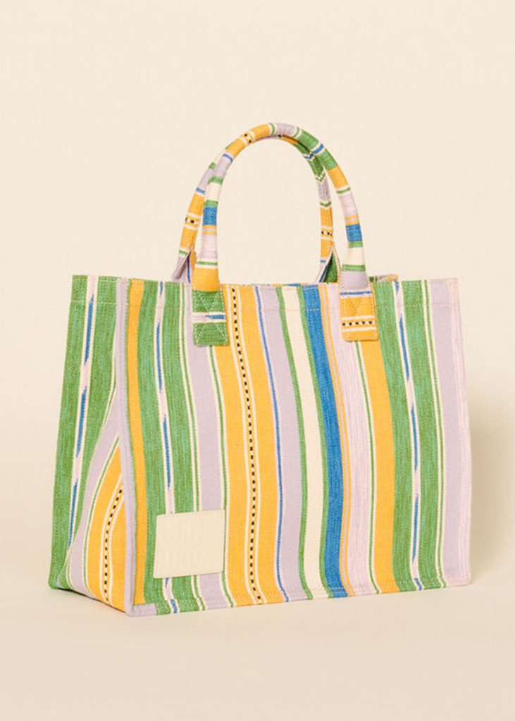 « A beach in the city » The beach tote is essential for any holiday on the seaside, yet its patterned counterpart is fashionable enough for a city trip as well. From stripes and florals, to bandana prints and ceramic designs, the patterned bag is exploring all possibilities of vacational graphics. For an all-over silhouette, matching the print of outfit and bag is especially effective in enhancing the look, as seen on the latest fashion shows.
