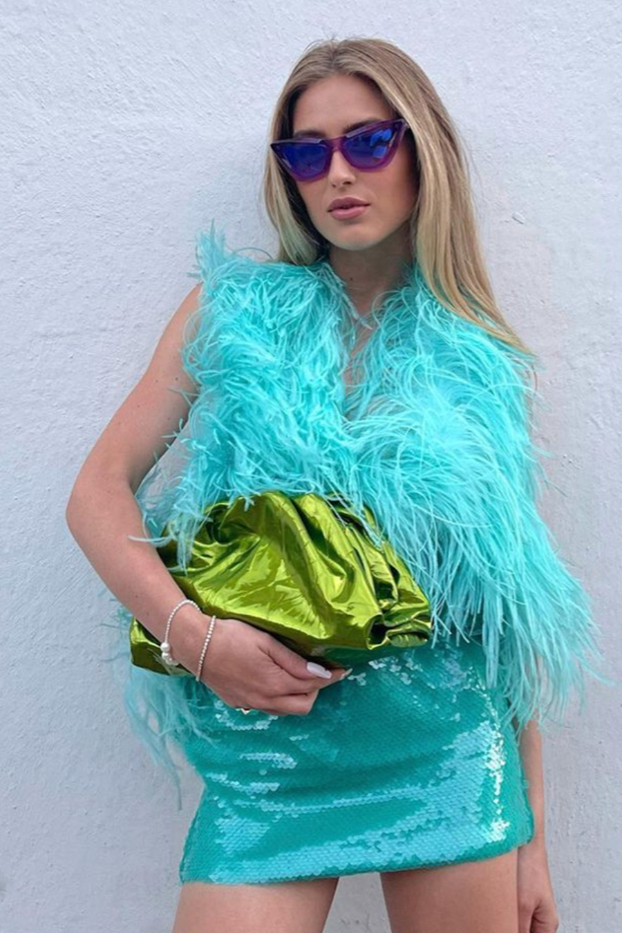 « Cooling vibes » Turquoise is a fresh and vivid color – perfect for the warmer season. Thanks to the combination of blue and green it evokes the cooling effects of the ocean. This season, turquoise feels more alluring than before. Its growing visibility on Instagram (+ 11% YoY), shows an increasing adaption of the shade among trendier customers. With a distinctly brighter hue, the color is meant to cool and rejuvenate new looks, both on and off-line.