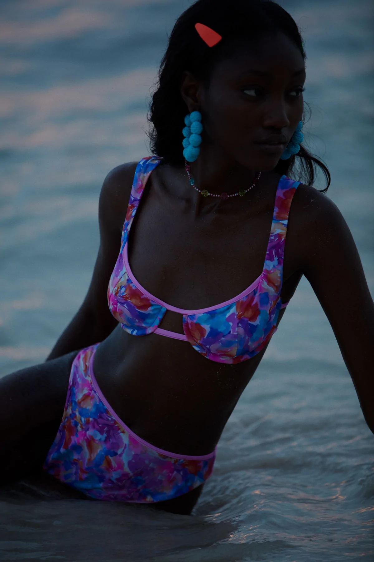 « Energized summer nights » As the sun is setting across the ocean this summer, we begin to turn up the volume to celebrate nature’s blissful sunset spectacle. Enchanted by stimulating palettes, the season’s heated summer nights turn into rhythms that pulsate between neon-lights and tropical gloom. Visuals blur into a symphony of colors to create a new set of tropical prints for a vibrant phantasy of the next holiday escape.