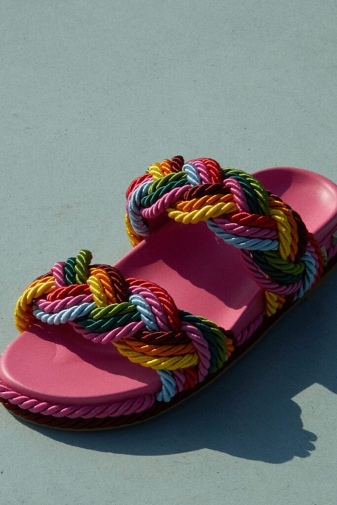 « Charming Craft » For a mindful and creative look, footwear explores the potential of artisanal and craft. Slides with details, such as tassels, braids or fringes are resonating a cultural and traditional message. The fashionable look remains versatile due to the balance of comfort and chic, which appropriates the slide for various occasions: from the beach, into the city and even ready for the evening.