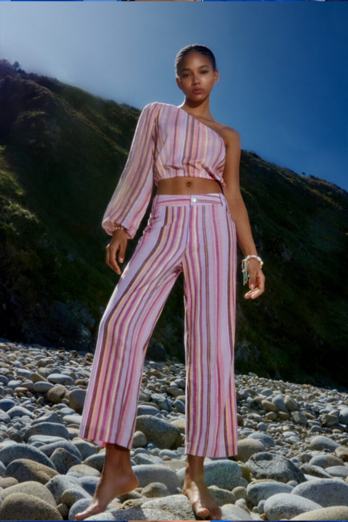 « Blue Lagoon » The dream of blue lagoons, unknown islands and remote beaches is balancing desires of exploration and serenity. For the summer, this trend recalls an accessible paradise that combines soulful exoticism and the conscious allure of craft. Summer essentials are reinterpreted with enchanting colors and capture a joyful yet wild atmosphere. Fluid silhouettes and hand-made details are essential for those new bohemian styles for an elevated island look.