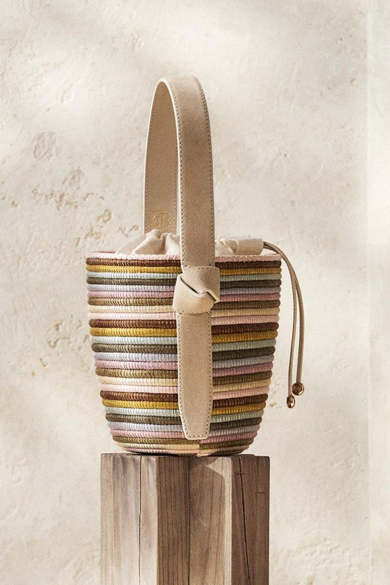 « Stylish Heritage» The carryall bucket bag has long been revered for its functional and fashionable appeal. This season, designs look at the classic silhouette with an eye for heritage and craft. Carefully mixing leather with raffia is integral for fashionable hybrids that are adding some timeless essentials items to modern wardrobes now.