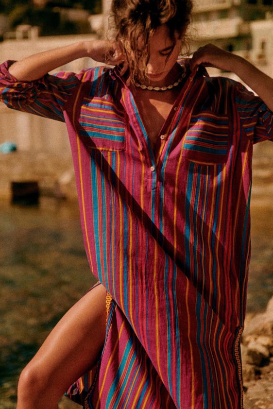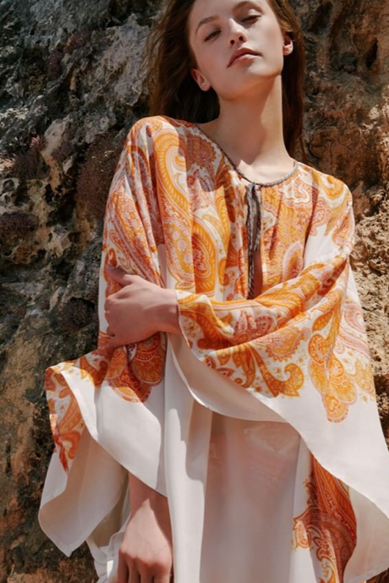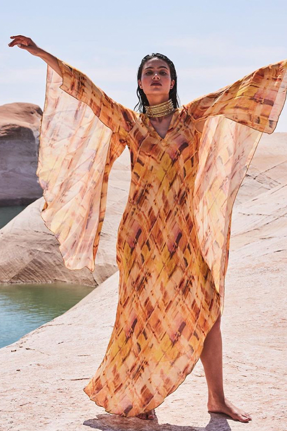 « Carefree Elegance » Originally popularized by the Ottomans of Turkey, and celebrated in Hollywood within the ’70s, the kaftan is a comeback! Drawing inspiration from age-old sensibilities, its clean slihouette adapts to the crisp look of a contemporary look. From sandy promenades and city trips to poolside chills, the kaftan is screaming vacation like no other.