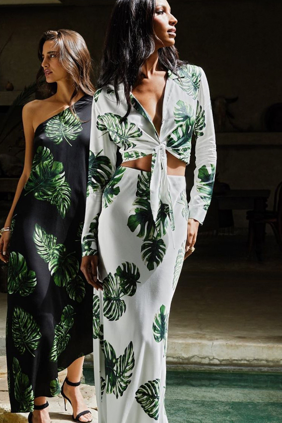 « Botanic Chic » Palm trees and exotic leaves are inspiring prints for this theme. The tropic feel and the connectedness of humans and plants are alluring with a sense for living, growing and caring. While those tropical plants appeal to a desire for travel, they also resonate with a market that is appreciating plants and aims for their protection on larger and larger scales. The trend is a fresh upgrade for common florals and takes us further away now.