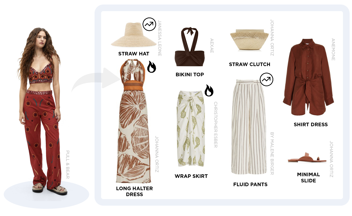 This trend is guiding us towards design that connects mythological appeals of ancient worlds and traditions with a new sense for beauty. With grounding and connection to the planet, a sedimental palette that alludes to our senses gives live to a story of alchemy and modern witchcraft while keeping a sophisticated summer look. A narrative that underlines the dream of vacation with a more meaningful and connected appeal.