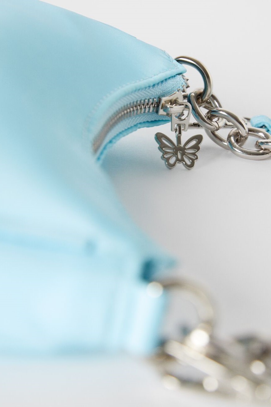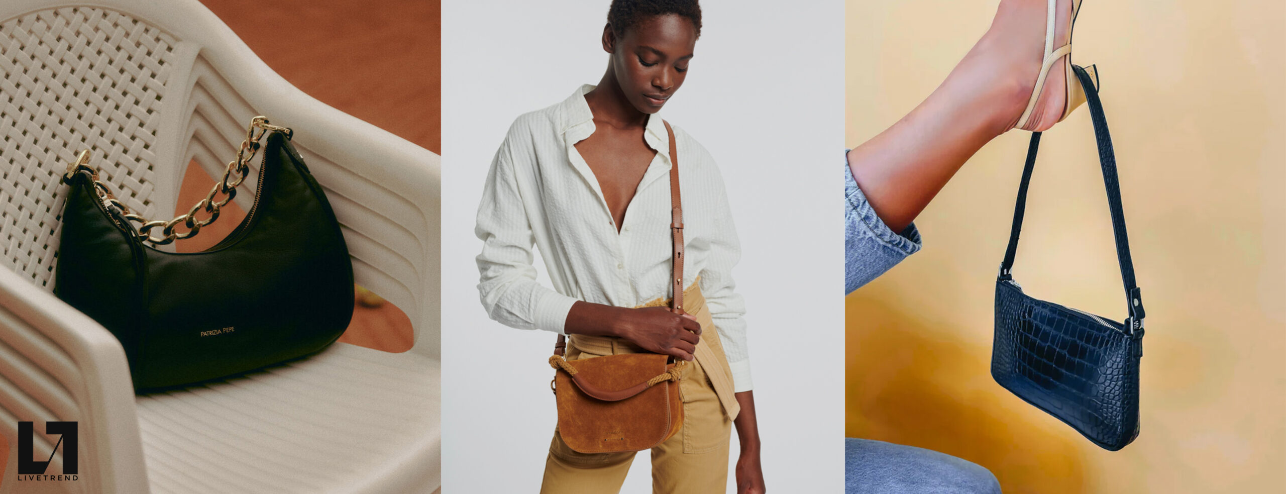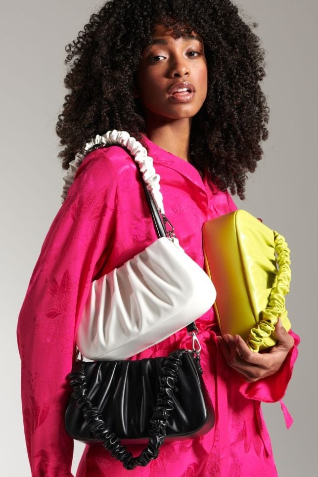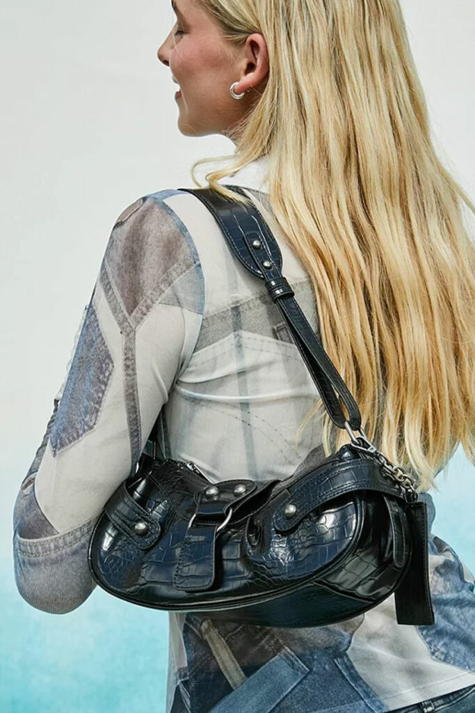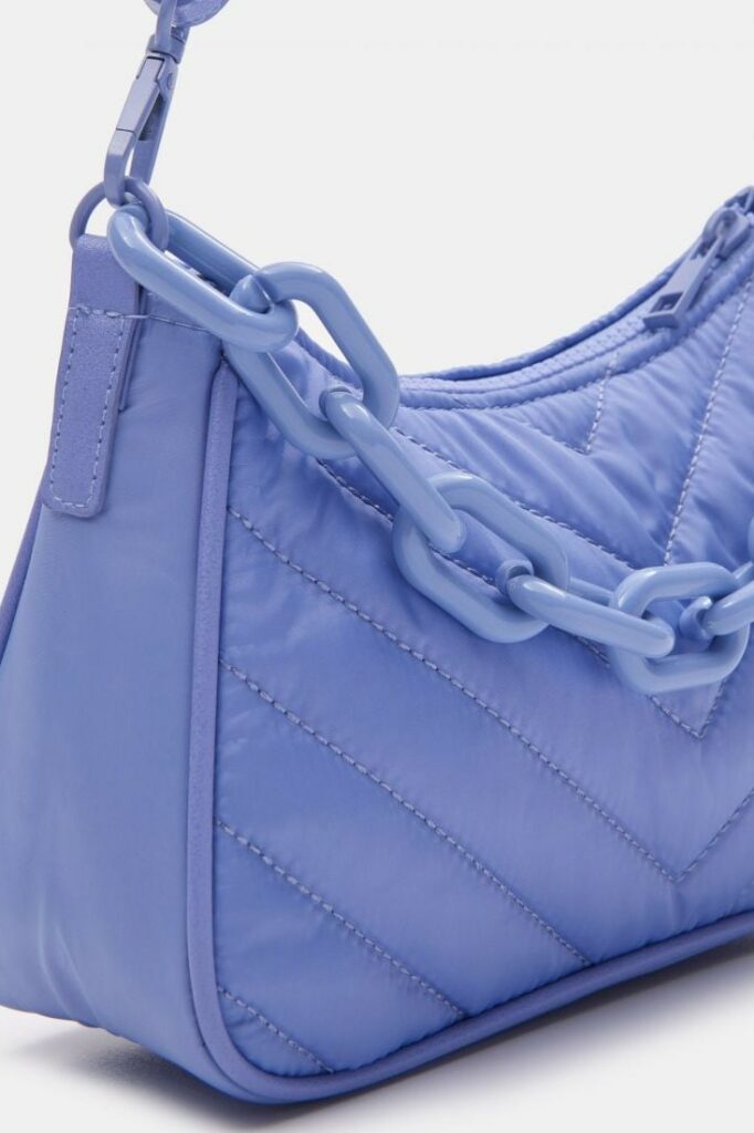 More Iconic than ever. Bags are currently focusing on shoulder styles, which take us back to the early 2000s and provide us with a soothing sense of memorabilia. As mini bags are fading away, still delicate, yet far more practical bag silhouettes arouse interests now. When looking at consumers, search rates for hobo styles of +400% as opposed to the year before this taste for iconic shoulder bags is manifested strongly. Cross-body shapes remain relevant with +40% of yearly growth in searches as they provide a classic and practical style that appeals to more timeless wardrobes and promises lasting properties. Sling bags are also experiencing a soft revival, growing by +60% in searches, focusing on relevant circular half-moon shapes now and feeling more stylized than ever before. Several new details are adding joy to the category: from crunches to new straps and buckles shoulder bags are looking for reinvention to stay in focus. While the monogram remains relevant to consumers and causing solid +150% increases in searches, performance nylons, quilting and terrycloth are strong textile options as well. Take a look at the market’s latest directions: