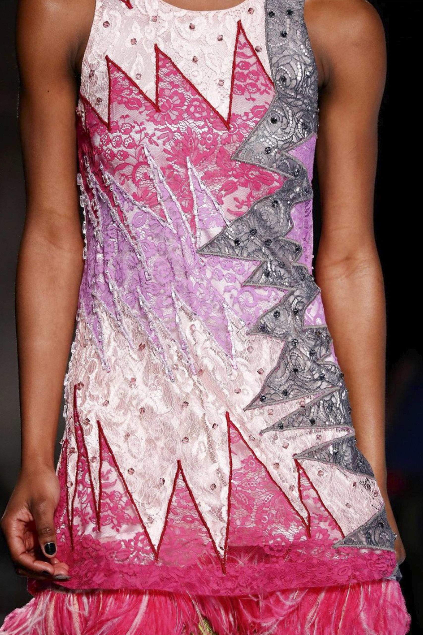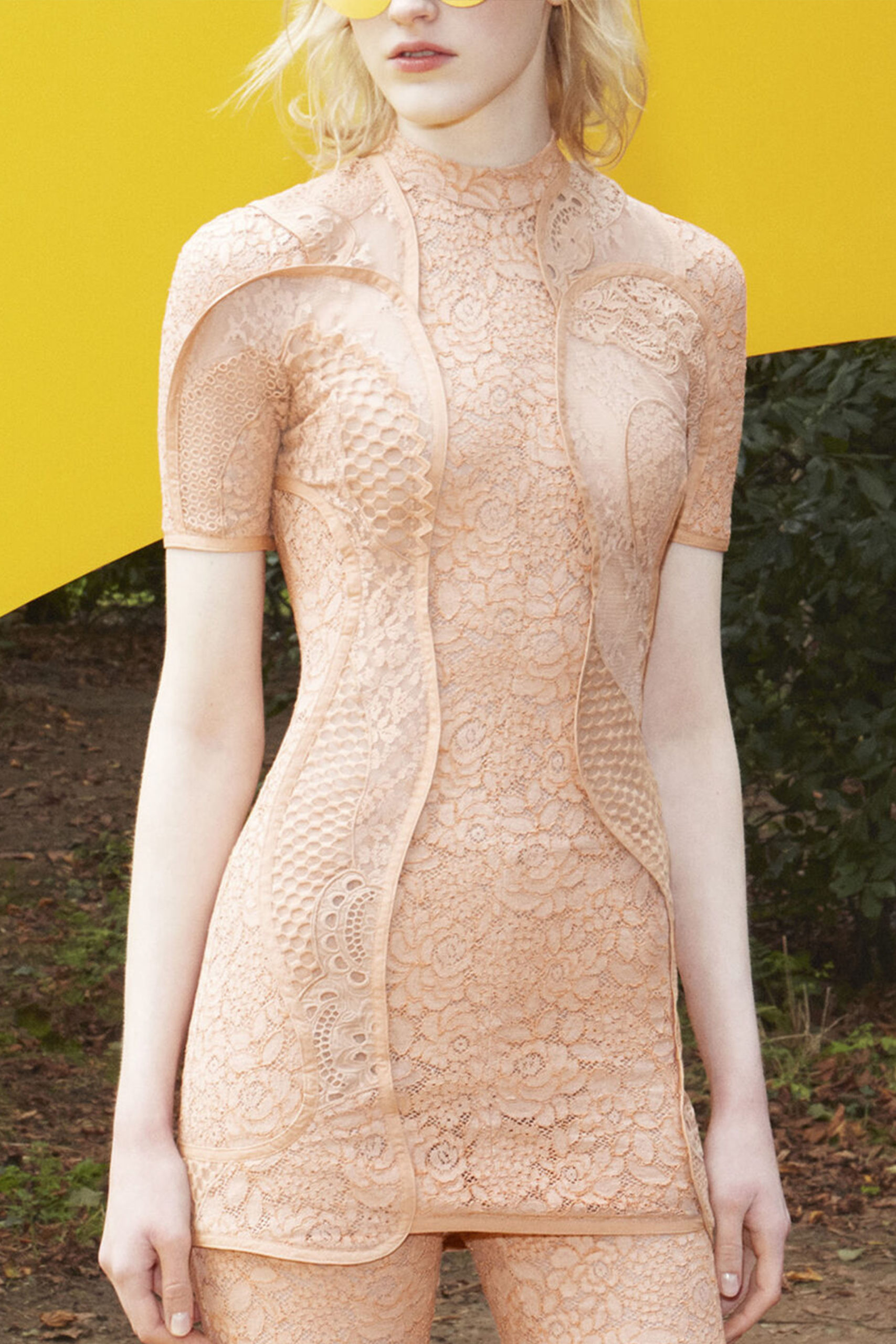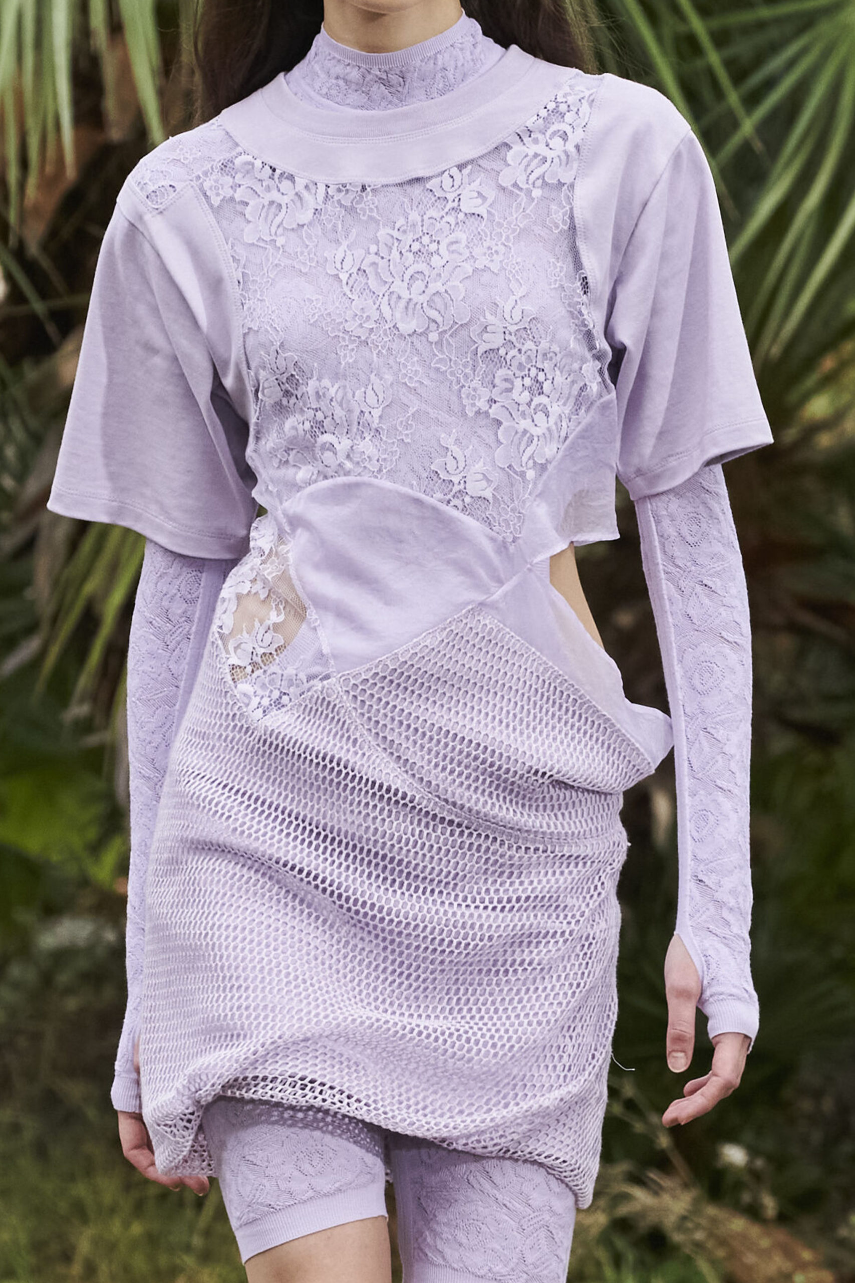 The lace-dress is gaining momentum again, however, with a twist. Patch-working-lace continues the big trend for patchwork and upcycling of SS21. Interpretations can range from more sportive and causal styles, as seen in Kenzo and Stella McCartney, to romantic interpretations, as seen at Koché and Sir. The patchwork approach proposes a great possibility to repurpose deadstock material or upcycle unsold garment stocks.