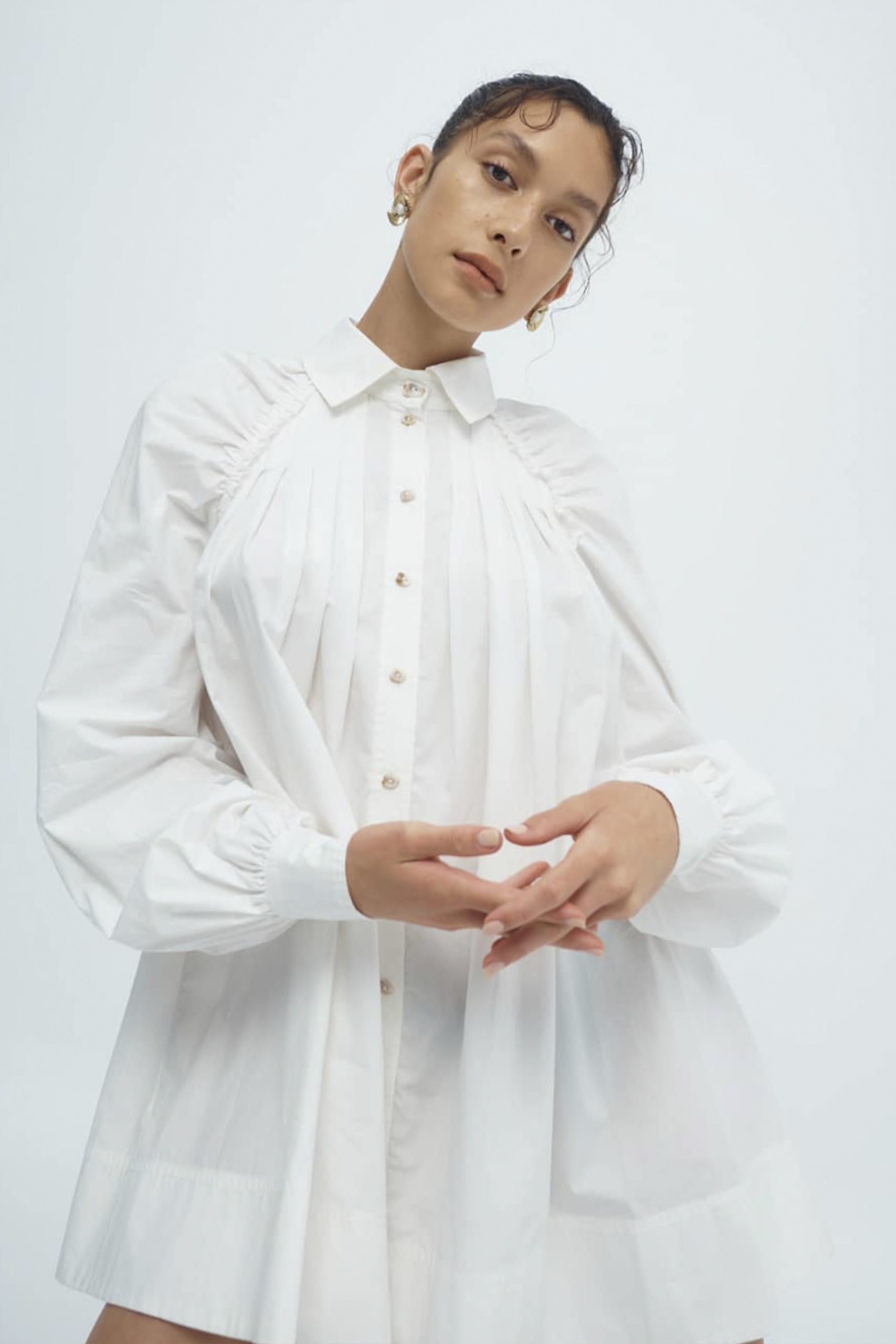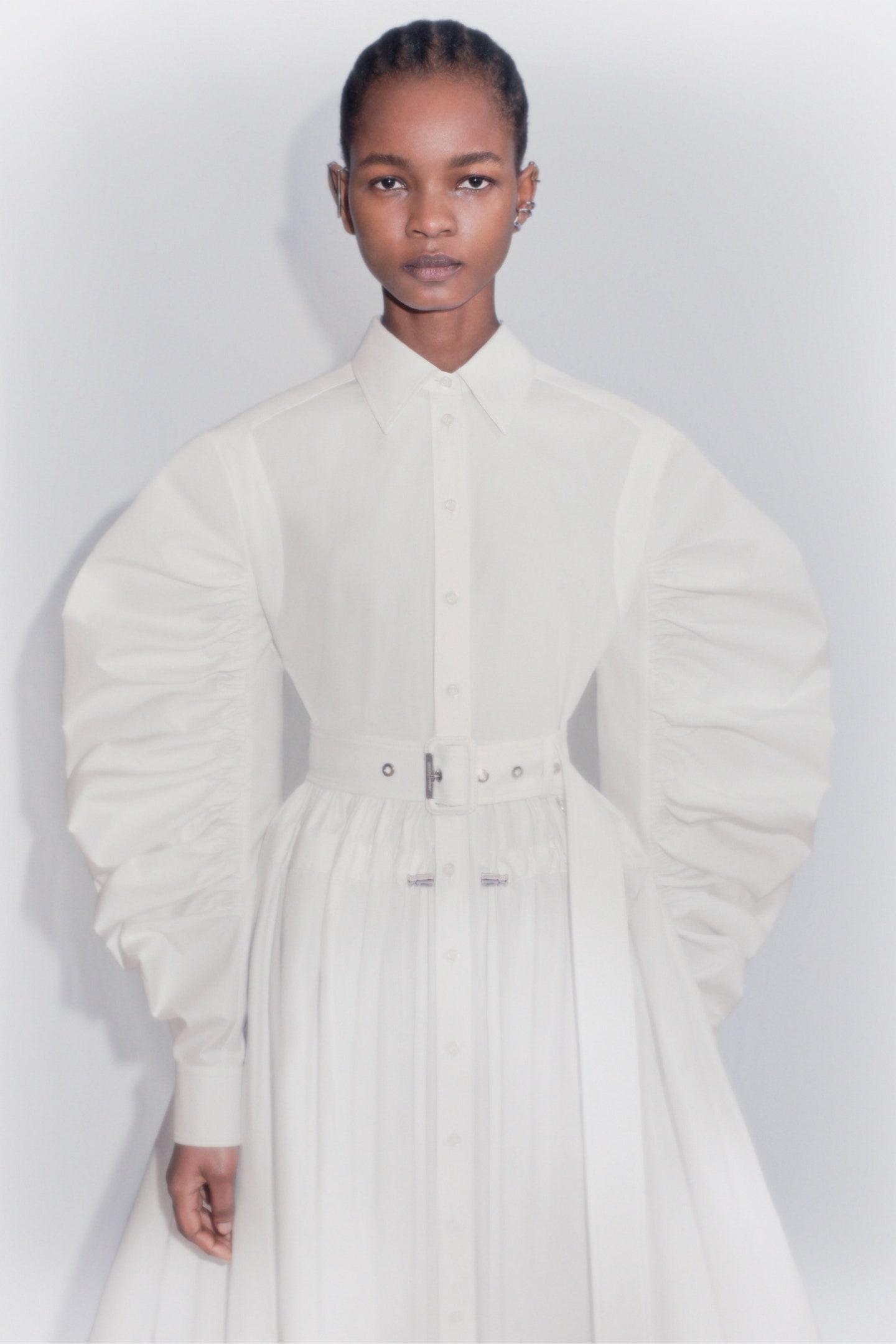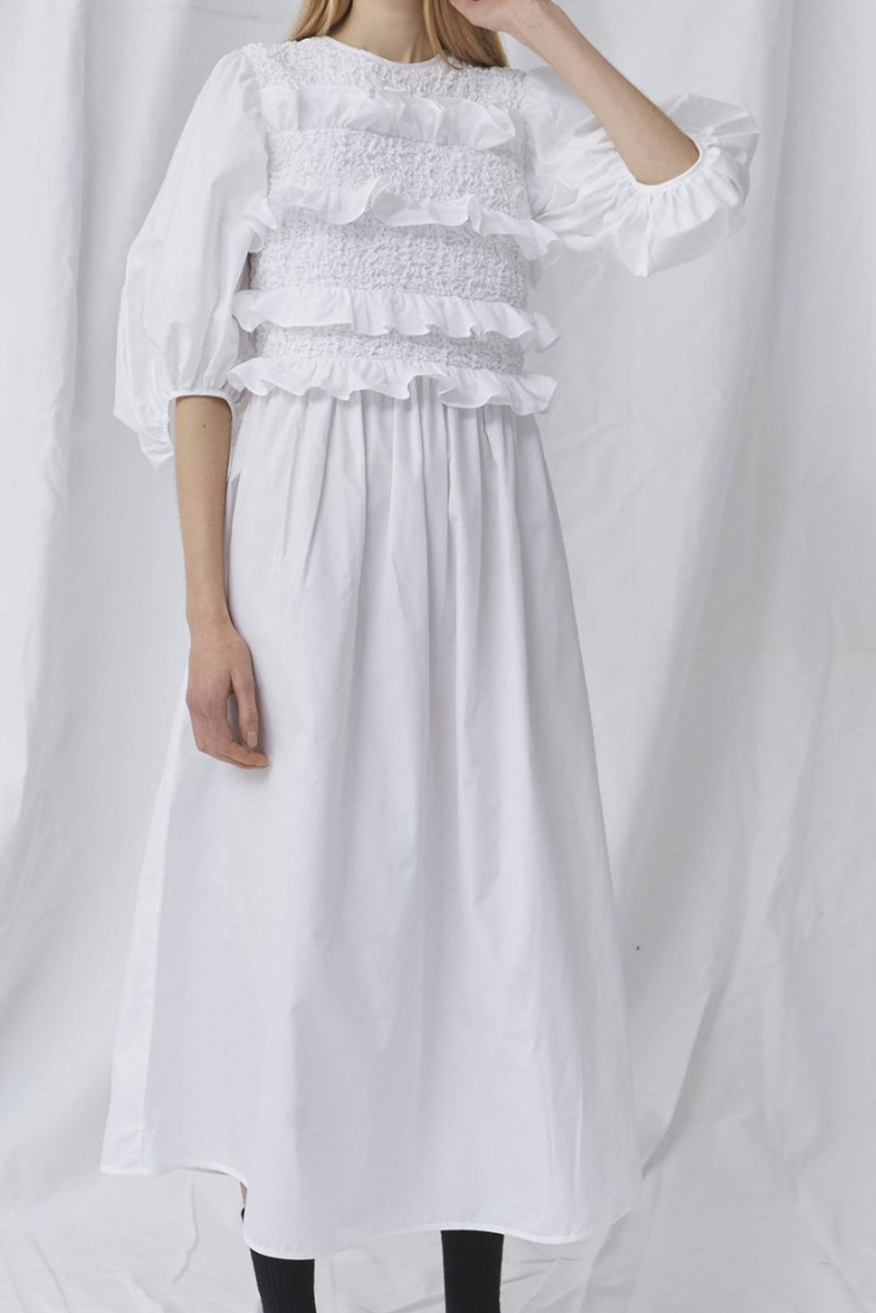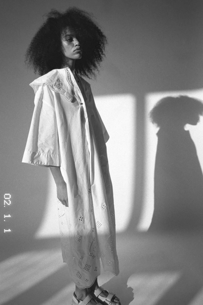 For SS22 the Shirt-Dress is given an update. Inspired by the cottage core trend, shirts are enhanced with a modest, buttoned-up feel. To support this pure look, white is the color of choice for this piece. Integrate the trend for enlarged collars or puffy sleeves for “over the keyboard” dressing effects and give your staple a contemporary twist. Ganni and MashMash are already integrating statement collars, while Aje puts a focus on the sleeves.