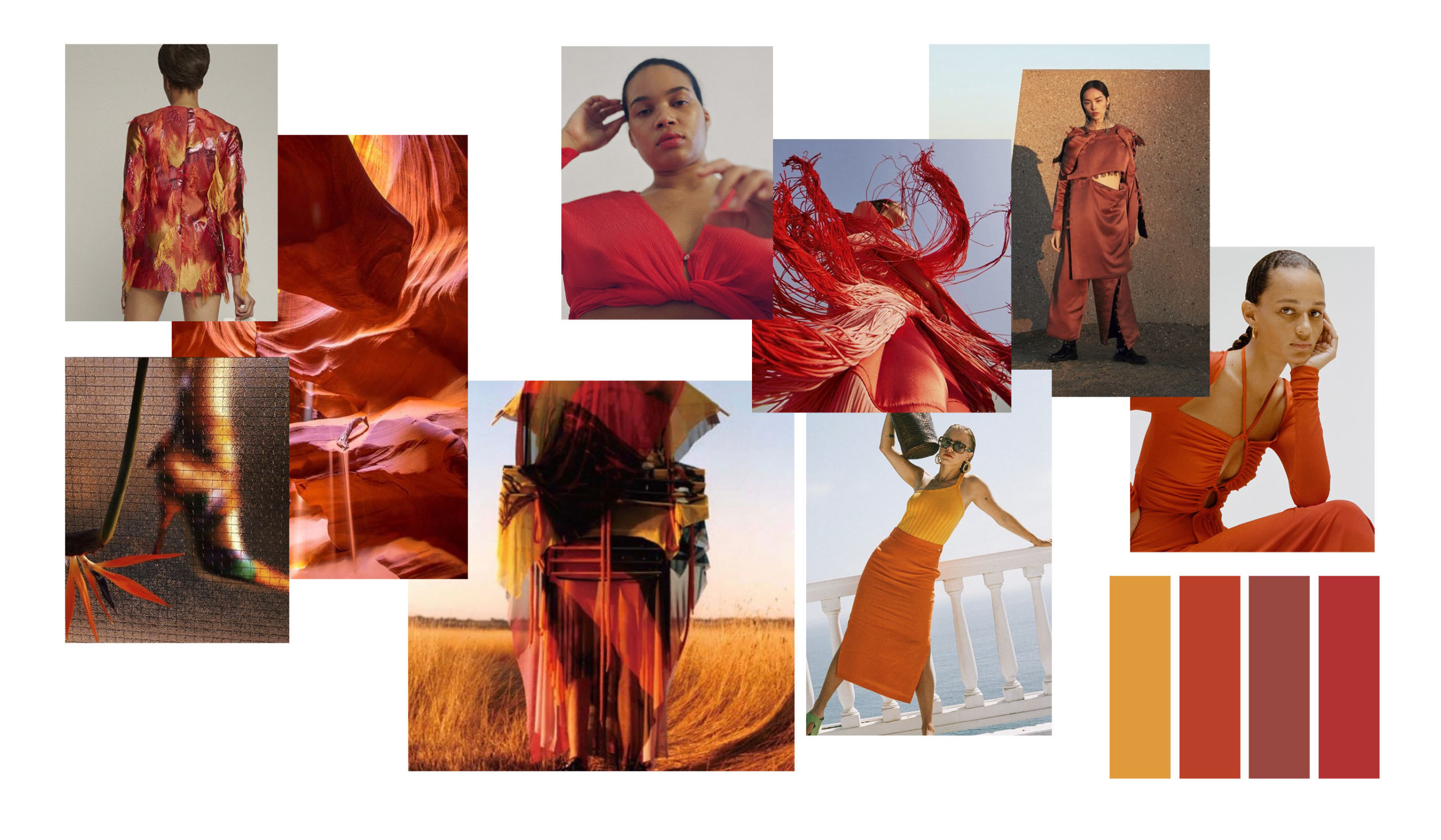 The evolution of bold colors focuses on warm and summery red and orange, a new mysterious palette of greens and a bold yet subtle story of purple and pink berry tones. Take a looks at the colors you should introduce in your palettes to bring newness while keeping a familiar and comforting spirit.