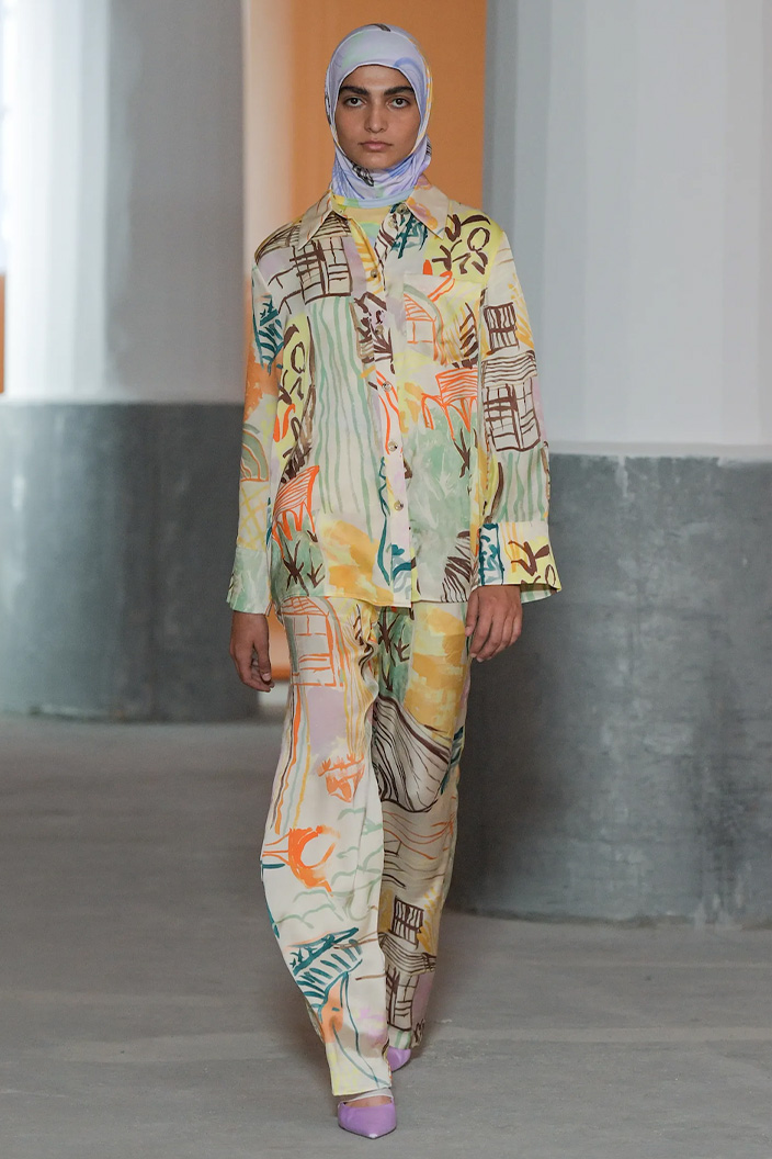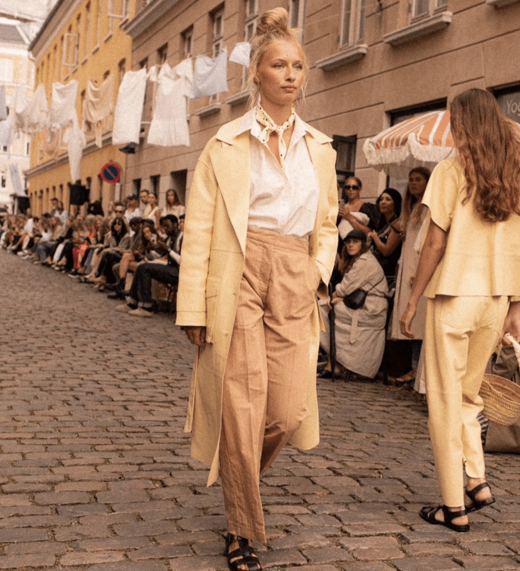 The Copenhagen shows might not be part of the main fashion capitals, yet their high level of creativity always makes them a key date on fashion agenda’s. This year, as the first IRL season after Covid, the catwalks have been more vibrant than ever. Next to the hyper-fresh and freeing collections of known and up-and-coming labels, the return of the city’s street style icons marked a return of known fashion week excitements. The events’ intense focus on sustainability translated into an array of outdoor events and seemed more appropriate than ever. On the runways, we could see arrays of gorgeous monochrome neutrals, a myriad of blazers and trench coats which proof how minimalism can still make waves. However, maximalist color schemes with playful hues seem to have stood the test of the zeitgeist and infuse the runways for SS22 with orange and juicy pastels.