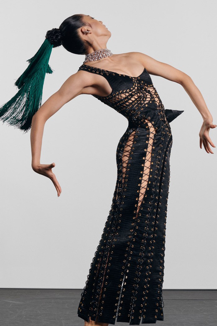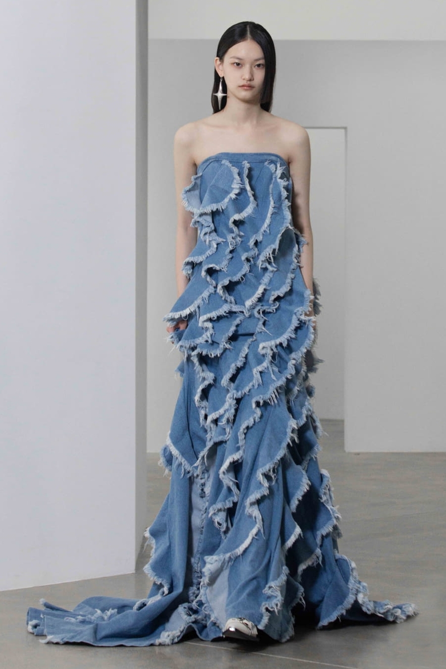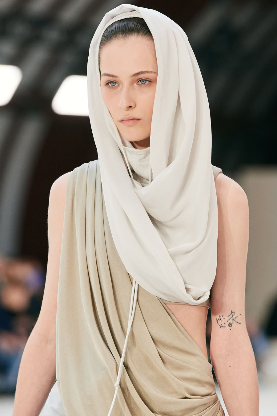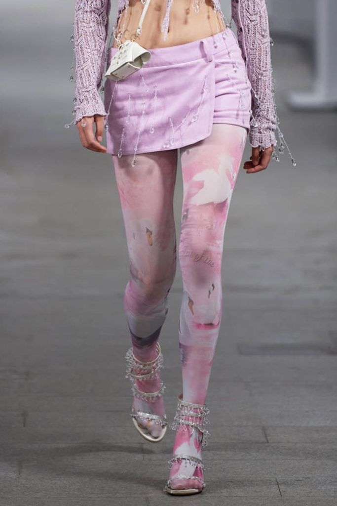 There are some styles that are prevailing from the previous seasons, such as fringes and drapes. For SS22, however, fringes are updated with an extra-long or crafted look and joyful palettes. Embellishments are still very relevant, yet this season shore-inspired treasures like shells and stones, have shown to be a surprising favorite for a seductive mermaid note. For fresh influences, floss lacing and spaghetti straps have been interpreted by designers, as they have been a major favorite across Social Media this summer season. The slightly rebellious element of breaking out is accompanied by a taste for raw edges and hemlines, suiting contemporary punk and deconstruction themes.