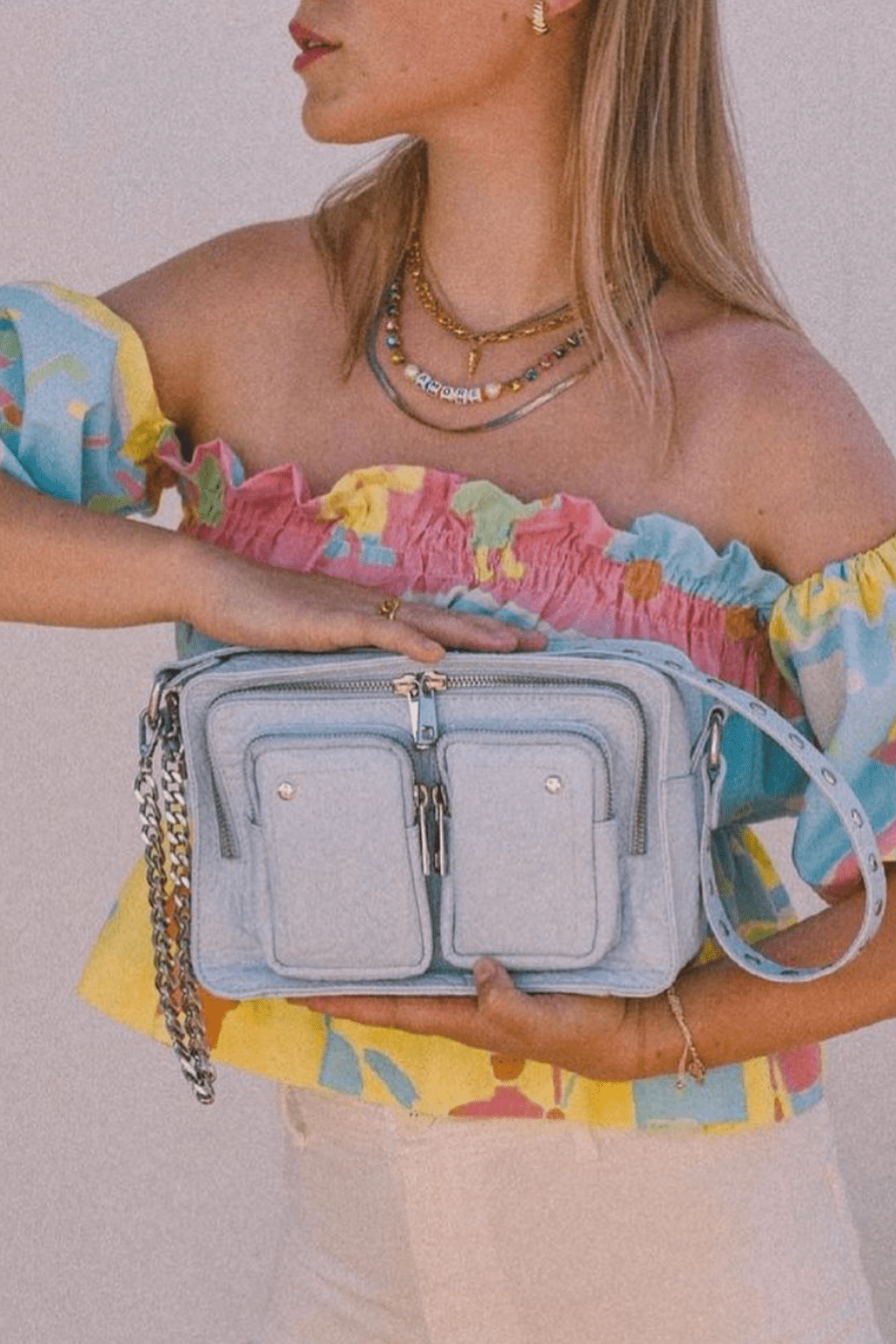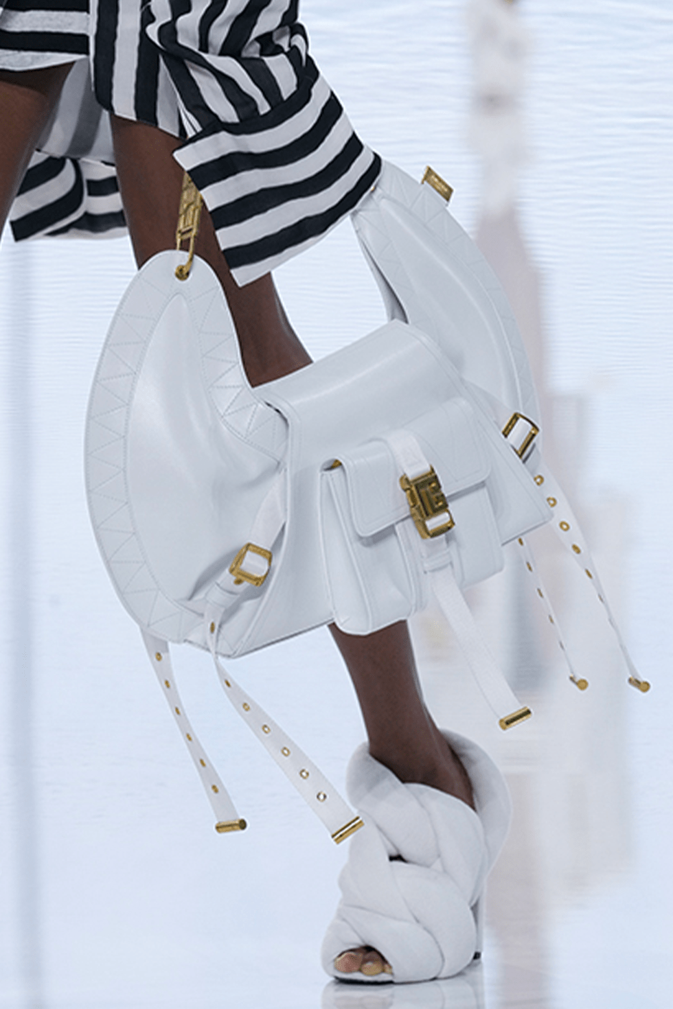 As seen above, the bag category is moving away from the pouchy and soft volume styles of previous seasons to more polished and fanciful design. A focus on angular and modular design, twisted with an idea of bling, steps on top of the trend radar for SS23. From edgy to established designers, the new must-haves are shoulder bags, moon and trapeze designs as well as big totes and the continuous must-have mini. Especially in a recessionary period, such mini accessories at entry price levels seem key to attract clients. Try to create keepsake pieces with statement-appeal or timeless designs to attract your clients and propose better value on investment.