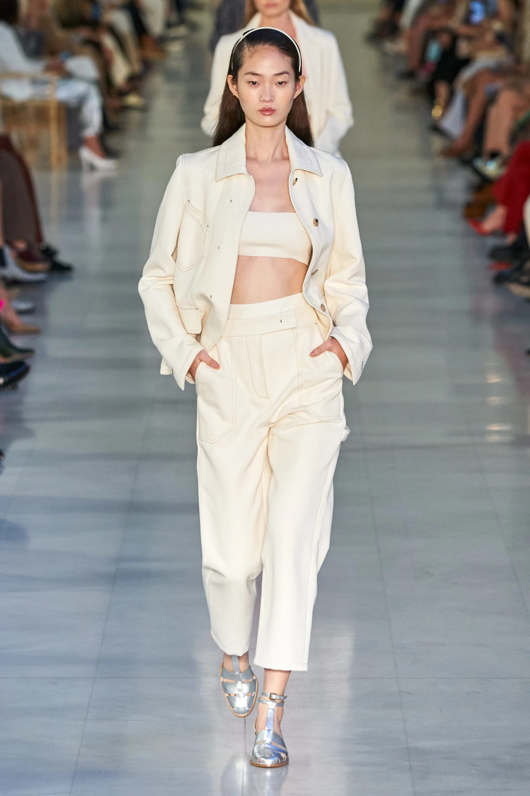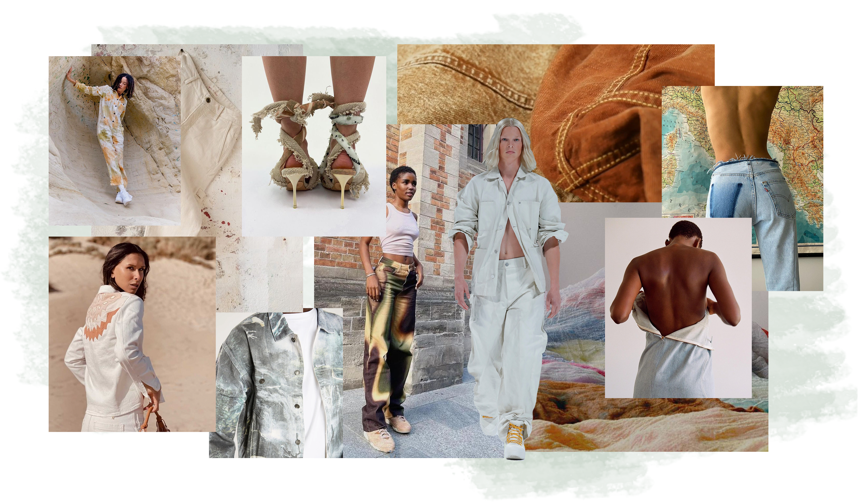 The pandemic has manifested a turning point regarding the interconnectivity of our world and established a more inclusive, mindful and considerate view towards a shared sense of humanity. For SS23 the trend Mindful Milestone offers a direction for the denim category that depicts this unified feeling to improve us and our environment in a prosperous manner. This concept is as much about emotion as it is about the tactility that is embedded in denim as a complex and resistant fabric. Through the soft notion of the trend, the next summer season will see a shift towards peachy yet sustainable handles that translate ease, comfort and the protectiveness of Mother Nature. Related designs seem like a distant memory, a dream of harmony, to inspire the future. For product finishings this means subtle pigments, seemingly washed away by the current or faded out by the sun, as well as discrete imprints of nature’s surfaces, including faux marblings and landscapes. At the same time, shell and cream colors add to the tranquility and reflect the purity that we are facing when building an improved future. Similarly, the spiritual and free-spirit celebration of the planet surfaces bohemian inspirations, that are depicted within floral and paisley patchworks, embroideries or denims. A warming scale of color hues adds to the positive and enchanting spirit of this trend and presents a diverse set of must-haves that balances the familiar love of Mother Earth with a rustic approach to protecting our environment from fibre to finish.