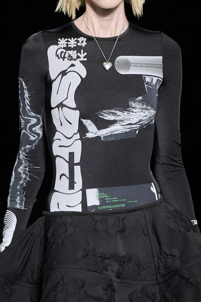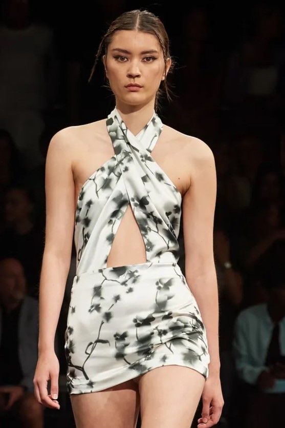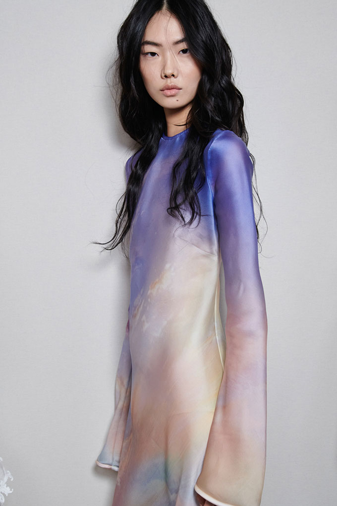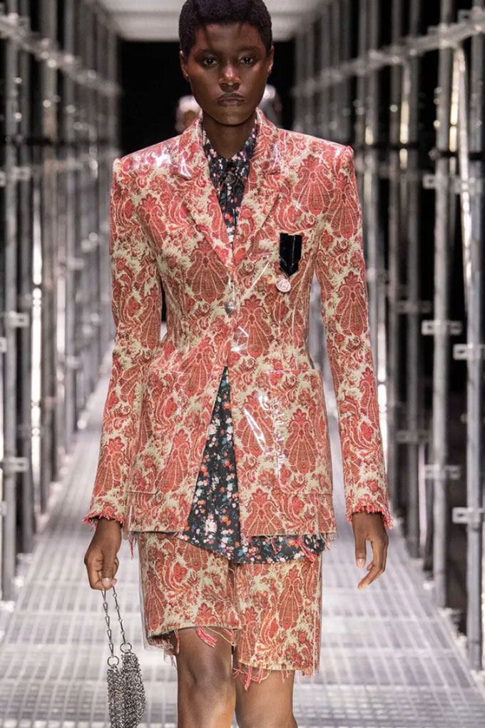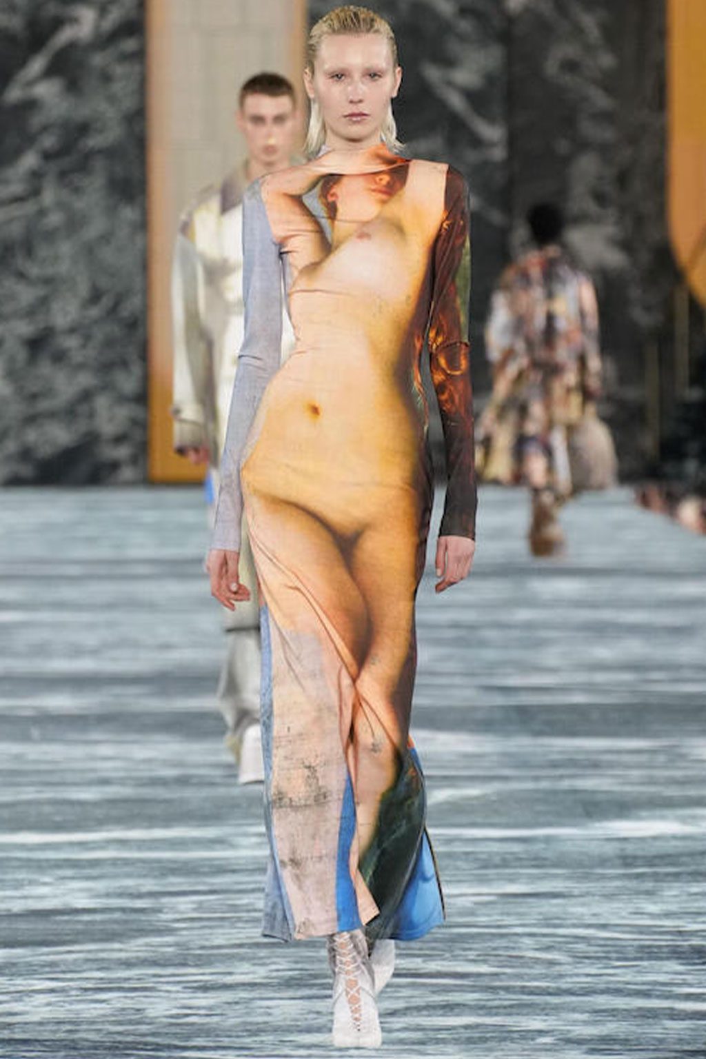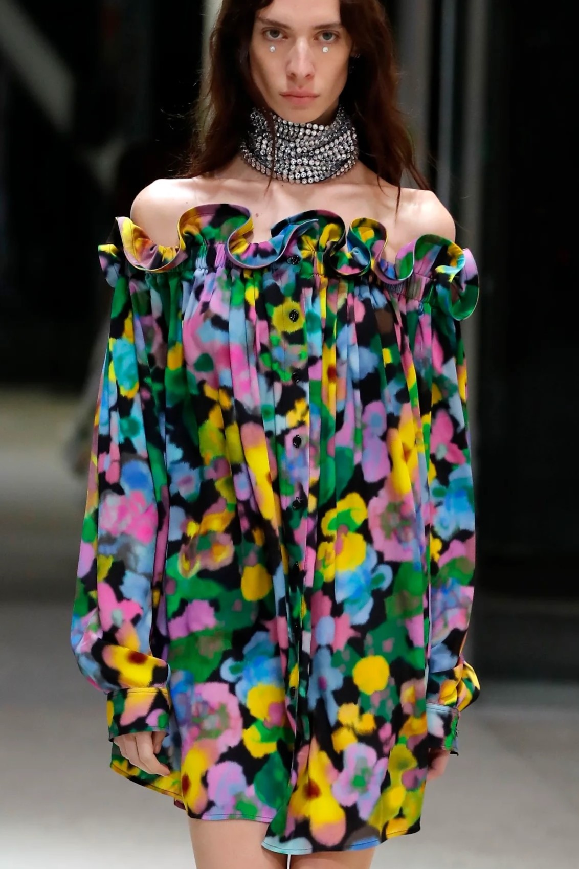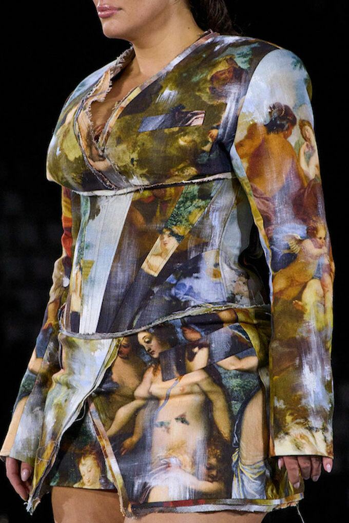 Visual Vacation. SS23 shows haven’t shown a season of prints, with patterns decreasing -28% to last summer. Diving into the top prints, the SS23 is taking us on a journey to discover other worlds and dares us to uncover the hidden beauty of places near and far. For SS23, florals as a stable print, can take glitch-like interpretations take almost-tacky placed bouquets or ditsy handkerchief-inspired motifs. Another summer classic proposes tropical abundance via more heated and juicy tropicals that take us to an eccentric Miami night. For a gloomy sundowner moment, this season’s beachy prints explore intense colors on darker grounds. Other all-over prints see snakeskin return as an animal favorite and update the zebra look of previous seasons. While the recent trend of marbled visuals, is renewed by futuristic Oceana patterns or soft sedimental gradations and dyes. is the evolution. New patterns combine the hidden universe of our deep sea with the augmented aura of digital worlds. As a favored edgy print, a body baring-look is developing on a larger scale for SS23. After this print showed-up in early signals on last FW22 shows, the bodylicious visual is now trending from statue-inspired versions at Balmain to clever X-Ray effects. The growth of this alluring print really reflects our desire to get somewhat underneath, to celebrate the female body and also to self-express. Another highlight, as a response to the ongoing war, are the featured doves as a message of peace and community care.