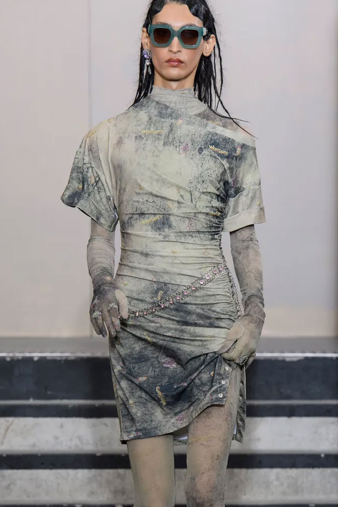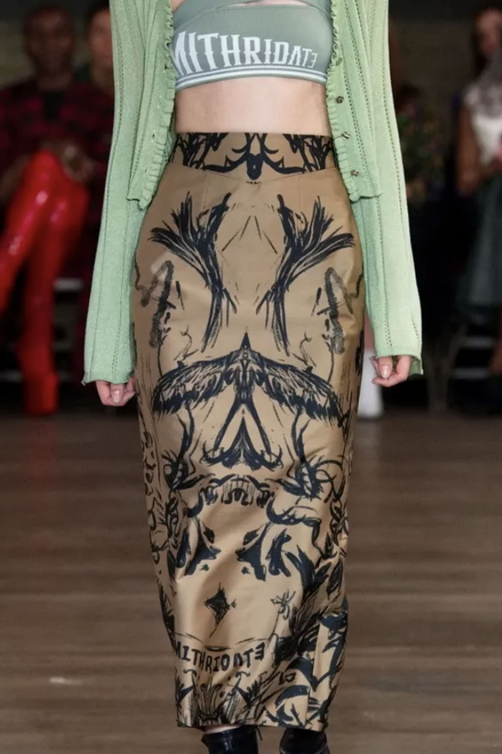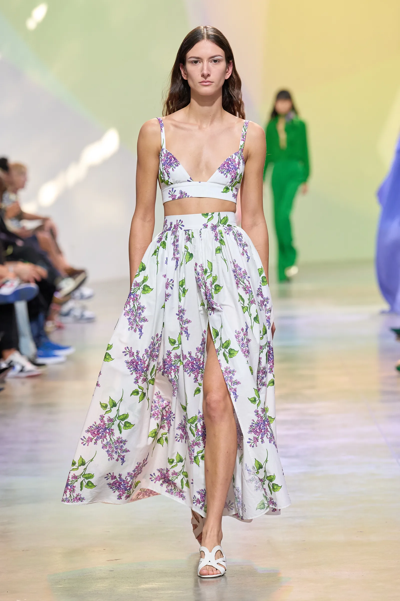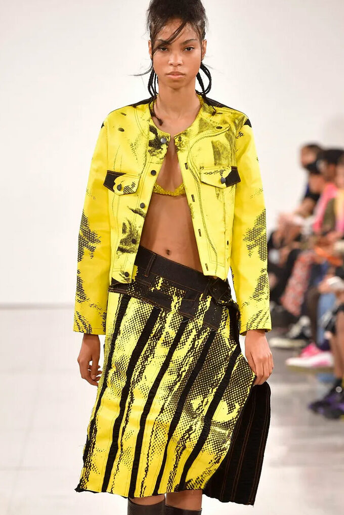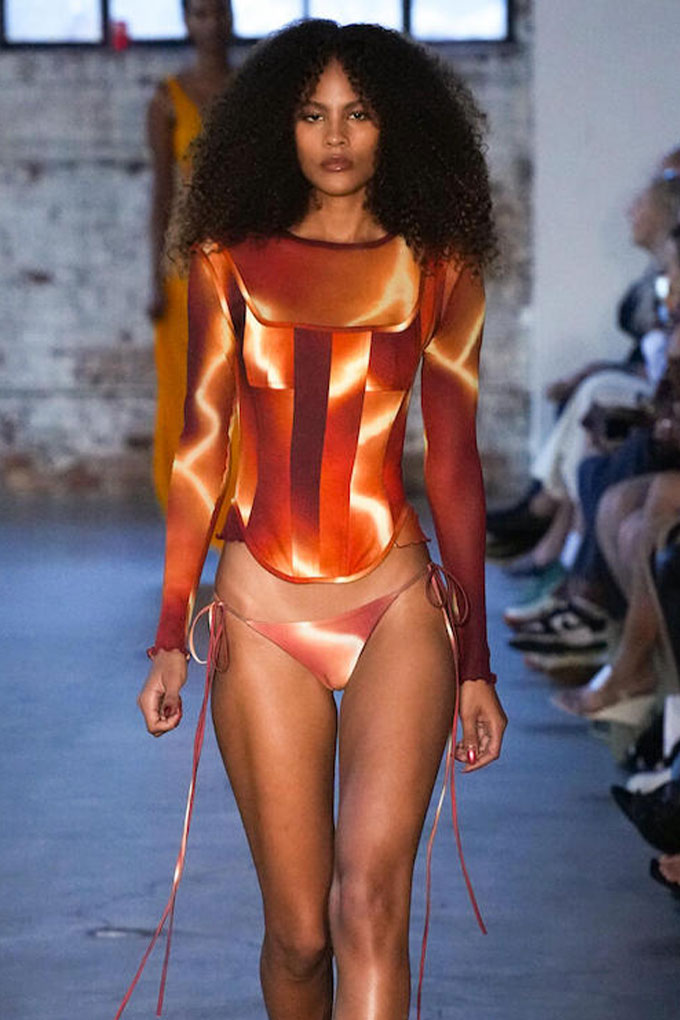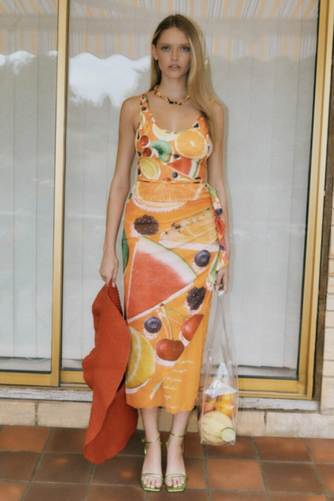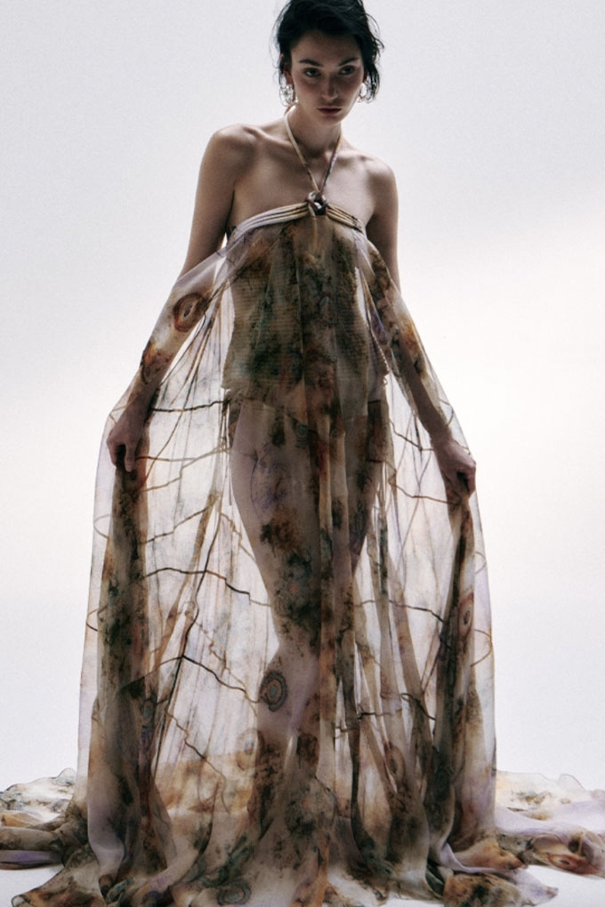 Visual Vacation. SS23 shows haven’t shown a season of prints, with patterns decreasing -28% to last summer. Diving into the top prints, the SS23 is taking us on a journey to discover other worlds and dares us to uncover the hidden beauty of places near and far. For SS23, florals as a stable print, can take glitch-like interpretations take almost-tacky placed bouquets or ditsy handkerchief-inspired motifs. Another summer classic proposes tropical abundance via more heated and juicy tropicals that take us to an eccentric Miami night. For a gloomy sundowner moment, this season’s beachy prints explore intense colors on darker grounds. Other all-over prints see snakeskin return as an animal favorite and update the zebra look of previous seasons. While the recent trend of marbled visuals, is renewed by futuristic Oceana patterns or soft sedimental gradations and dyes. is the evolution. New patterns combine the hidden universe of our deep sea with the augmented aura of digital worlds. As a favored edgy print, a body baring-look is developing on a larger scale for SS23. After this print showed-up in early signals on last FW22 shows, the bodylicious visual is now trending from statue-inspired versions at Balmain to clever X-Ray effects. The growth of this alluring print really reflects our desire to get somewhat underneath, to celebrate the female body and also to self-express. Another highlight, as a response to the ongoing war, are the featured doves as a message of peace and community care.