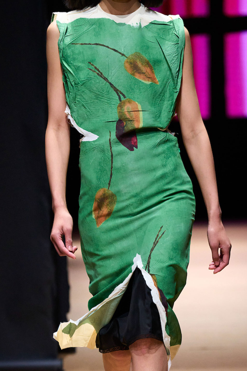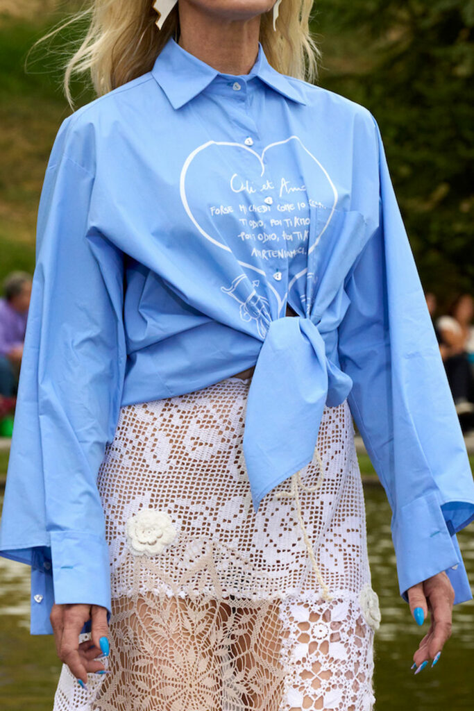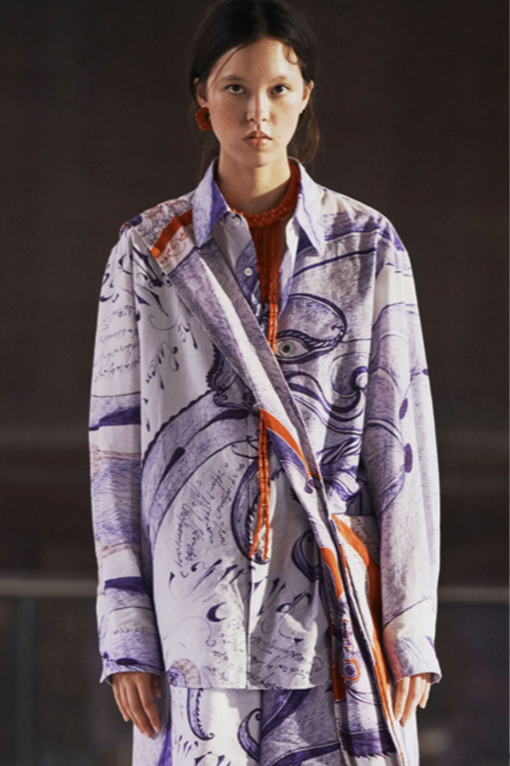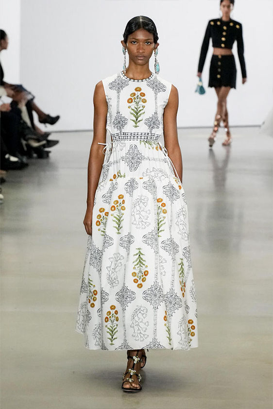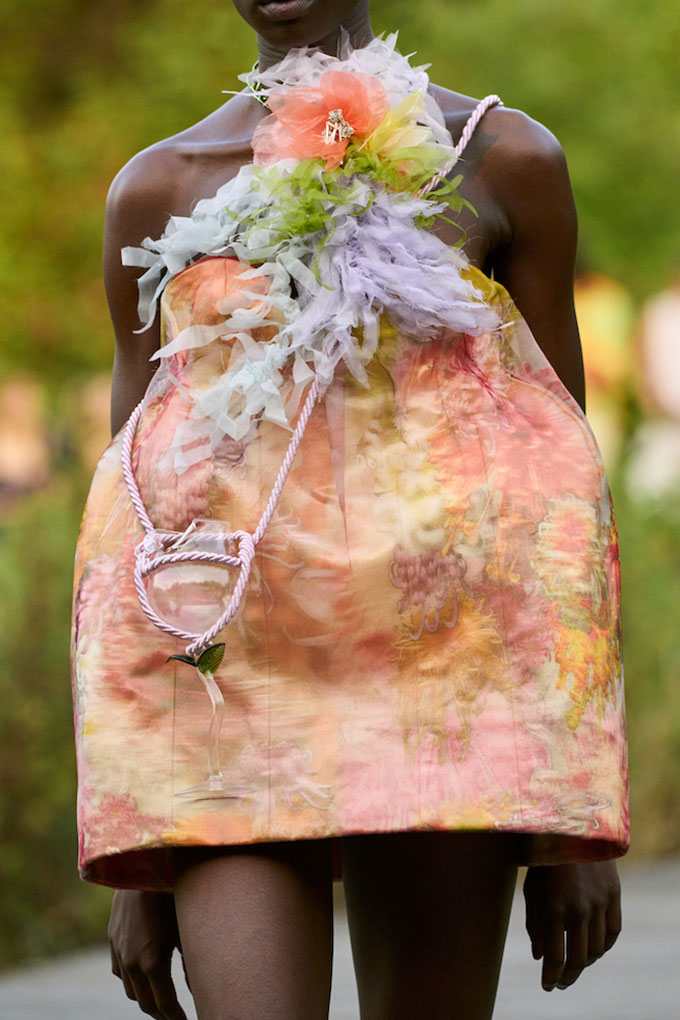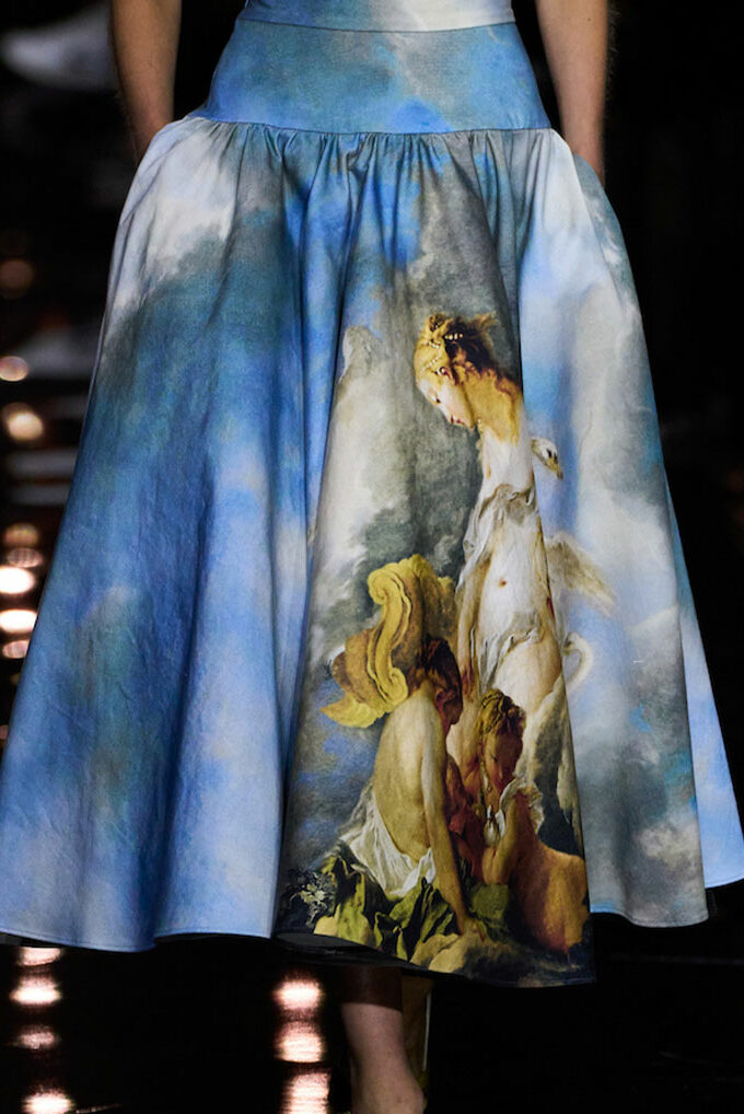 Visual Vacation. SS23 shows haven’t shown a season of prints, with patterns decreasing -28% to last summer. Diving into the top prints, the SS23 is taking us on a journey to discover other worlds and dares us to uncover the hidden beauty of places near and far. For SS23, florals as a stable print, can take glitch-like interpretations take almost-tacky placed bouquets or ditsy handkerchief-inspired motifs. Another summer classic proposes tropical abundance via more heated and juicy tropicals that take us to an eccentric Miami night. For a gloomy sundowner moment, this season’s beachy prints explore intense colors on darker grounds. Other all-over prints see snakeskin return as an animal favorite and update the zebra look of previous seasons. While the recent trend of marbled visuals, is renewed by futuristic Oceana patterns or soft sedimental gradations and dyes. is the evolution. New patterns combine the hidden universe of our deep sea with the augmented aura of digital worlds. As a favored edgy print, a body baring-look is developing on a larger scale for SS23. After this print showed-up in early signals on last FW22 shows, the bodylicious visual is now trending from statue-inspired versions at Balmain to clever X-Ray effects. The growth of this alluring print really reflects our desire to get somewhat underneath, to celebrate the female body and also to self-express. Another highlight, as a response to the ongoing war, are the featured doves as a message of peace and community care.