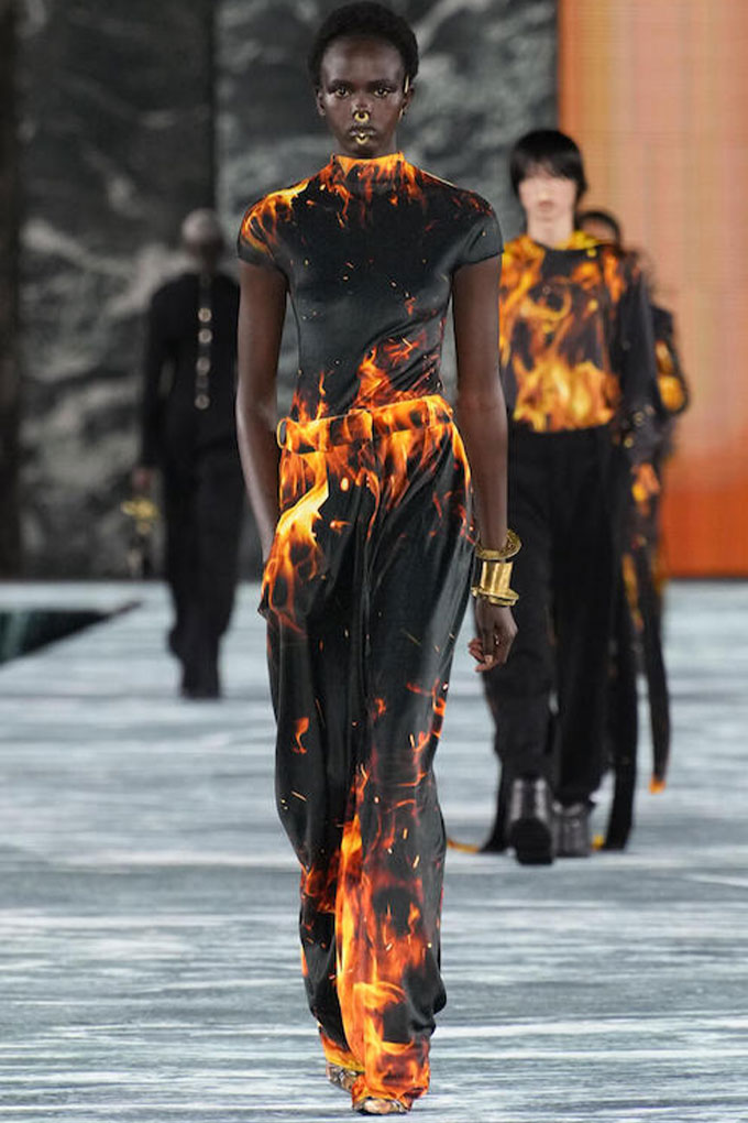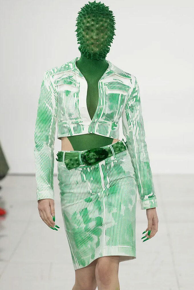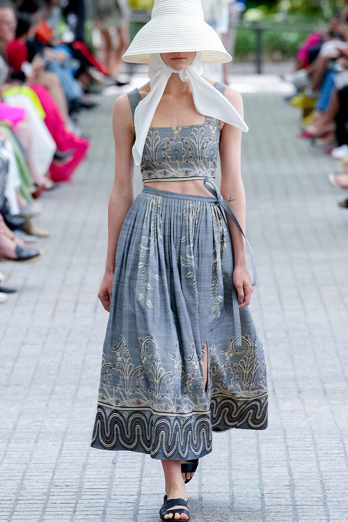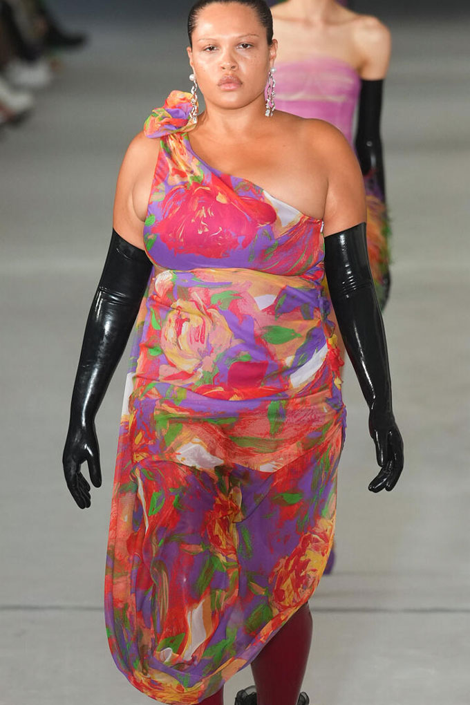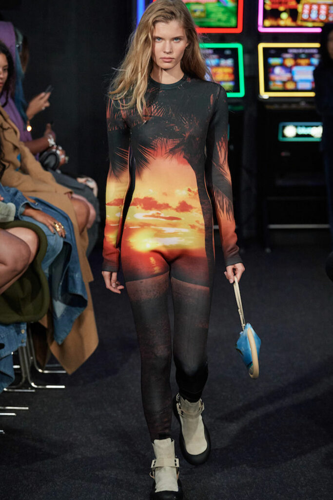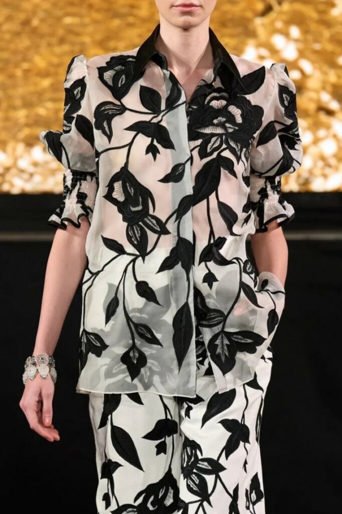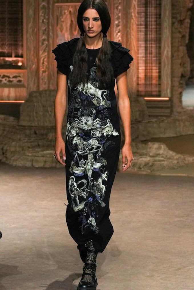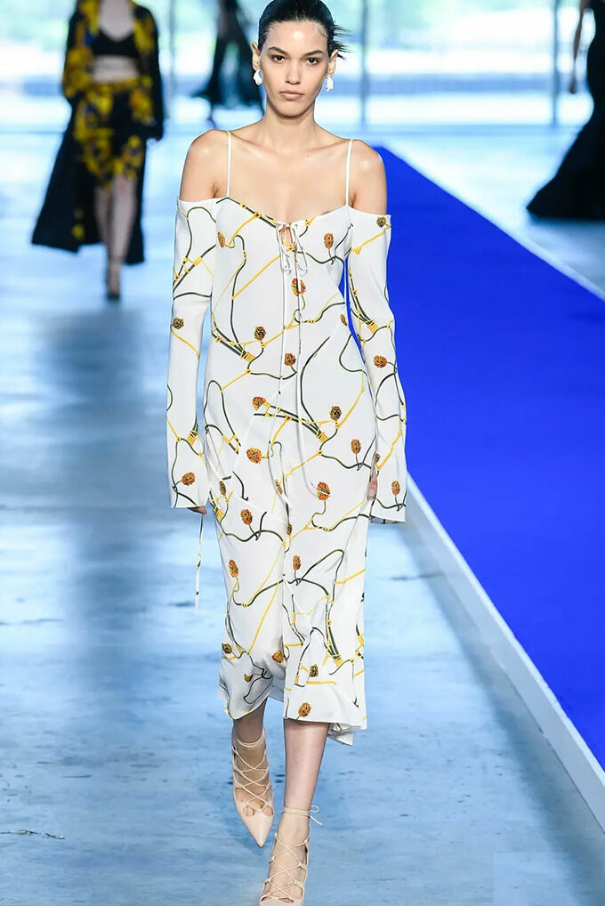 Visual Vacation. SS23 shows haven’t shown a season of prints, with patterns decreasing -28% to last summer. Diving into the top prints, the SS23 is taking us on a journey to discover other worlds and dares us to uncover the hidden beauty of places near and far. For SS23, florals as a stable print, can take glitch-like interpretations take almost-tacky placed bouquets or ditsy handkerchief-inspired motifs. Another summer classic proposes tropical abundance via more heated and juicy tropicals that take us to an eccentric Miami night. For a gloomy sundowner moment, this season’s beachy prints explore intense colors on darker grounds. Other all-over prints see snakeskin return as an animal favorite and update the zebra look of previous seasons. While the recent trend of marbled visuals, is renewed by futuristic Oceana patterns or soft sedimental gradations and dyes. is the evolution. New patterns combine the hidden universe of our deep sea with the augmented aura of digital worlds. As a favored edgy print, a body baring-look is developing on a larger scale for SS23. After this print showed-up in early signals on last FW22 shows, the bodylicious visual is now trending from statue-inspired versions at Balmain to clever X-Ray effects. The growth of this alluring print really reflects our desire to get somewhat underneath, to celebrate the female body and also to self-express. Another highlight, as a response to the ongoing war, are the featured doves as a message of peace and community care.