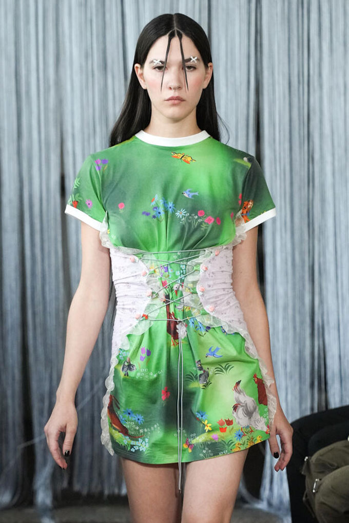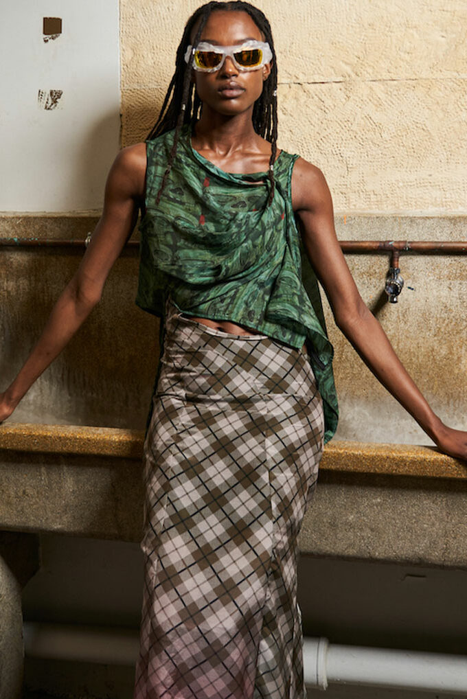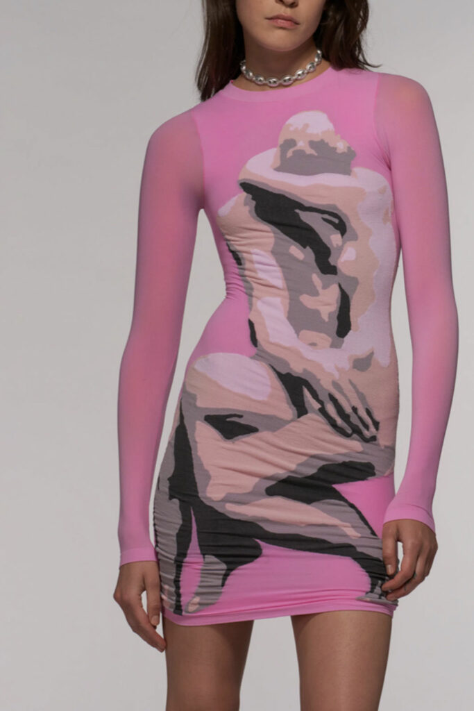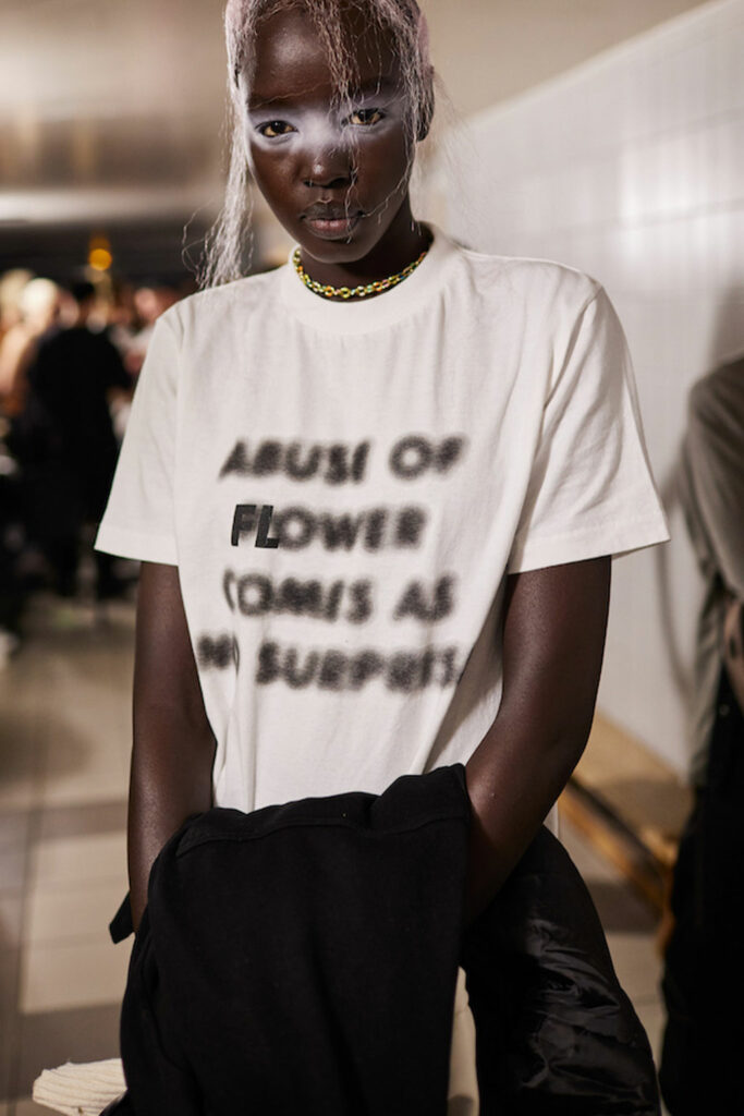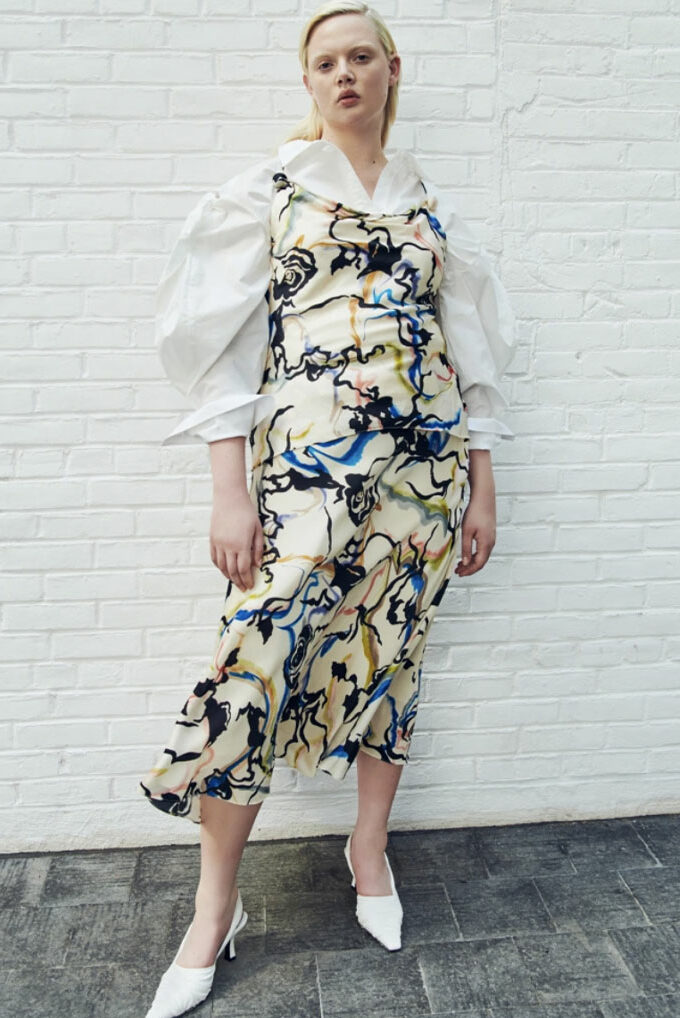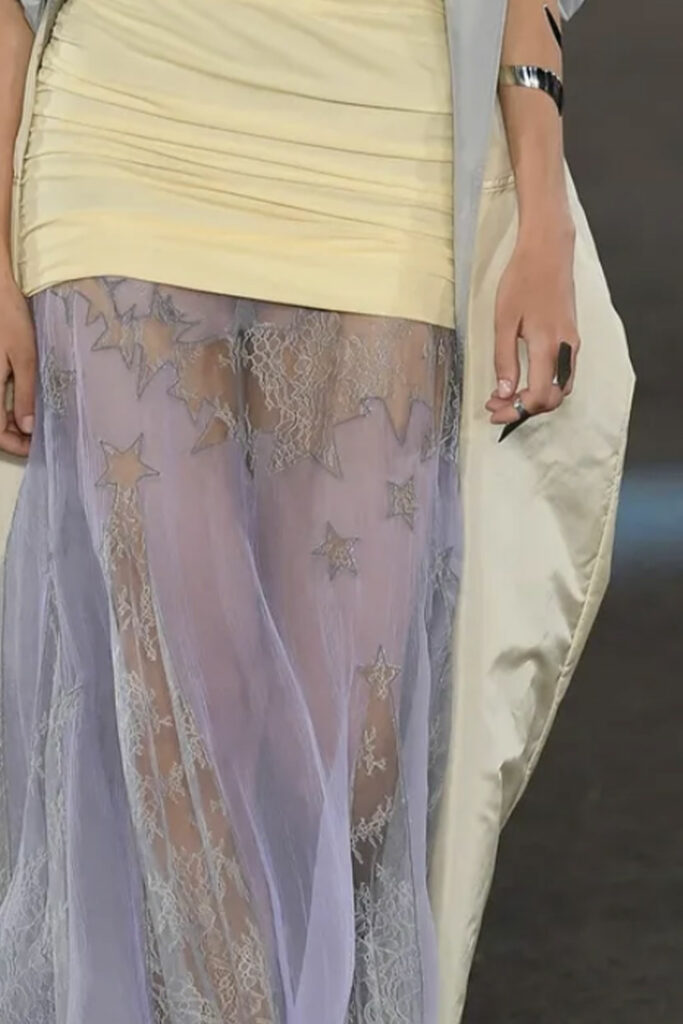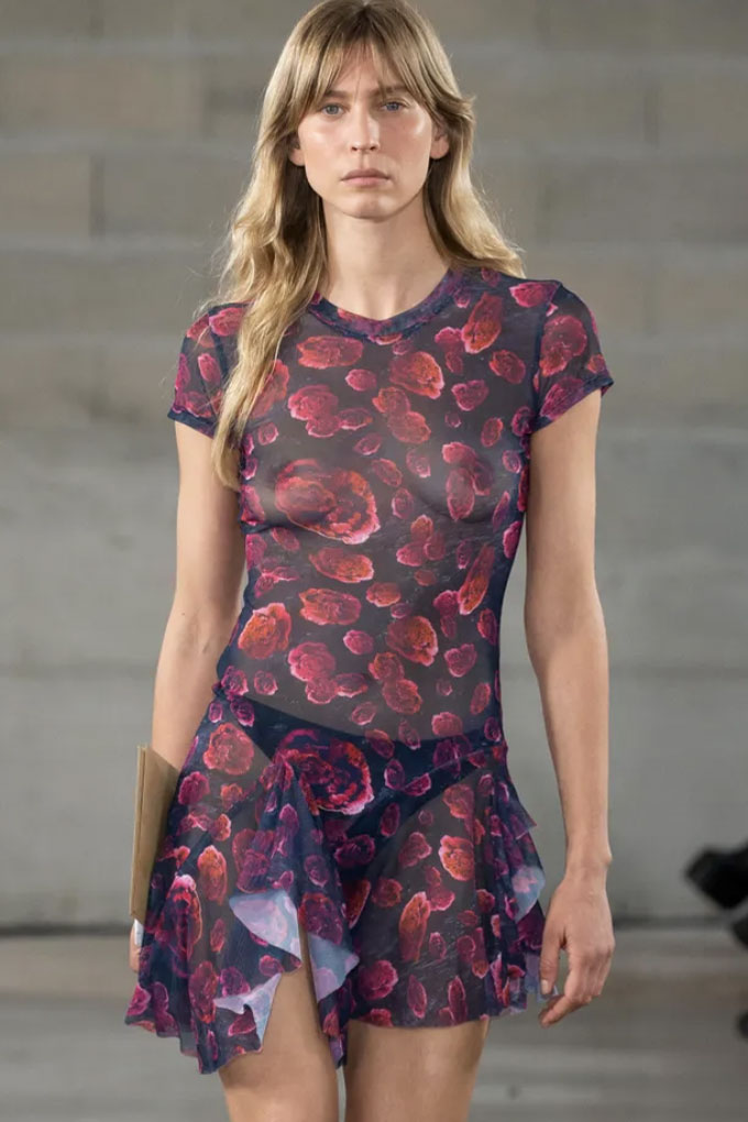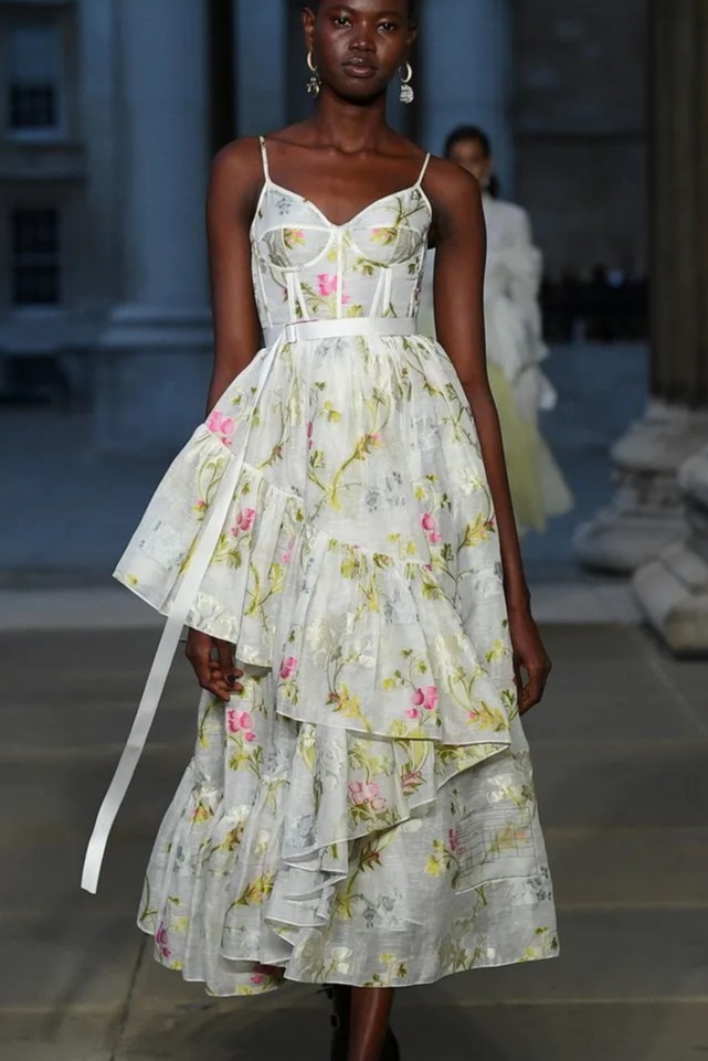 Visual Vacation. SS23 shows haven’t shown a season of prints, with patterns decreasing -28% to last summer. Diving into the top prints, the SS23 is taking us on a journey to discover other worlds and dares us to uncover the hidden beauty of places near and far. For SS23, florals as a stable print, can take glitch-like interpretations take almost-tacky placed bouquets or ditsy handkerchief-inspired motifs. Another summer classic proposes tropical abundance via more heated and juicy tropicals that take us to an eccentric Miami night. For a gloomy sundowner moment, this season’s beachy prints explore intense colors on darker grounds. Other all-over prints see snakeskin return as an animal favorite and update the zebra look of previous seasons. While the recent trend of marbled visuals, is renewed by futuristic Oceana patterns or soft sedimental gradations and dyes. is the evolution. New patterns combine the hidden universe of our deep sea with the augmented aura of digital worlds. As a favored edgy print, a body baring-look is developing on a larger scale for SS23. After this print showed-up in early signals on last FW22 shows, the bodylicious visual is now trending from statue-inspired versions at Balmain to clever X-Ray effects. The growth of this alluring print really reflects our desire to get somewhat underneath, to celebrate the female body and also to self-express. Another highlight, as a response to the ongoing war, are the featured doves as a message of peace and community care.