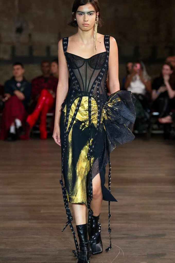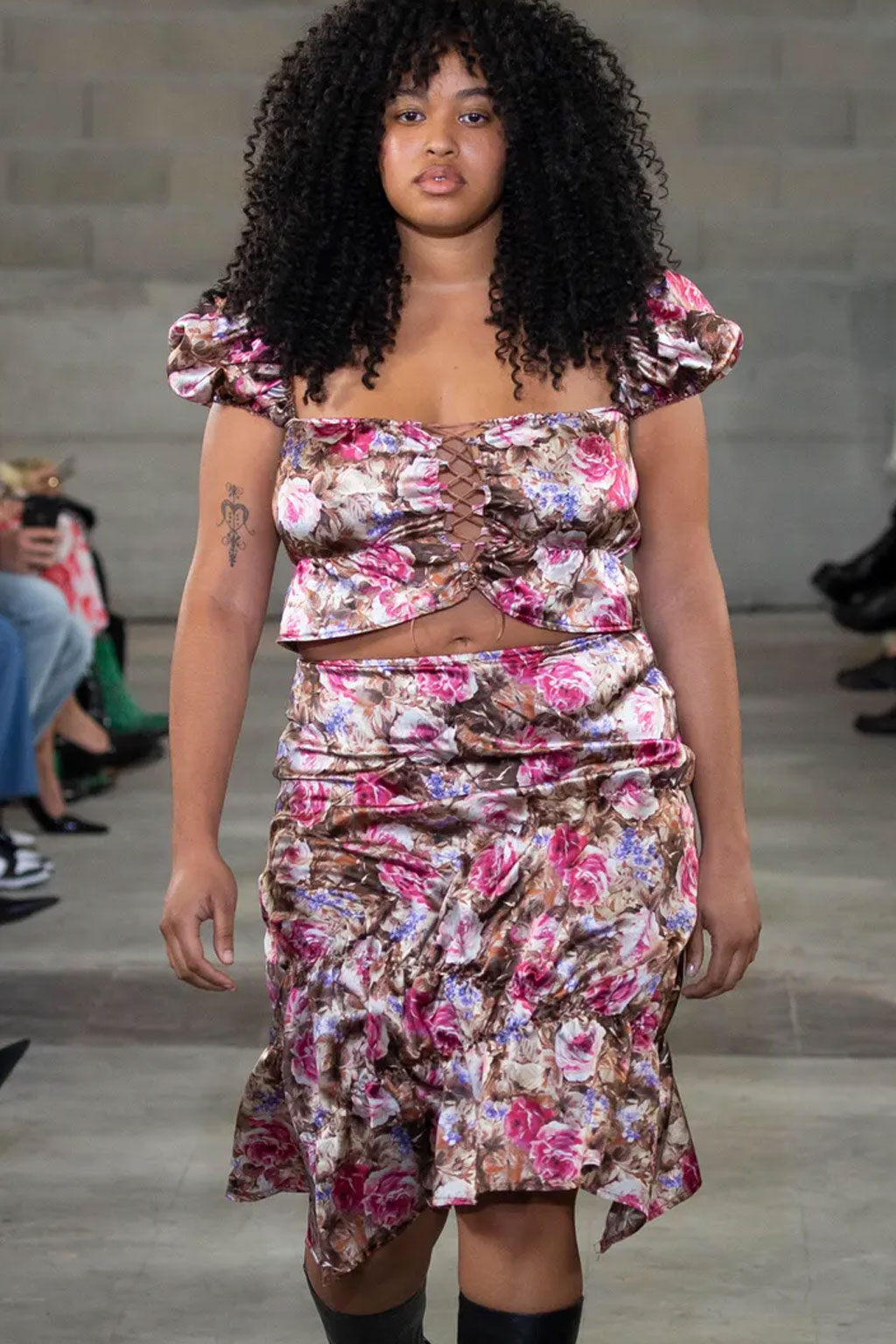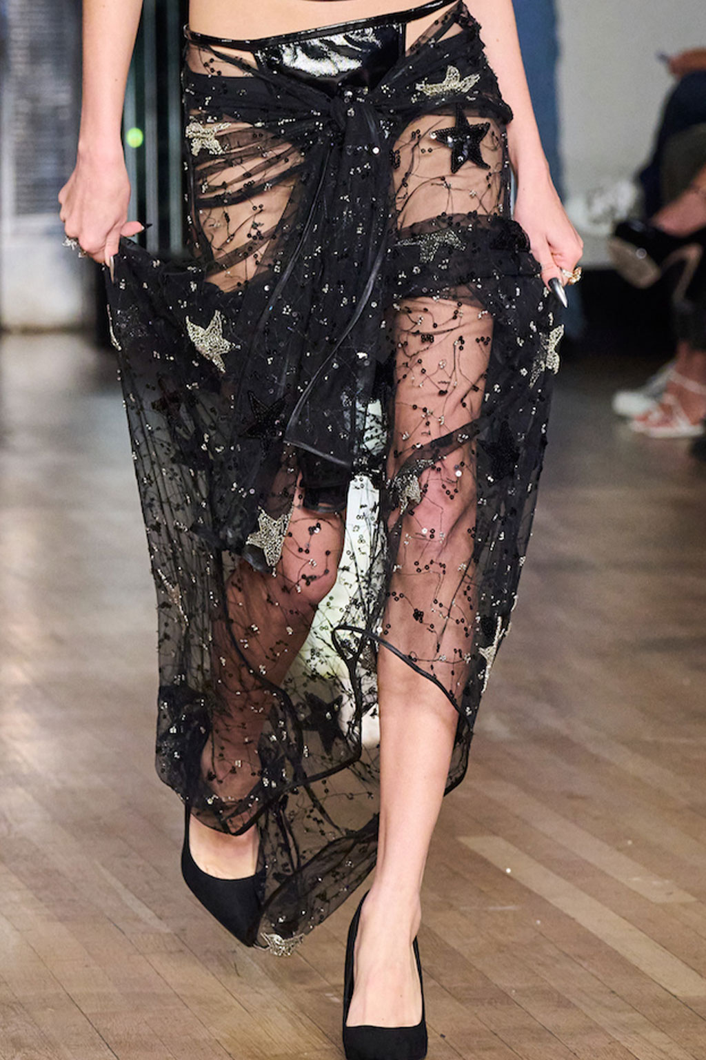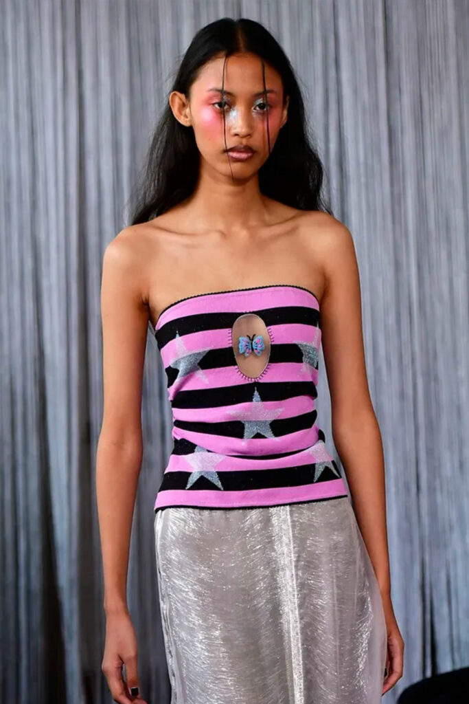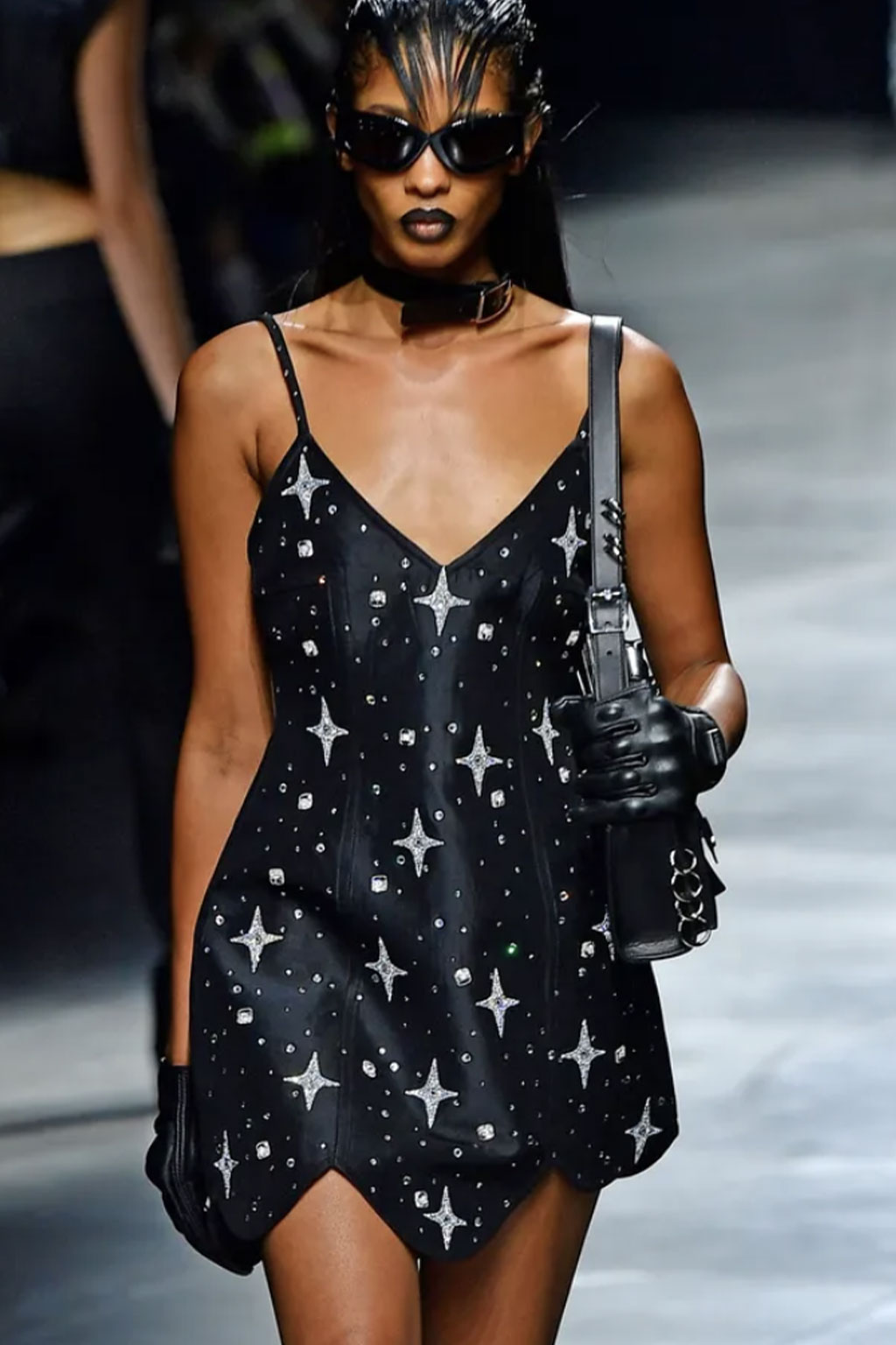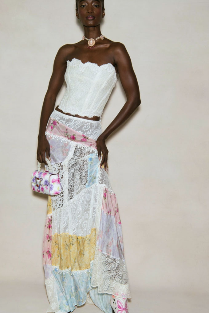 Visual Vacation. SS23 shows haven’t shown a season of prints, with patterns decreasing -28% to last summer. Diving into the top prints, the SS23 is taking us on a journey to discover other worlds and dares us to uncover the hidden beauty of places near and far. For SS23, florals as a stable print, can take glitch-like interpretations take almost-tacky placed bouquets or ditsy handkerchief-inspired motifs. Another summer classic proposes tropical abundance via more heated and juicy tropicals that take us to an eccentric Miami night. For a gloomy sundowner moment, this season’s beachy prints explore intense colors on darker grounds. Other all-over prints see snakeskin return as an animal favorite and update the zebra look of previous seasons. While the recent trend of marbled visuals, is renewed by futuristic Oceana patterns or soft sedimental gradations and dyes. is the evolution. New patterns combine the hidden universe of our deep sea with the augmented aura of digital worlds. As a favored edgy print, a body baring-look is developing on a larger scale for SS23. After this print showed-up in early signals on last FW22 shows, the bodylicious visual is now trending from statue-inspired versions at Balmain to clever X-Ray effects. The growth of this alluring print really reflects our desire to get somewhat underneath, to celebrate the female body and also to self-express. Another highlight, as a response to the ongoing war, are the featured doves as a message of peace and community care.