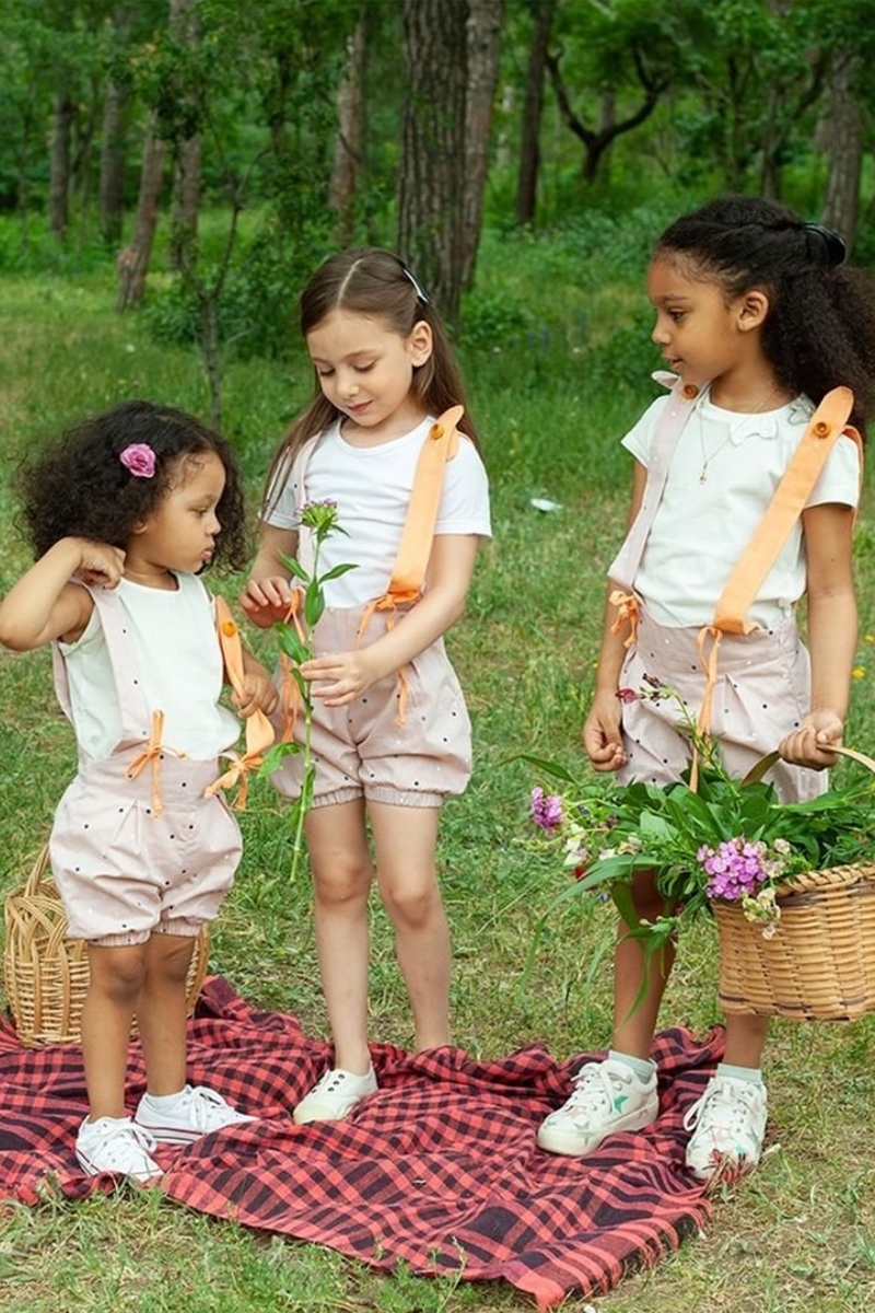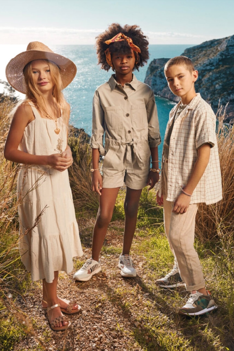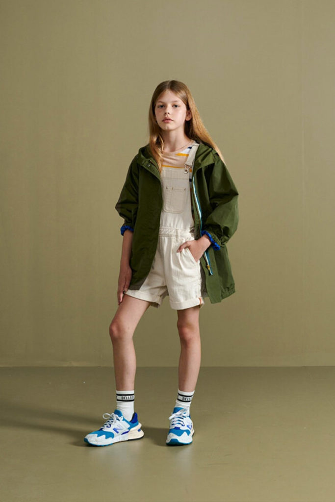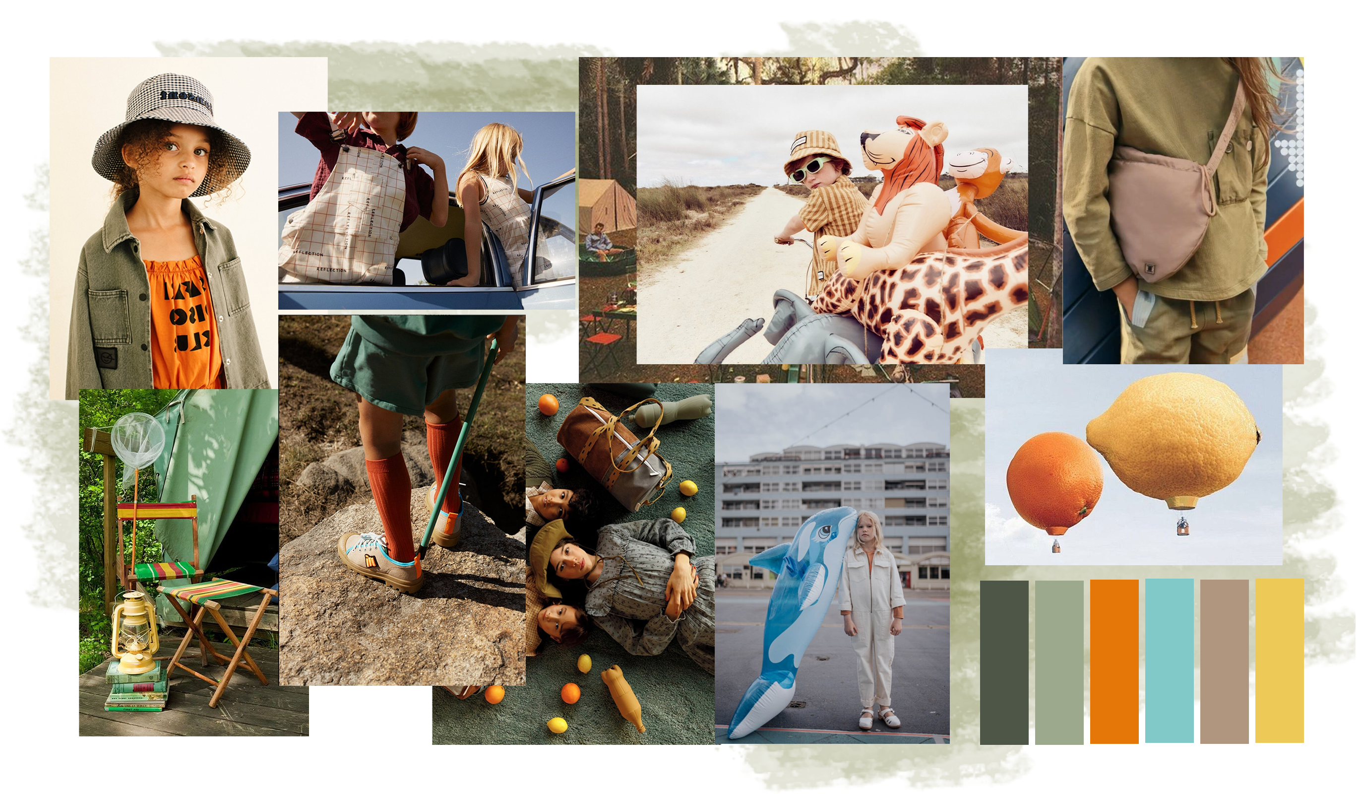 The SS23 Trendstory Expedition Sunshine presents a junior design direction, that captures the explorative nature of today’s youngsters. With the effects of the pandemic slowly trickling away, juniors are seeking to bond with each other and nature again. With missed-out summer camps, the design themes references girl-scout and safari styles for an out-doors-ready look. The importance of genderless styles and liberation of stereotypes feeds strongly into this concept. Utilitarian driven looks serve as a uniform for all children and provide protection and chic for nature adventures. The urge for sustainable action relates to the concept of outdoors and creates a rather muted palette of materials and colors, which allows kids’ collections to be produced more sustainably as well. Camouflaging into the forrest, khaki and green are extremely important and offer a basic color next to neutral beiges. Depicting juicy fruit and campfire settings, bright orange and yellow infuse the palette with a youthful and positive feel, while light blue is adding a sense of light-heartedness and clear summer skies. Take a look at the new utility-driven girls looks for the next seasons: