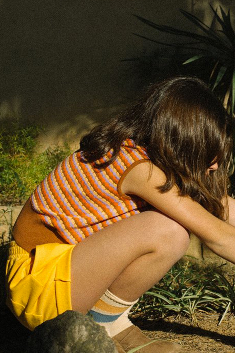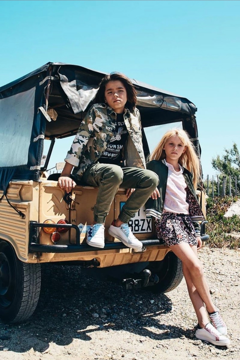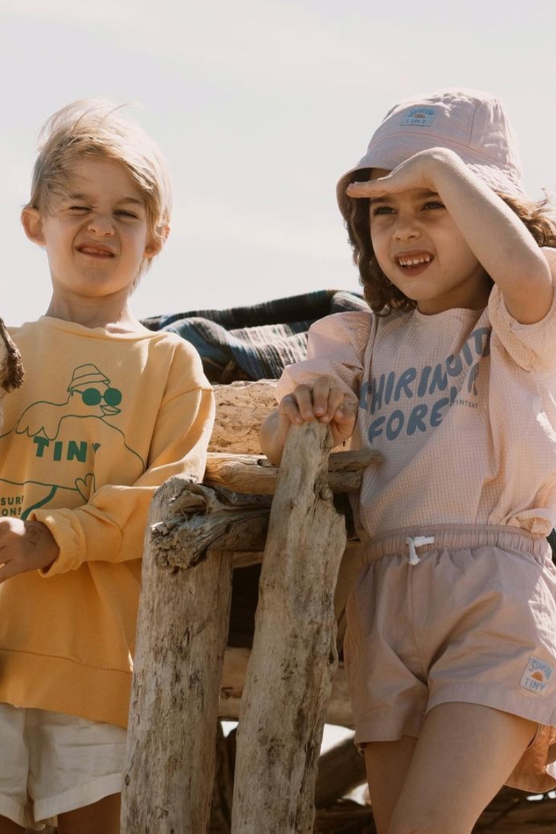 The SS23 Trendstory Expedition Sunshine presents a junior design direction, that captures the explorative nature of today’s youngsters. With the effects of the pandemic slowly trickling away, juniors are seeking to bond with each other and nature again. With missed-out summer camps, the design themes references girl-scout and safari styles for an out-doors-ready look. The importance of genderless styles and liberation of stereotypes feeds strongly into this concept. Utilitarian driven looks serve as a uniform for all children and provide protection and chic for nature adventures. The urge for sustainable action relates to the concept of outdoors and creates a rather muted palette of materials and colors, which allows kids’ collections to be produced more sustainably as well. Camouflaging into the forrest, khaki and green are extremely important and offer a basic color next to neutral beiges. Depicting juicy fruit and campfire settings, bright orange and yellow infuse the palette with a youthful and positive feel, while light blue is adding a sense of light-heartedness and clear summer skies. Take a look at the new utility-driven girls looks for the next seasons: