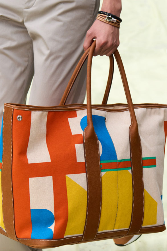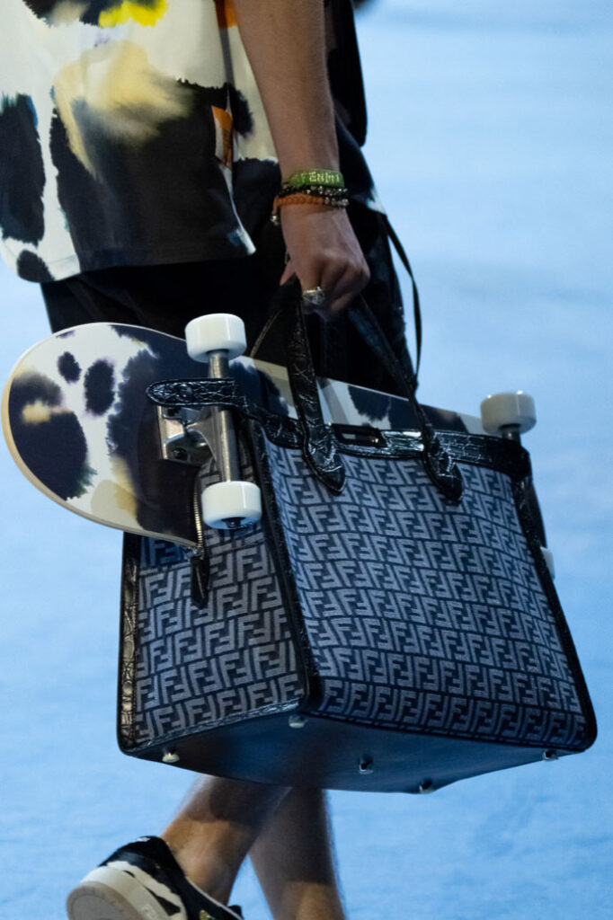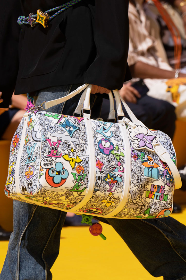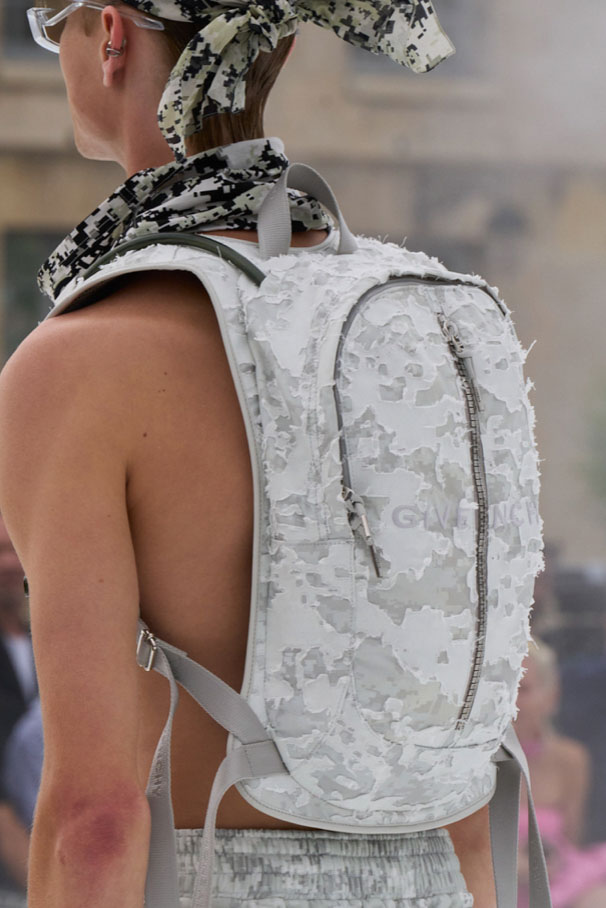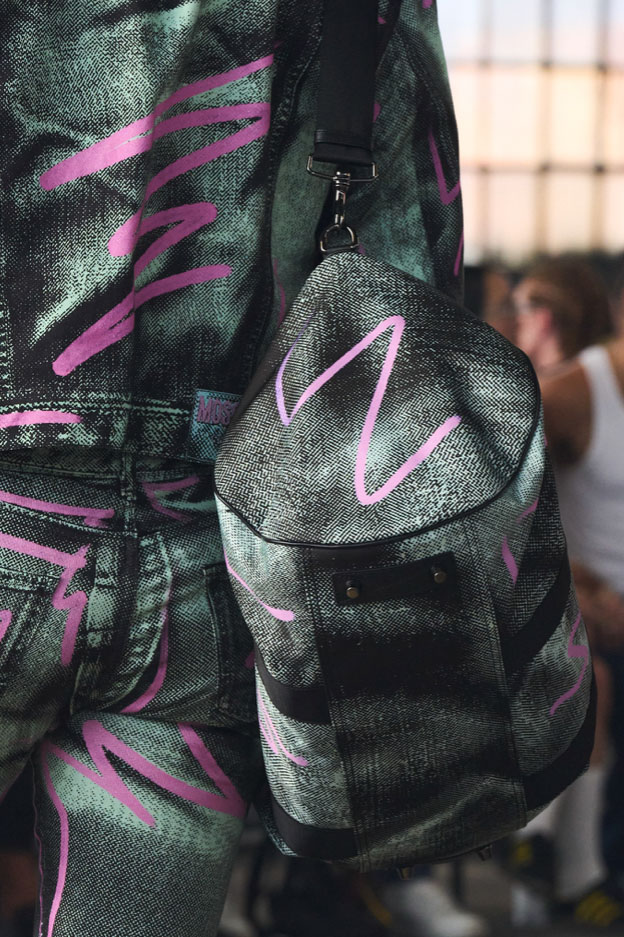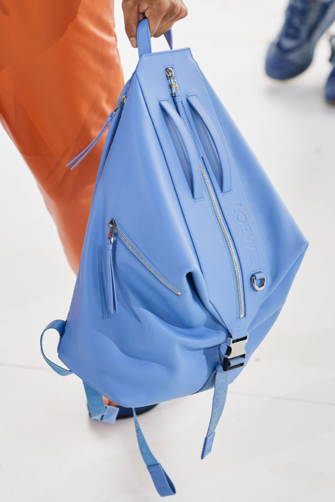 Exploration around perception, nature and progress. SS23 is about taking something from the past and take it into tomorrow, making it useful for the future. Proposing reassuring forms with futuristic undertones and a sensibility for creativity and individuality is the tenor for design now. Men’s bags are returning to be a promising category. From big trends, like commute-ready totes and duffle bags and even more explorative backpacks and utilitarian styles, the purpose and functionality of bags is leveling up for SS23. Further highlight include circular styles that are coming over from the womenswear market and have shown great success or barrel-shapes that draw upon the desire for adrenaline-rush activities, like sport, skate and race. Looking at the more cutting-edge range, #kidult bags that reflect on toys and school-bags have been popping up from Louis Vuitton to Kidsuper and Kenzo. Take a look at the SS23 inspiration:
