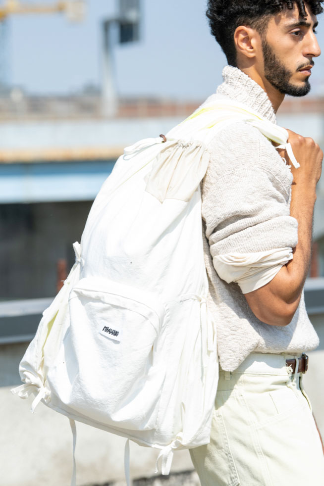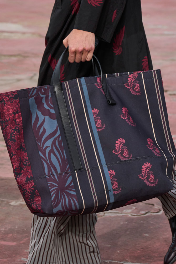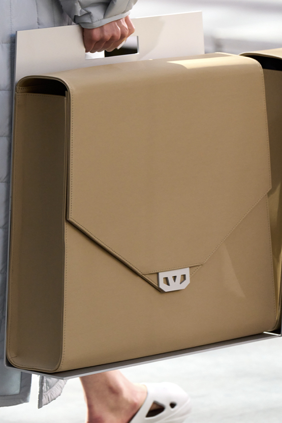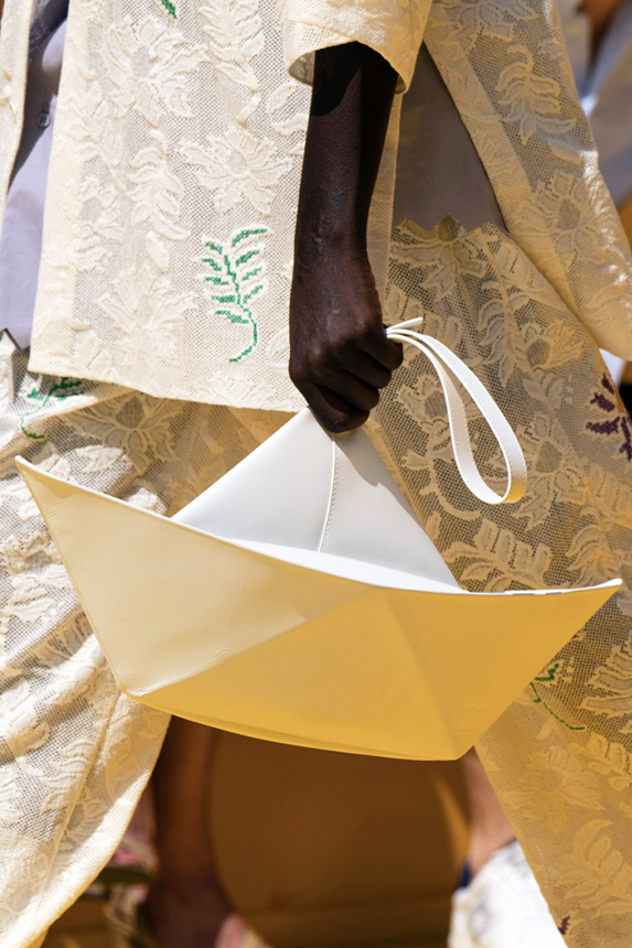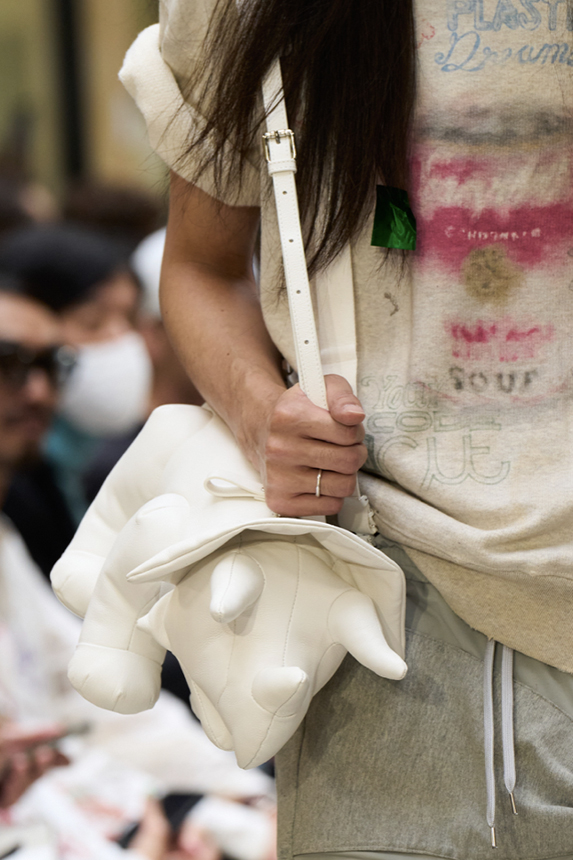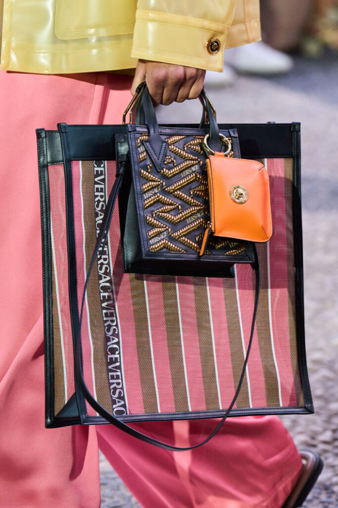Exploration around perception, nature and progress. SS23 is about taking something from the past and take it into tomorrow, making it useful for the future. Proposing reassuring forms with futuristic undertones and a sensibility for creativity and individuality is the tenor for design now. Men’s bags are returning to be a promising category. From big trends, like commute-ready totes and duffle bags and even more explorative backpacks and utilitarian styles, the purpose and functionality of bags is leveling up for SS23. Further highlight include circular styles that are coming over from the womenswear market and have shown great success or barrel-shapes that draw upon the desire for adrenaline-rush activities, like sport, skate and race. Looking at the more cutting-edge range, #kidult bags that reflect on toys and school-bags have been popping up from Louis Vuitton to Kidsuper and Kenzo. Take a look at the SS23 inspiration: