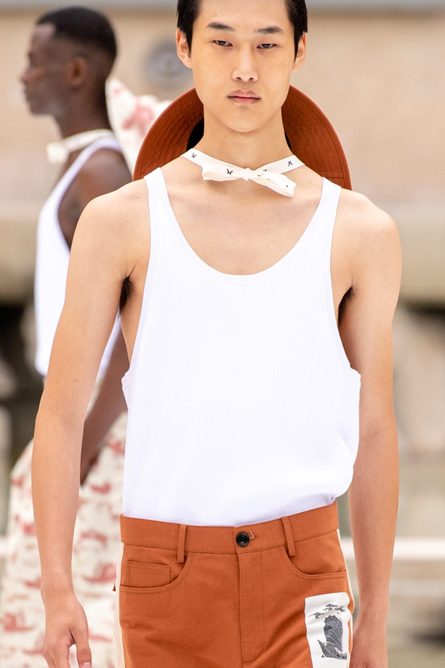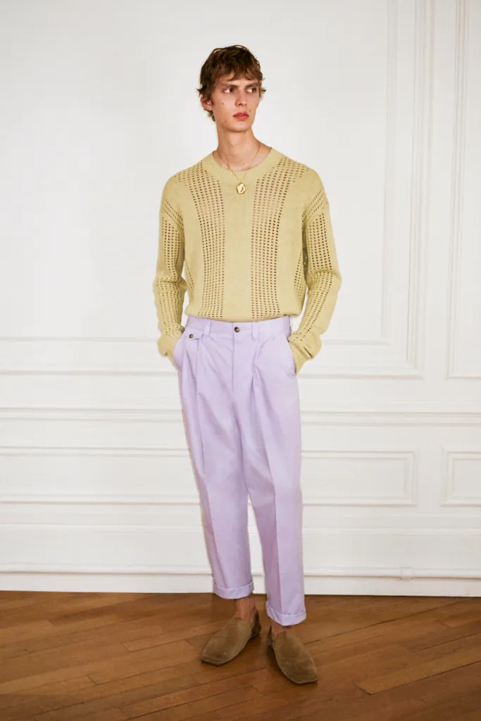 The Knit & Jersey category is infused with a more put-together character, despite maintaining extra comfortable wearability. Representing on average 45% of the fabric range for SS22, this category is predicted stable for next season. With severals style upgrade, designers can assure that pieces transition easily from one occasion to the next, well adapt for distinctly hybrid consumer dynamics. Feminine attributes make their way into this masculine-ridden category: fluidity and slimmer fits are updating eras of bulky oversize and emphasize that new era of masculinity. Tank tops are predicted to raise in the assortments and are showing an increase of 9% YoY already and accounted for 2% of the product range this season. Looking at search rates, T-shirts are favored in classic white or blue ( both +130% yearly growth), followed by earthy browns +120% YOY and the fashion color orange with +70%. While more dressy details and fits indicate a shift, those reassuring color trends show how new shapes must fuse with toned down, familiar and reassuring color palettes to succeed commercially.