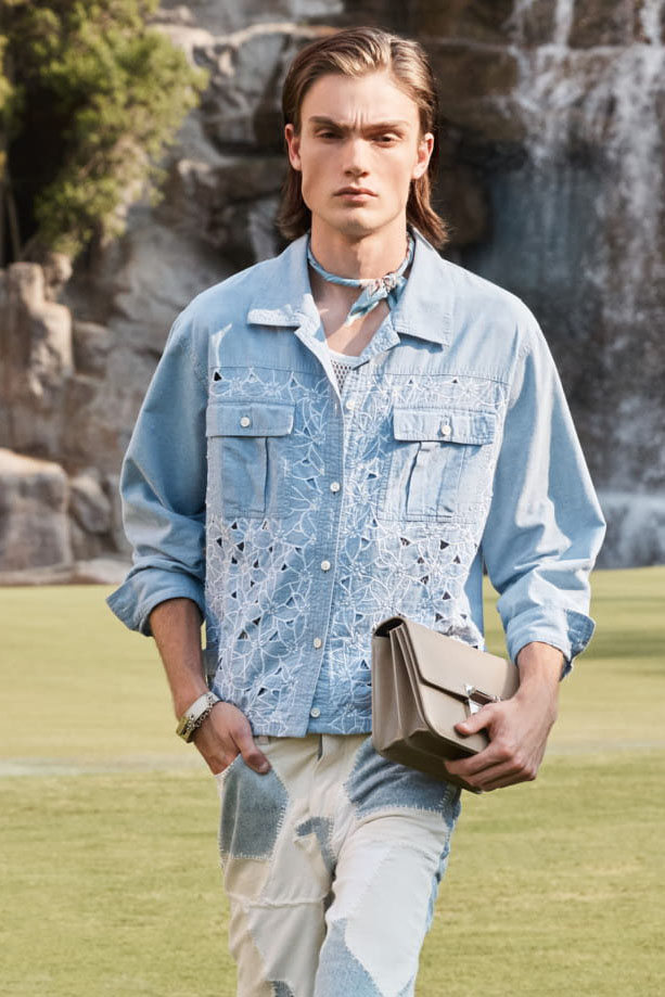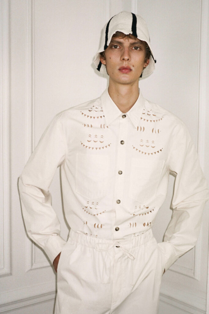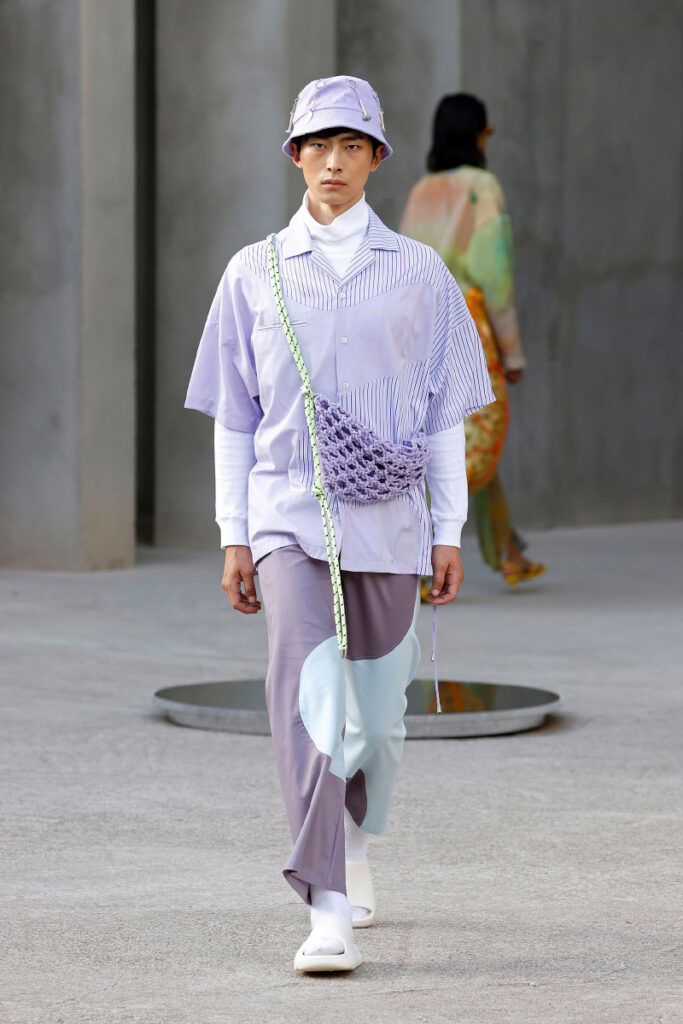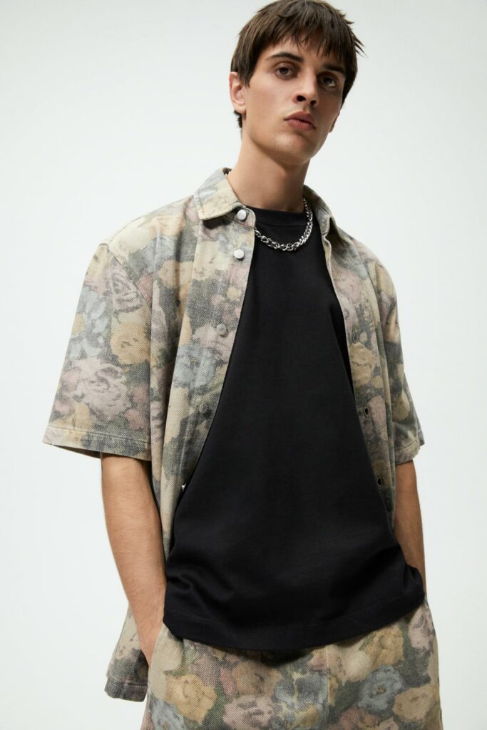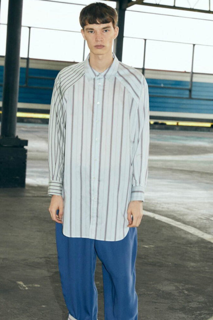 The Shirt used to be the staple of the office wardrobe and was quickly exchanged to the T-Shirt after work. But as consumer lifestyles have changed, so has the positioning of the Men’s Shirt. While the classic Men’s Shirt is highly adapted by the womenswear market, men are looking past the traditional piece. With innovative and more comfortable choices of design and materials, the shirt is now a leisure essential. Easy, breezy qualities are a must for successful SS23 shirts. From openwork to knit, fluid satins or breathable linens, shirts are prepping consumers for upcoming heatwaves. Overall, a distinct retro vibe is influencing the category. From nostalgic handkerchief styles and country club athleisure looks to romantic stripes upgrades. Most favored are airy boxy shapes, as well as more fitted fluid styles that increasingly approach the male silhouette.