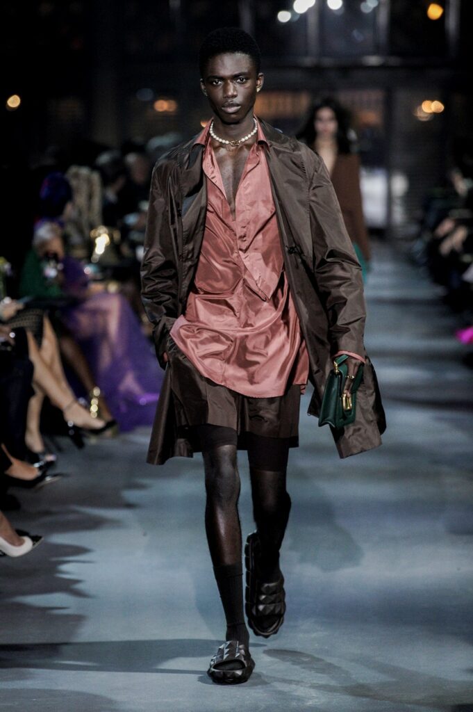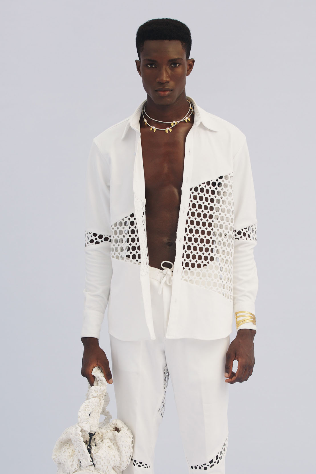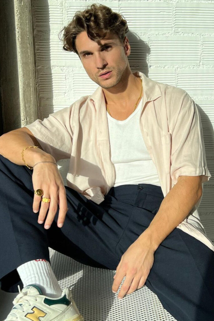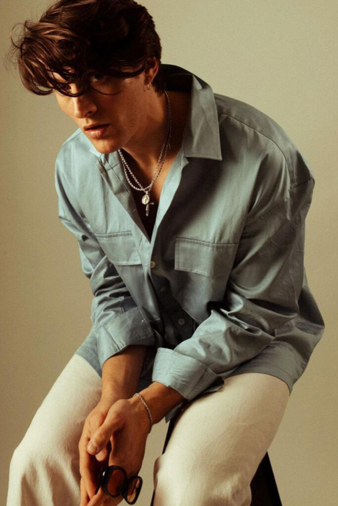 The Shirt used to be the staple of the office wardrobe and was quickly exchanged to the T-Shirt after work. But as consumer lifestyles have changed, so has the positioning of the Men’s Shirt. While the classic Men’s Shirt is highly adapted by the womenswear market, men are looking past the traditional piece. With innovative and more comfortable choices of design and materials, the shirt is now a leisure essential. Easy, breezy qualities are a must for successful SS23 shirts. From openwork to knit, fluid satins or breathable linens, shirts are prepping consumers for upcoming heatwaves. Overall, a distinct retro vibe is influencing the category. From nostalgic handkerchief styles and country club athleisure looks to romantic stripes upgrades. Most favored are airy boxy shapes, as well as more fitted fluid styles that increasingly approach the male silhouette.