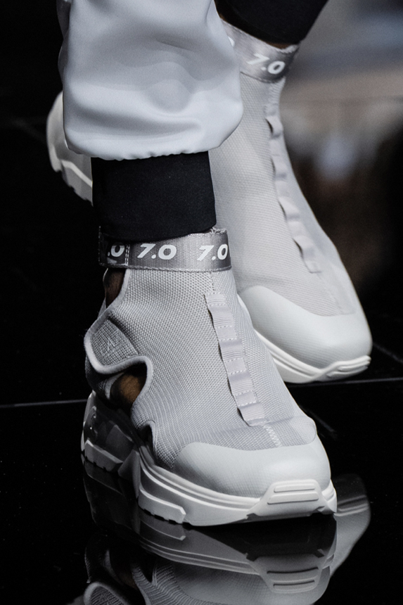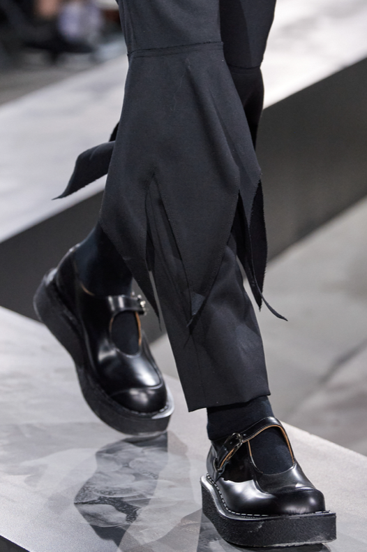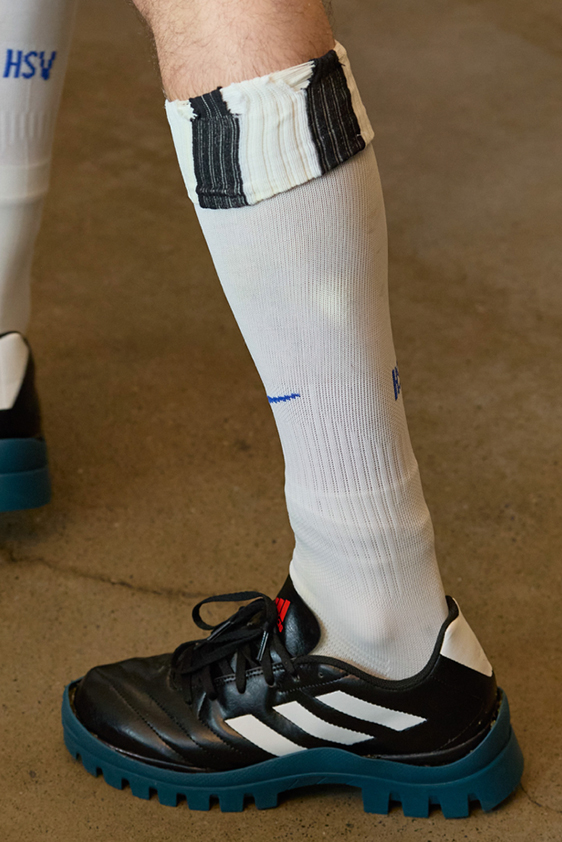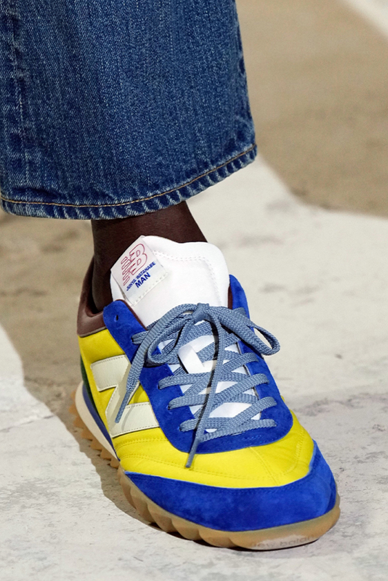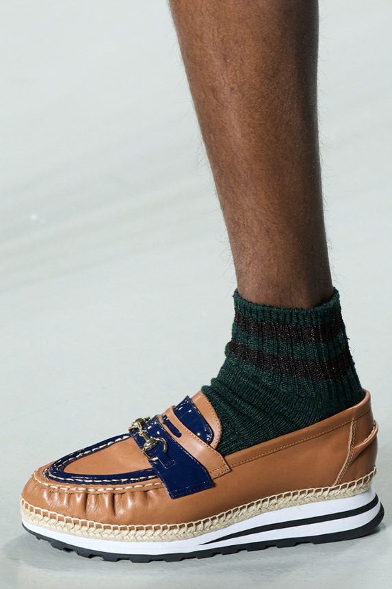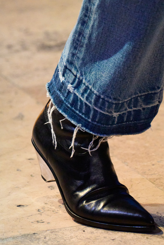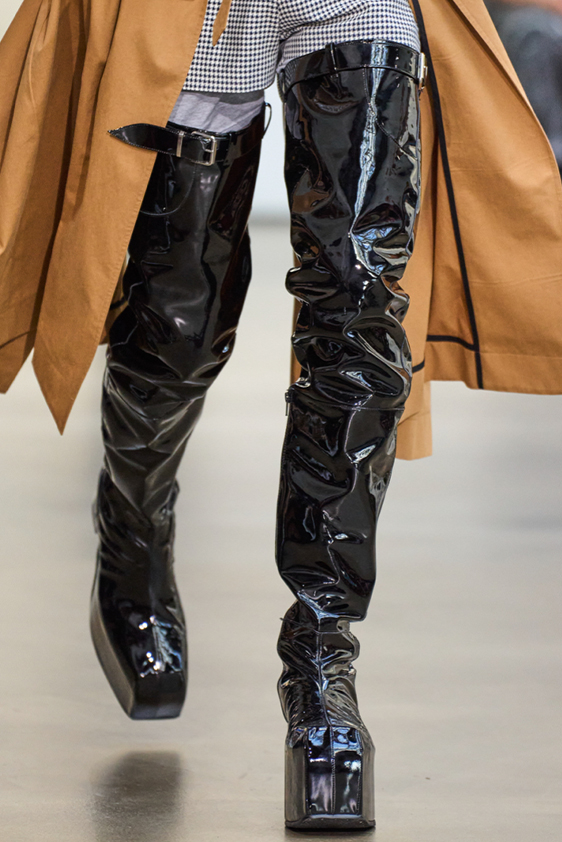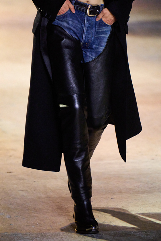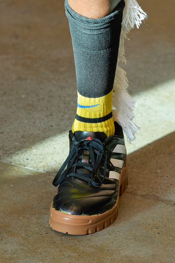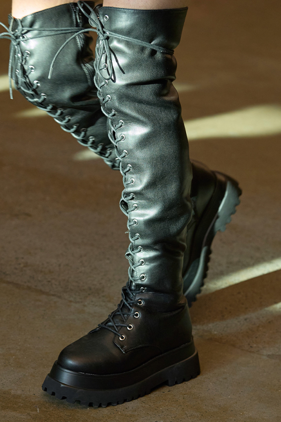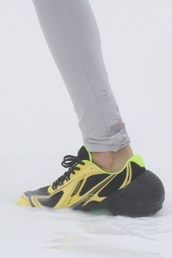 Era of the hybrid shoe. For Summer 2023, designers are exploring familiar styles with a more experimental approach. By building on the familiarity of products like boat shoes, loafers, western boots or oxfords, bolder recompositions and silhouettes are mixing for a balanced and contemporary feel. Turning those classics into mules is mixing the hyper for comfy slides with the look of a sophisticated product. Overall, nostalgia and futurism collide. Retro looks, like fisherman sandals, flip flops, rubber boots or sports sneaker see a reinterpretation with surprising volumes or exciting materials. The most edgy look that was proposed on the season’s catwalks certainly saw the thigh-high that has been a hot trend on last womenswear shows explore the market as an indicator for a liberated and new masculinity. But from Slides to sneakers and boots, there are interesting take-aways for men to be drawn from the leading designers this season.