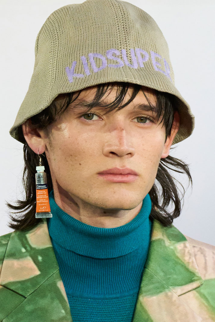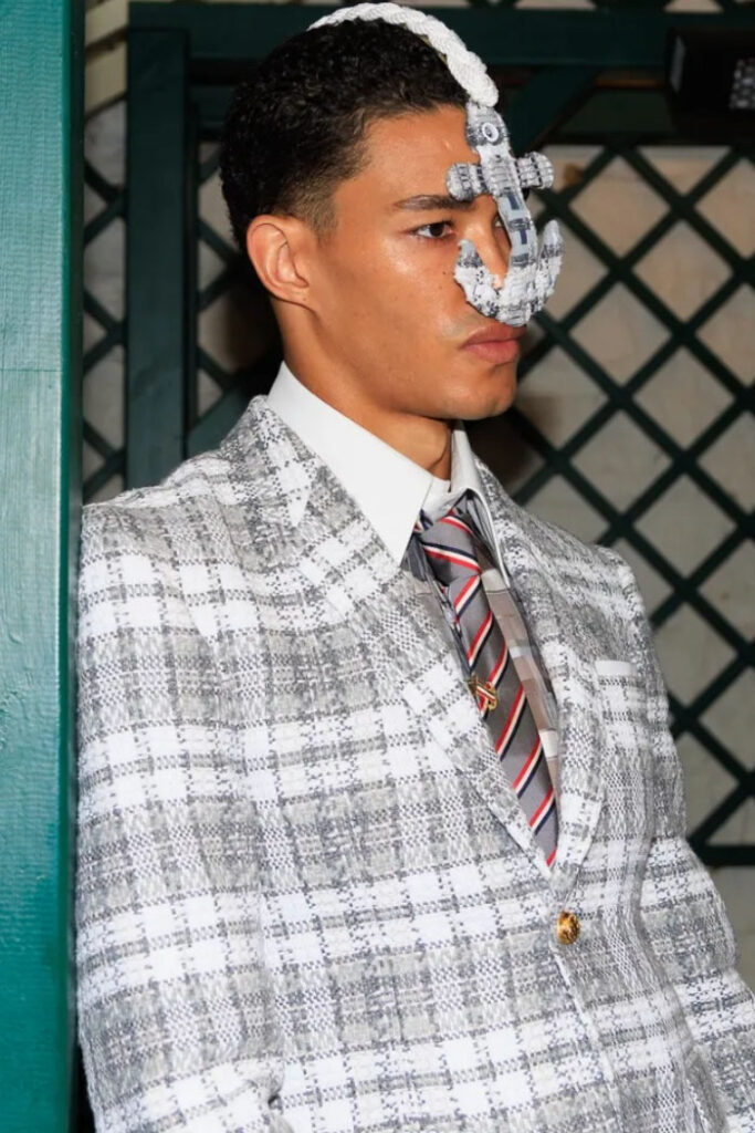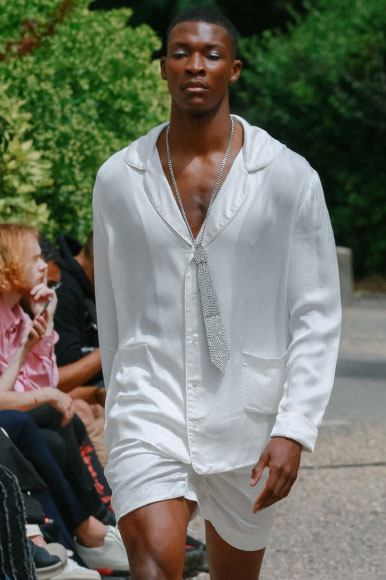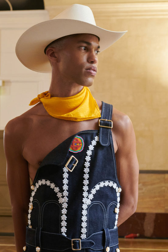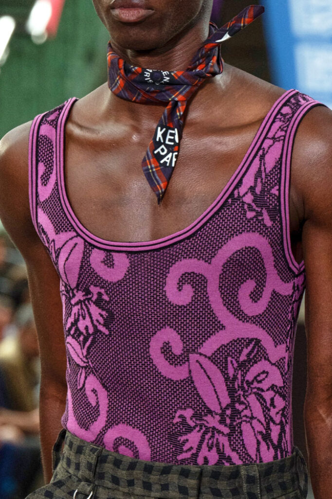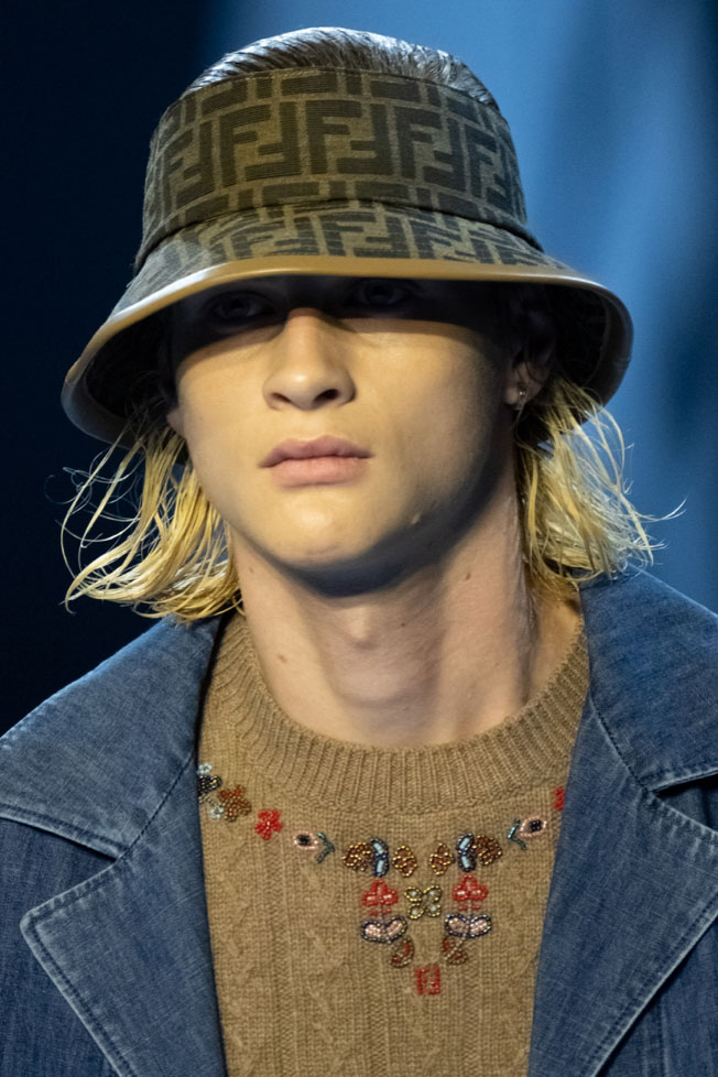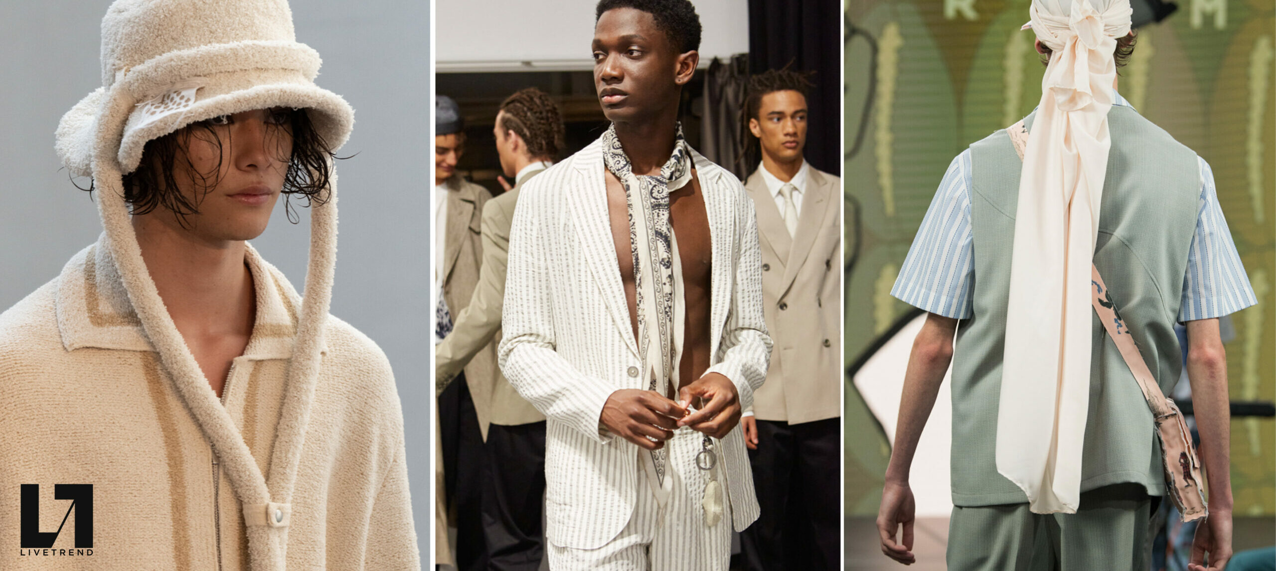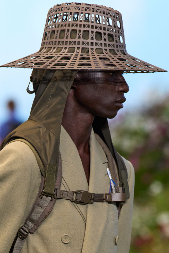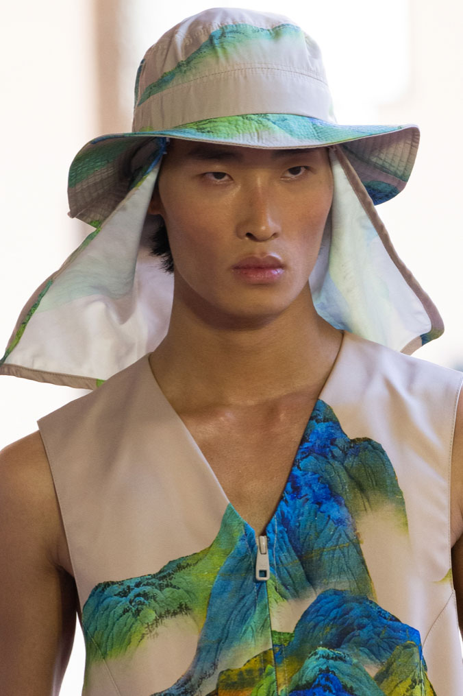 An exiting return to the archives. For Summer 2023, designers are diving into the archives to rediscover accessories and headwear that provides us with a nostalgic touch and explores styles with new creativity. Soft accessories appear as the fusion of the organic and the fabricated now. Knotted scarfs and ties are referenced as elements of prep and dressiness but in a new, casual context. At the same time those two could not be more different. The scarf, evokes a gentle femininity, while the tie is emblematic for a corporate, masculine universe and strongly rooted in gender codes. Hats are opening up to retro shapes, like the western hat or Y2K visors or opt for utility looks from fisherman hats or buckets. The bucolic and outdoor sensibility of next summer has designers propose straw hats and crochet as a favored material that tell us stories of conscious craft and countryside charms.